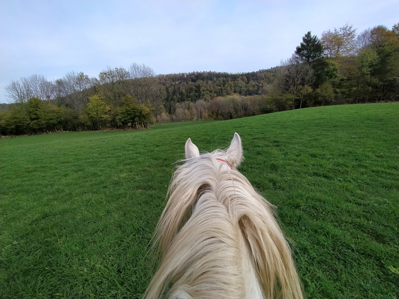 | Dire merci | ma foi je ne sais pas mais du coup c'était repos mardi et mercredi je l'emmène faire le tour fait avec Quiara la semaine précédente, c'est à dire qu'on a fait du dénivelé et de la combe mais j'ai été raisonnable ![]() ![]() ![]() ![]() ![]() ![]() un superbe temps et des odeurs de nostalgie... le regain signe la fin de la belle saison... ![]() |