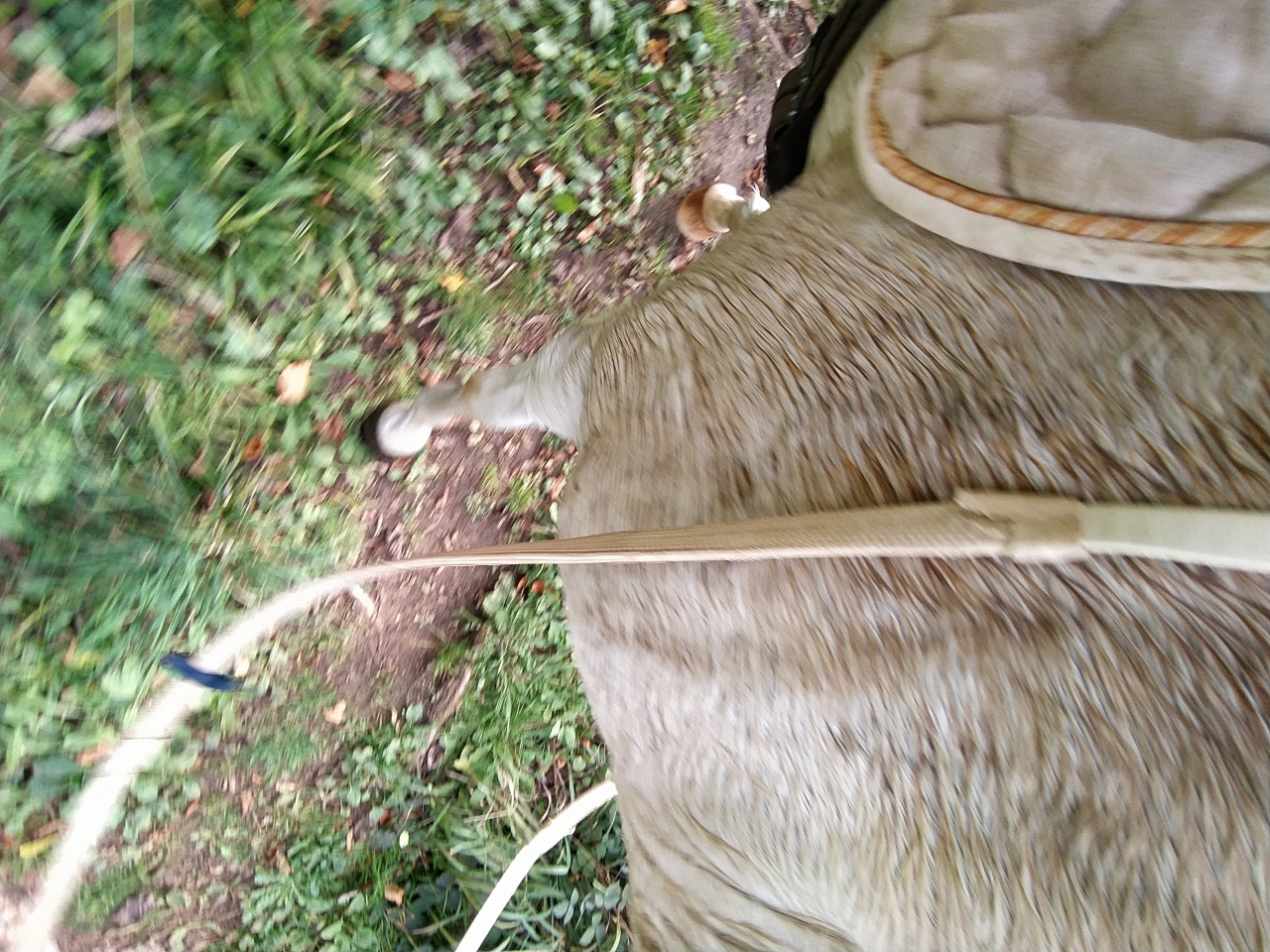 | Dire merci | donc vendredi dernier je monte dessus pleine de joie et de confiance... ![]() ![]() ![]() et là grosse cata au bout de 3km, elle n'arrete pas de se précipiter, dès que je remonte sur les renes elle s'arrete net en grognant, fait mine de se lever... je descends, je vérifie le matos, je remonte... et toujours le meme cirque... je finis ma boucle en 2h, fine énervée et la jument encore plus... aucun plaisir ![]() ![]() ![]() ![]() ![]() c'est Naska hein donc meme pas sortie depuis 20j elle devrait pas être aussi con ![]() en rentrant je l'examine de tous les cotés et il ressort qu'elle croise plus les postérieurs à droite |