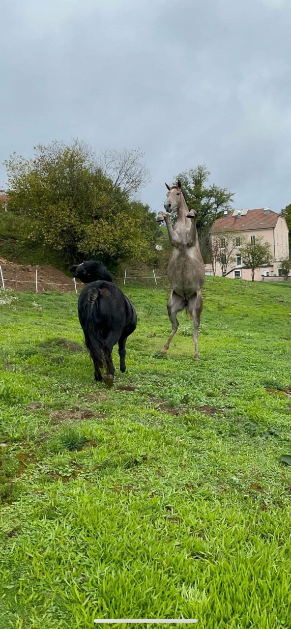 | Dire merci | la véto m'avait dit repos tant que l'abcès n'était pas résorbé pour ne pas inflammé les muscles qui se trouvaient sur le lieu de l'abcès mais l'ostéo passée mardi lui a collé 10j de repos et je la trouve un peu éteinte depuis jeudi donc à voir si c'est le contrecoup de l'abcès et de l'ostéo (cette dernière me dit qu'elle doit etre en train d'éliminer) donc je pense la longer demain ou jeudi et la remonter vendredi ![]() |