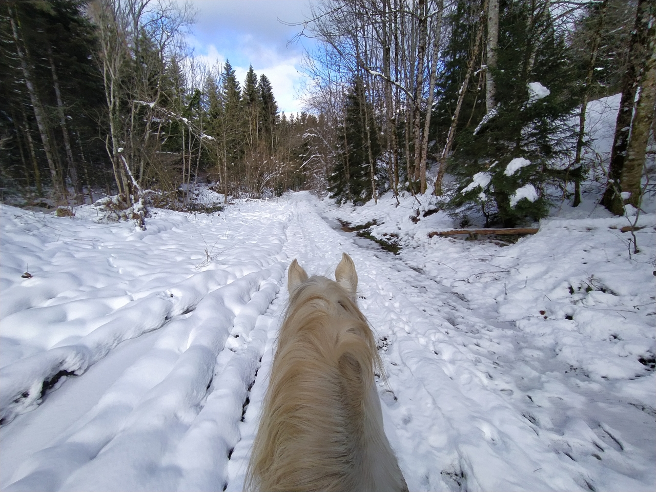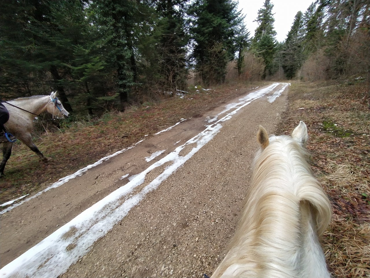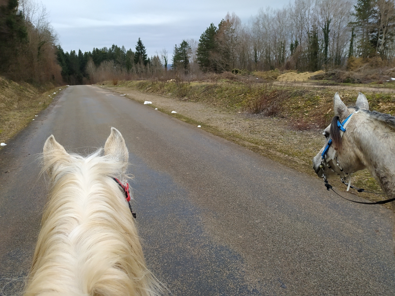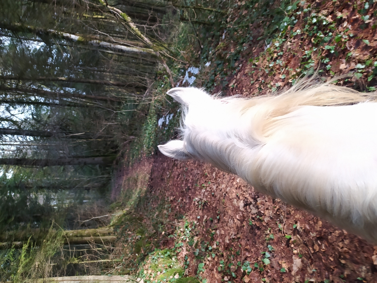 | Dire merci | Aujourd'hui, il était prévu que M vienne monter Naska. Comme je voulais lui ouvrir son terrain de jeux , je l ai accompagnée pour lui montrer quelques chemins![]() ![]() ![]() ![]() ![]() Au final 17,5km en 2h40 C était chouette, les juments étaient au top 💞 |