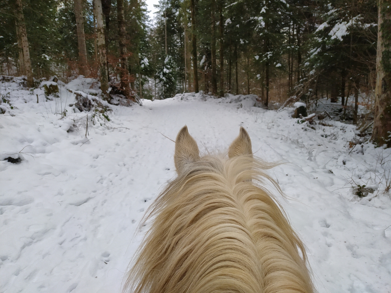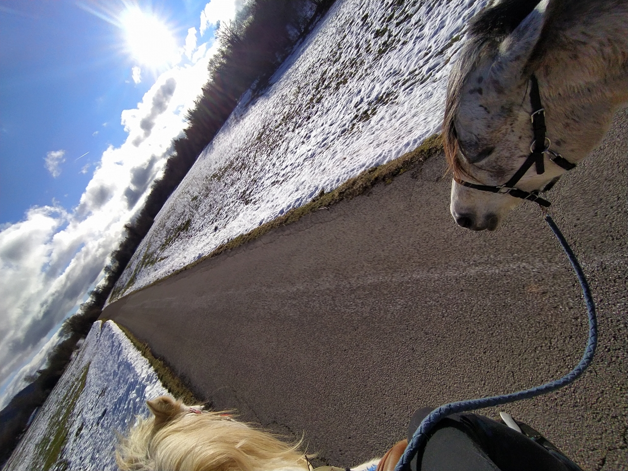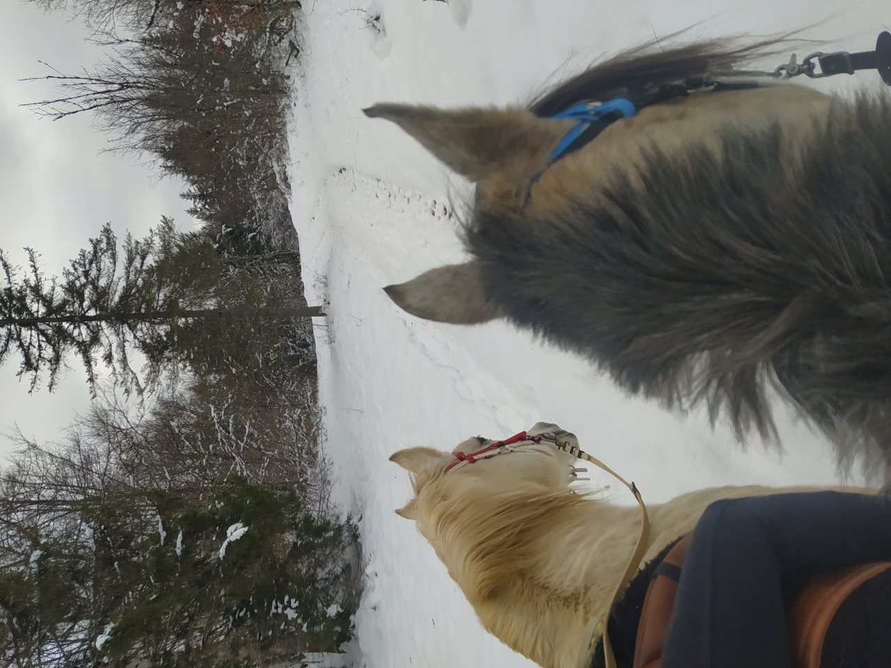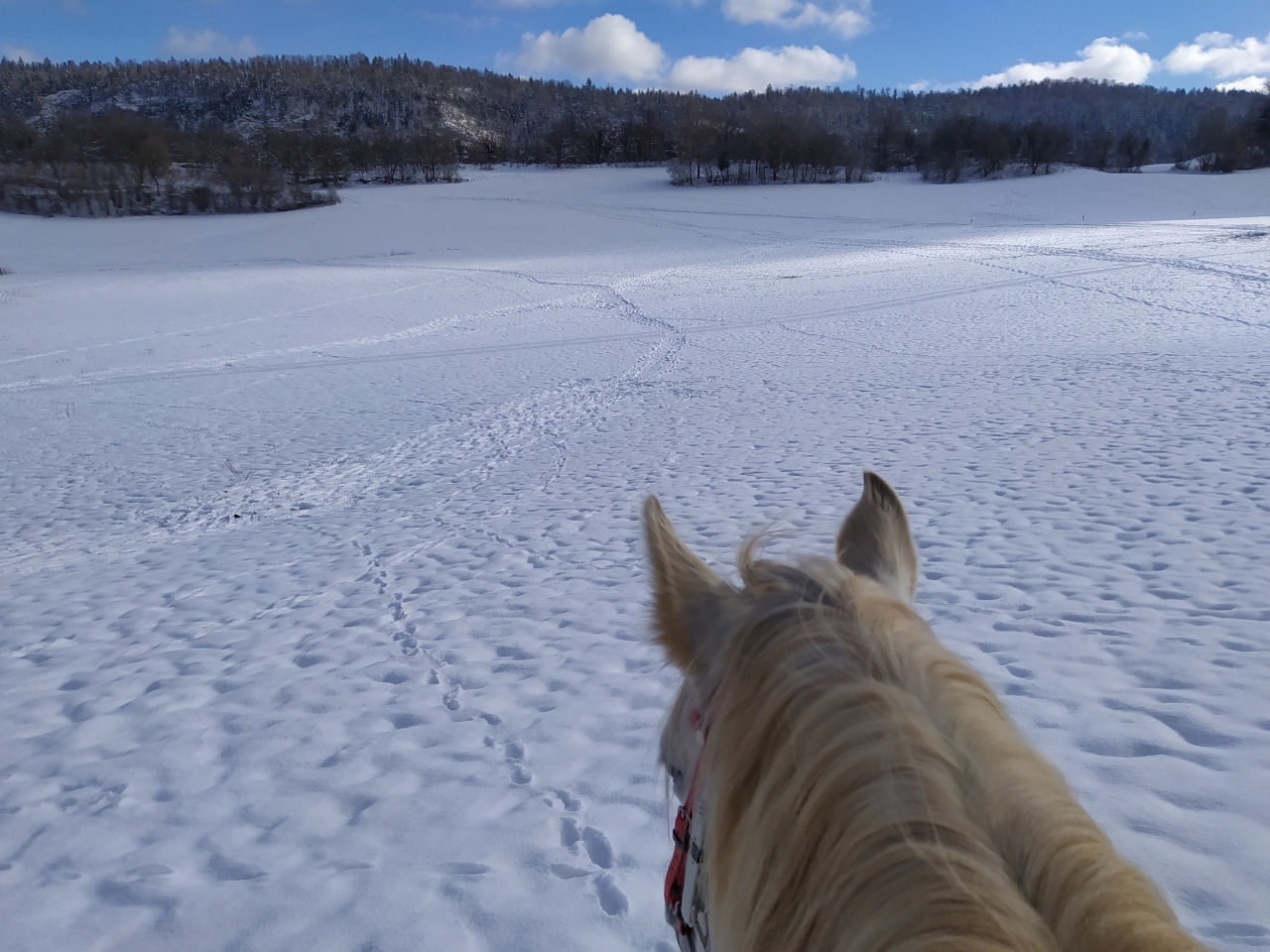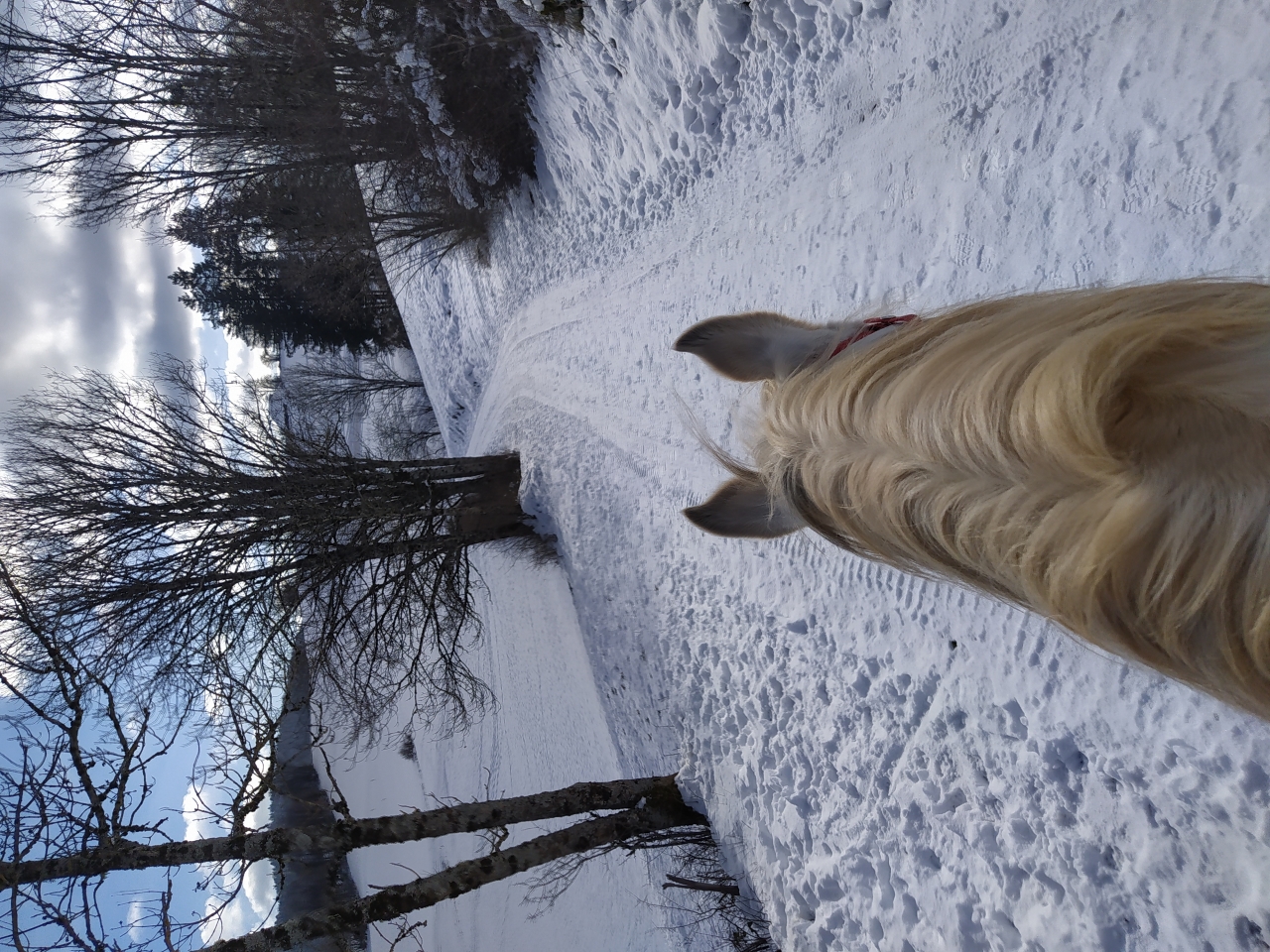| Dire merci | Aujourd'hui, il était prévu que M vienne monter Naska. Comme je voulais lui ouvrir son terrain de jeux , je l ai accompagnée pour lui montrer quelques chemins![]() ![]() ![]() ![]() ![]() Au final 17,5km en 2h40 C était chouette, les juments étaient au top 💞 |