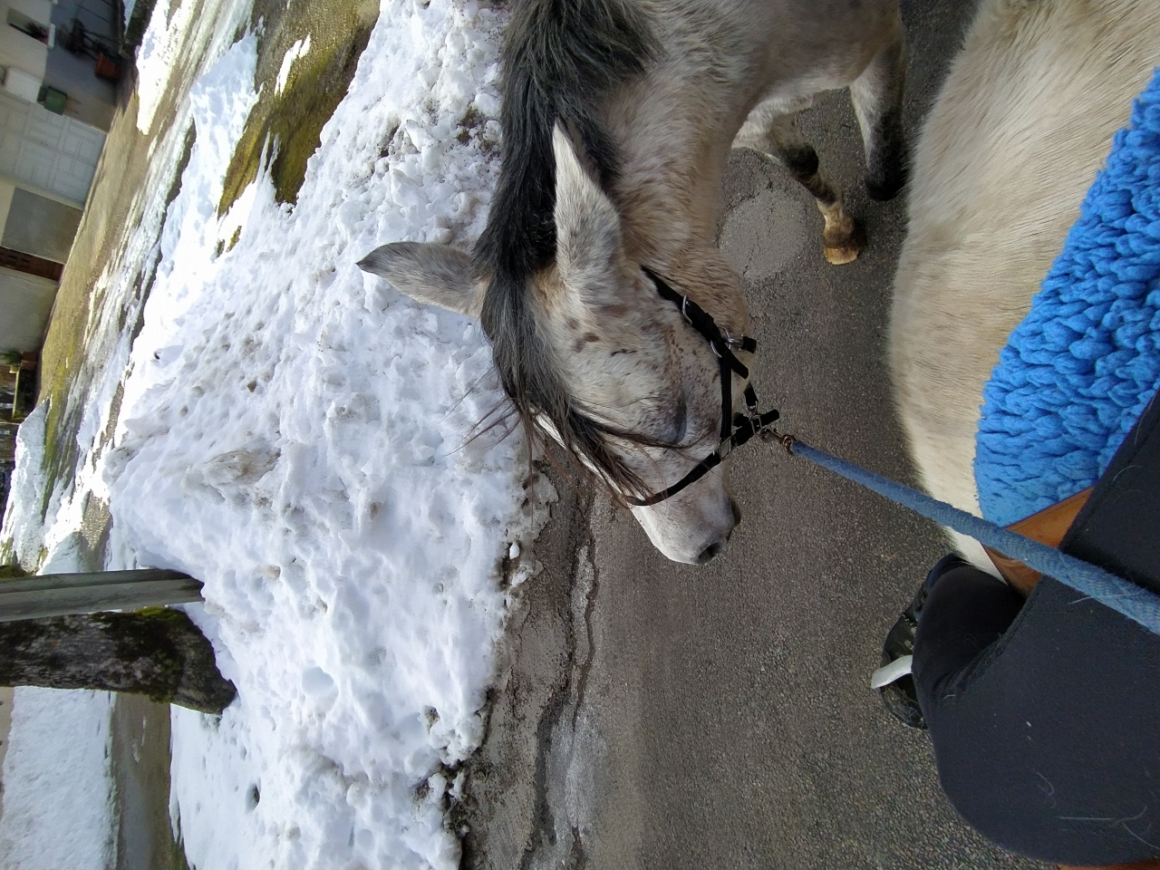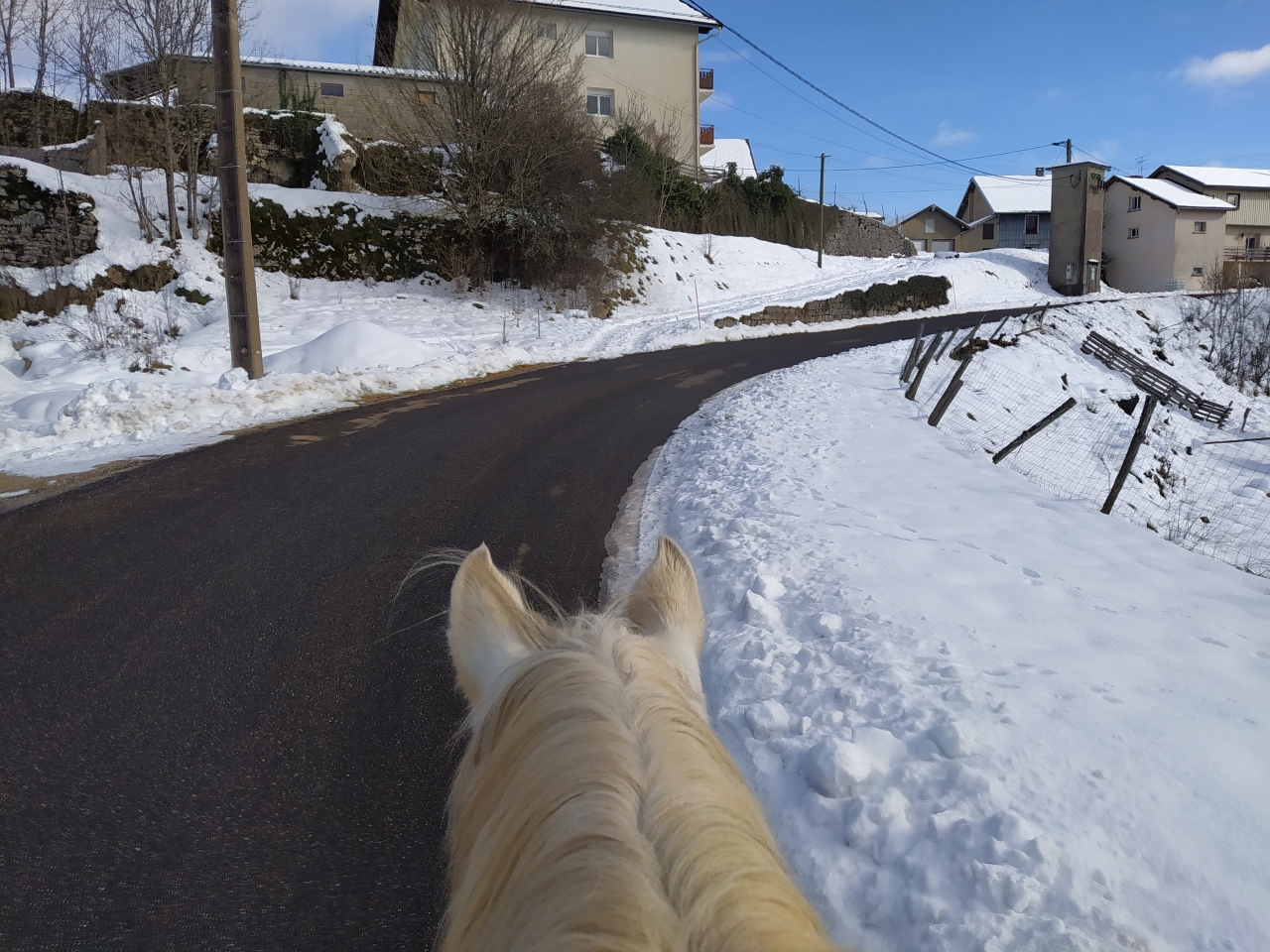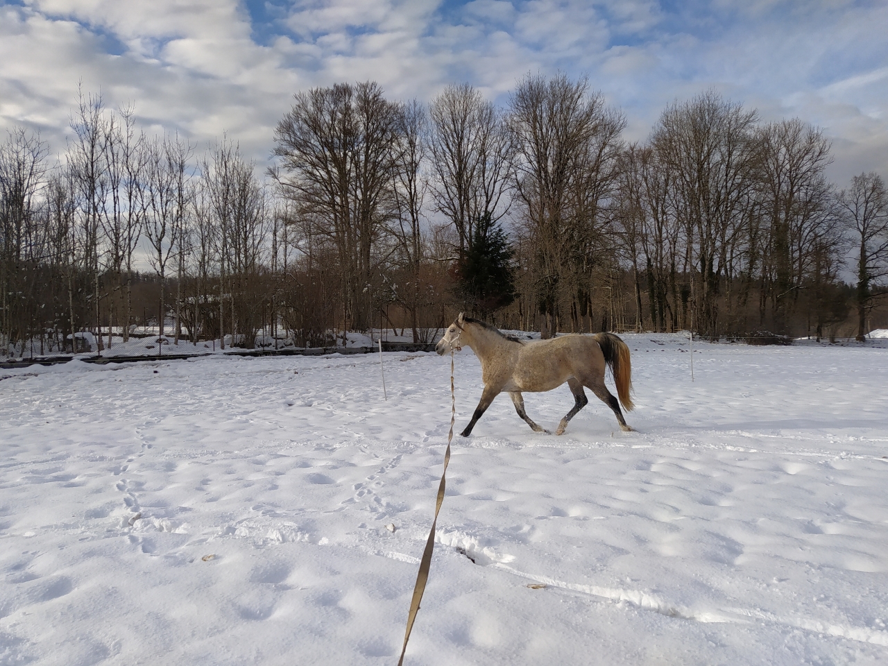 | Dire merci | carrément que ca fait du bien ! du coup hop je suis repartie cet aprèm avec la dinde blanche ![]() ![]() ca avait bien détendu, du coup on s'est risqué sur la route enneigée ^^ ![]() ![]() ![]() ![]() ![]() c'était bien agréable jusqu'à ce qu'elle se mette à faire sa nouille en faisant semblant d'avoir peur du bruit des voitures sur la glace et vas y que je saute en l'air, que je pietine, que je me traverse, que je souffle comme un dragon... elle me fatigue... du coup j'ai mis pied à terre, et on a fait les derniers 100m à pieds ![]() 1h30 de sortie pour elle, c'est vraiment pipi de chat... je vais demander au mf de la ferrer des antérieurs car elle a vraiment usé en pince sur son pied blanc et sur l'autre la scootboots ne tient toujours pas ![]() |