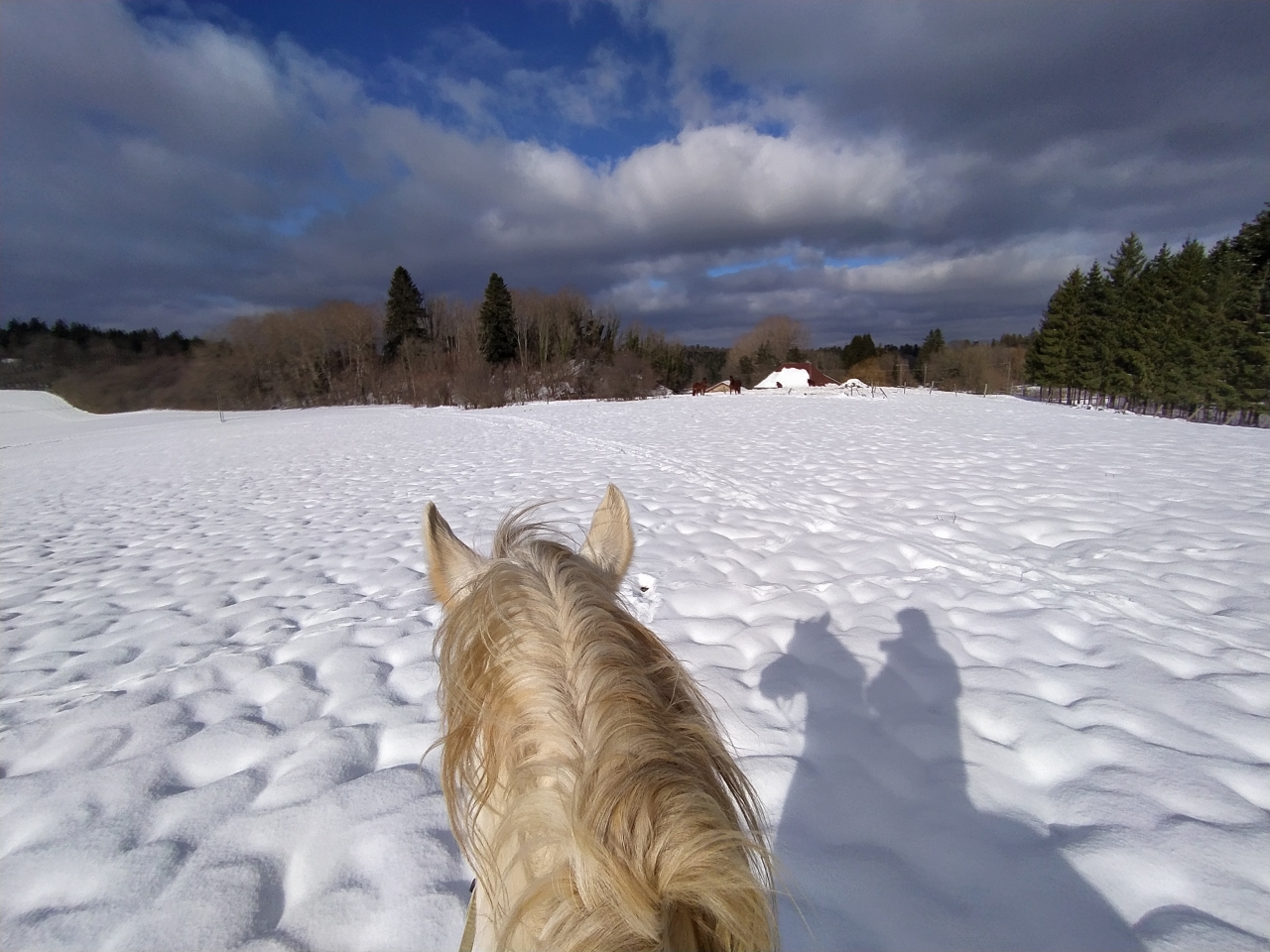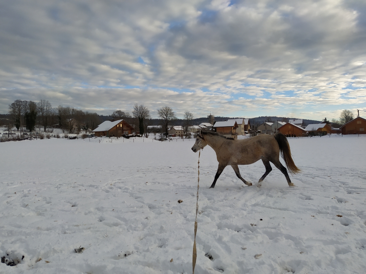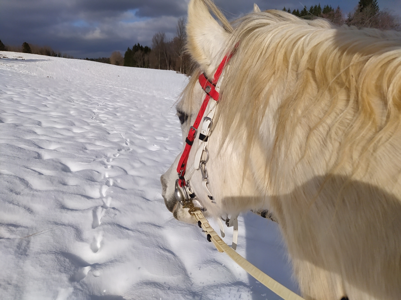 | Dire merci | carrément que ca fait du bien ! du coup hop je suis repartie cet aprèm avec la dinde blanche ![]() ![]() ca avait bien détendu, du coup on s'est risqué sur la route enneigée ^^ ![]() ![]() ![]() ![]() ![]() c'était bien agréable jusqu'à ce qu'elle se mette à faire sa nouille en faisant semblant d'avoir peur du bruit des voitures sur la glace et vas y que je saute en l'air, que je pietine, que je me traverse, que je souffle comme un dragon... elle me fatigue... du coup j'ai mis pied à terre, et on a fait les derniers 100m à pieds ![]() 1h30 de sortie pour elle, c'est vraiment pipi de chat... je vais demander au mf de la ferrer des antérieurs car elle a vraiment usé en pince sur son pied blanc et sur l'autre la scootboots ne tient toujours pas ![]() |