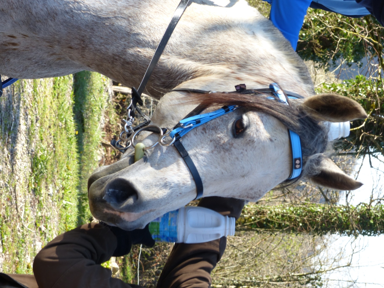 | Dire merci | sur sa 80 elle avait bu sur la deuxième boucle seulement dans la nuit de dimanche à lundi, elle a bu presque 30l après un mash réhydratant, je pense lui en donner sur les courses. A noter que les urines étaient nickelles sur le site donc j'avoue que vu que tout était ok, on ne s'est pas trop inquiété même si on préfère toujours qu'ils boivent... donc après la course, on commence à ranger et je ramène Naska à la maison avant de revenir sur le site pour la remise des prix et ranger... Comme personne n'a compris le réglement et qu'on a roulé un peu vite car sur piste ca nous fait du 16.07 pour la 1ere boucle et 16.82 pour la deuxième... mais avec les vet, on est à ... 16.08 de moyenne donc on dépasse la vitesse max autorisée, ce n'est pas éliminatoire en dessous de 0.5 mais on écope d'une pénalité ... Naska finira donc 3ème / 3 classés lol Les points positifs : elle a assez la niaque pour avancer, elle récupère très bien si on l'arrose pas trop, elle est parfaitement gérable en groupe speed sans martingale (bon on a pas réussi à adoucir les rênes sur le mors car elle était quand meme à fond meme si respectueuse de la main) Une chouette expérience pour la prochaine course prévue le 7 mai |