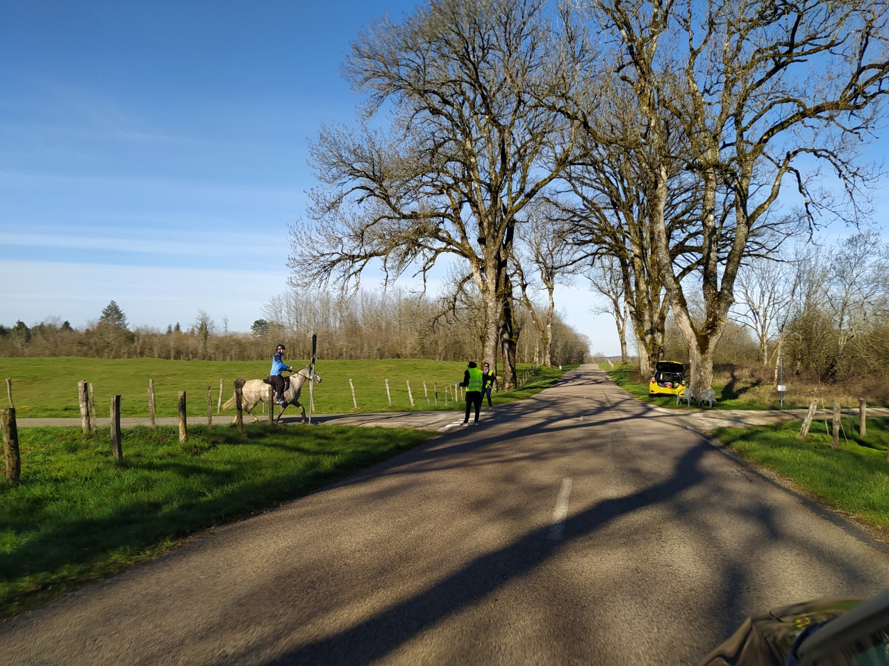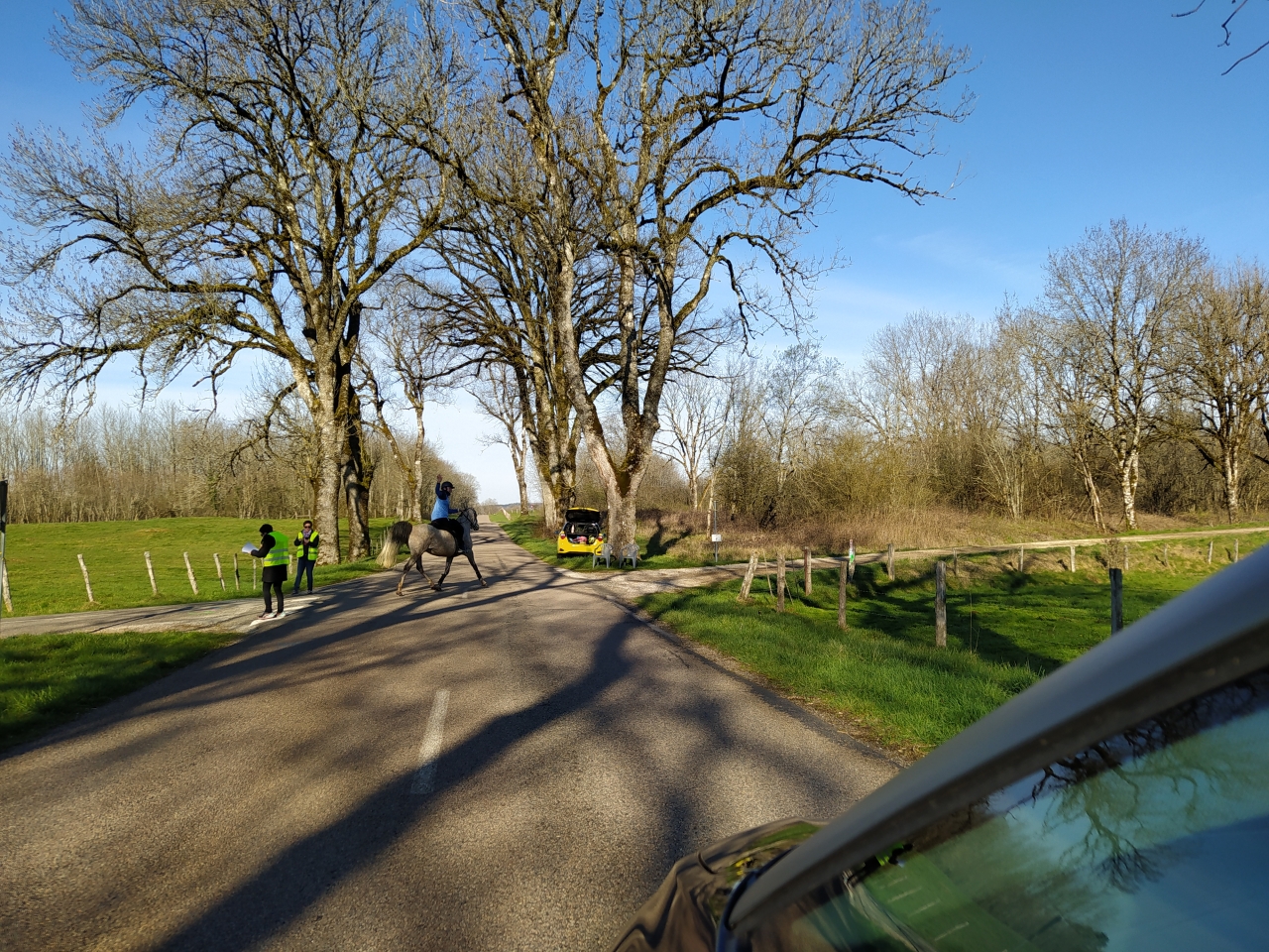| Dire merci | deuxième assistance ca fait plaisir de voir que tout le monde se prend au jeu ![]() ![]() ![]() ![]() 3ème assistance le petit groupe qui se scinde parfois en deux se retrouve ![]() ![]() 4ème assistance, tout va toujours bien mais arrivent les questions auxquelles nous n'avions pas réfléchi car cela nous semblait évident.. quand s'arrête le chrono ? à la ligne d'arrivée ? au vet ? car dépasser 16km/h par boucle est sanctionnable apparemment du coup c'est la panique, personne ne sait rien que ce soit cavaliers ou assistance et le pire... c'est qu'on a beau lire le réglement, on ne comprend rien et une fois arrivés sur le site, on arrive pas à avoir une réponse claire des officiels... finalement il semblerait que ce soit au vet... |