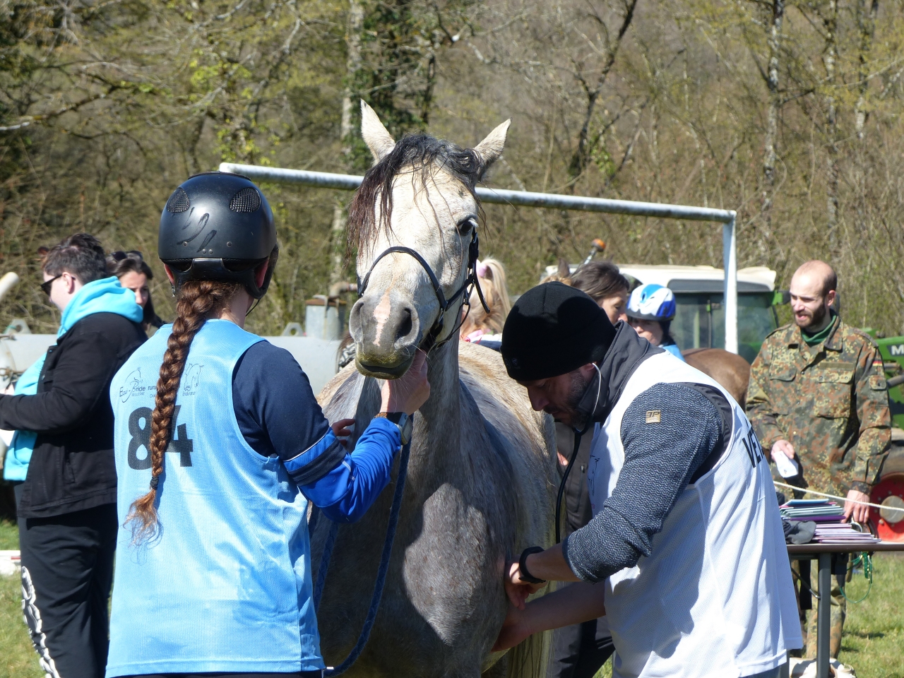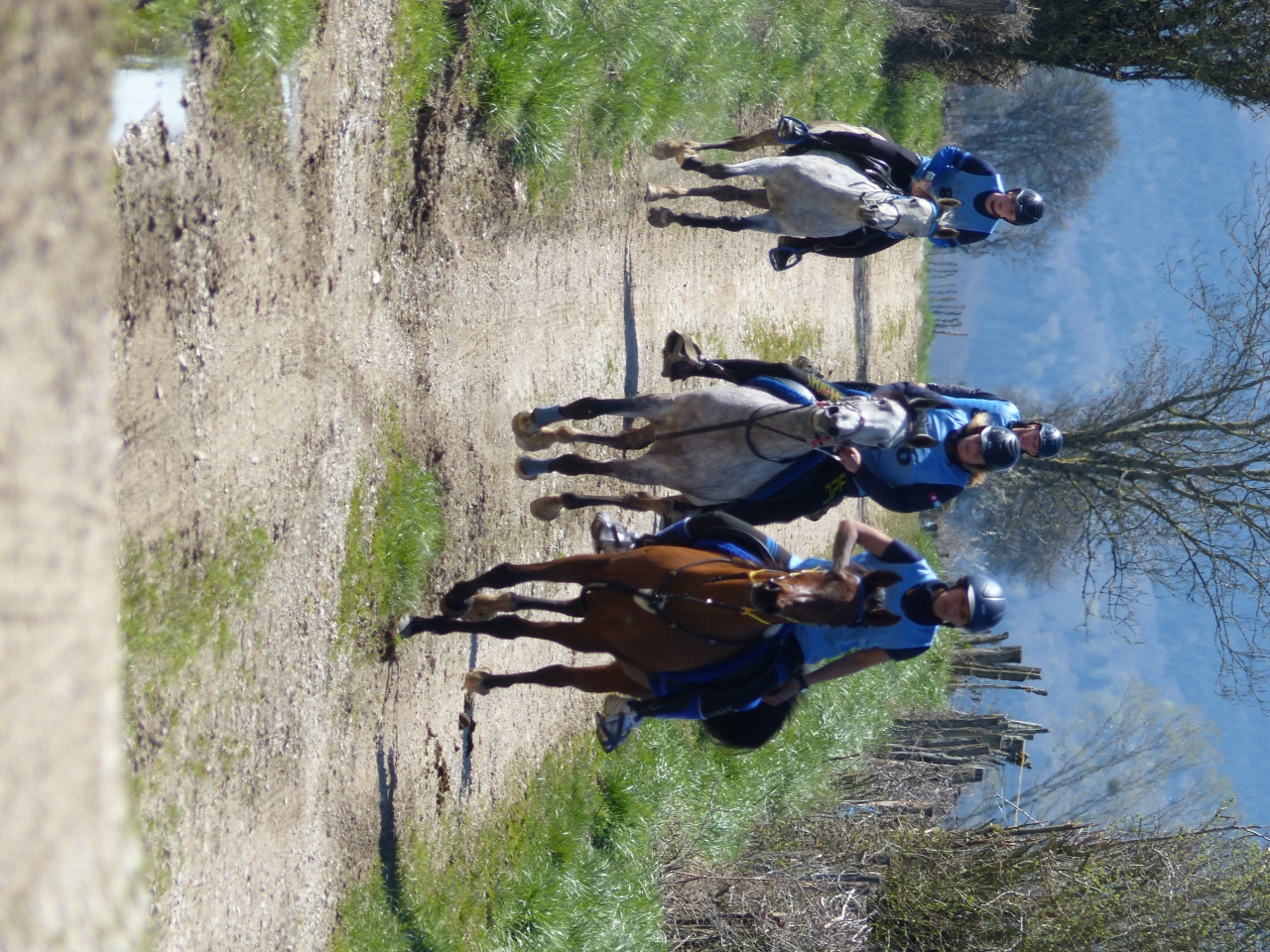 | Dire merci | puis c'est reparti sur une autre boucle de 30km nos 4 cavaliers sont toujours en lice ![]() ![]() les deux gris ont pris un peu d'avance, arrivent enfin le bai et notre Naska ![]() ![]() on a tous compris que le chrono s'arretait sur le vet à l'arrivée donc M a les yeux rivés sur sa montre ![]() elle franchit la ligne, on arrose à peine la jument histoire de pas renouveler l'erreur de la boucle précédente et en 2mn on la présente, elle est à 64 tout est ok, juste un B sur le transit mais vu qu'elle a pas bu pendant ces 60km... ![]() et voilà c'est validé ! ca valait bien une photo de famille de la team licorne ![]() |