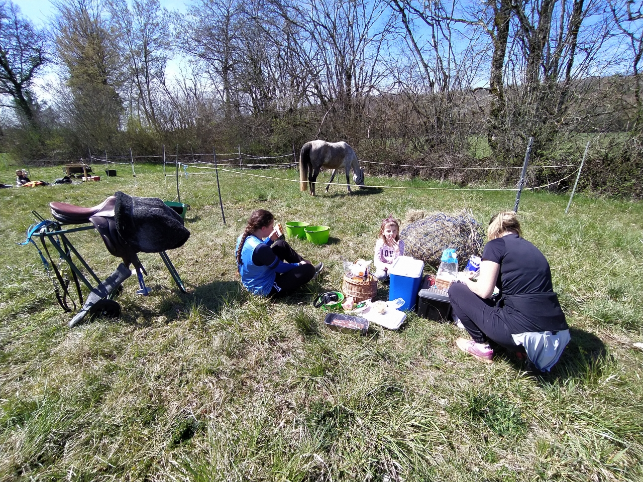 | Dire merci | Dimanche, le réveil sonne à 6h45, j'aime me lever avant tout le monde, ca me permet de m'approprier la journée ![]() Je vais nourrir Naska et Aicha mais cette dernière n'ayant pas touché son seau de la veille, ce sera vite fait... je rentre, réveille ma fille, on déjeune et on se prépare tranquillement puis M arrive avec sa maman, elles fignolent Naska, on embarque la bestiole et 7h45 on décolle. Arrivées sur site, on installe le grooming, le paddock, la jument passe au vet, tout est impecc, elle est à 40. On a engagé sur 60km VR (vitesse régulée), une nouvelle épreuve qui permet d'aller jusqu'à 16km/h et où le temps de récup' est pris en compte comme dans les vitesses libres... L'autre avantage est le départ groupé qu'on peut faire, une bonne expérience pour Naska qui a l'habitude de partir juste avec un autre cheval jusqu'à présent, là, ils seront 4 + des 60 "normales" 9h le départ est donné, ![]() on file à la voiture pour rejoindre la première assistance Ca arrive vite ![]() ![]() deux cavaliers de l'épreuve n'ont pas d'assistance, on les assistera jusqu'à la fin, car le groupe sera assez compact et que c'est cela aussi l'esprit de l'endurance pour moi.. ![]() on apercevra Naska en allant sur la 2ème assistance ![]() ![]() ***** |