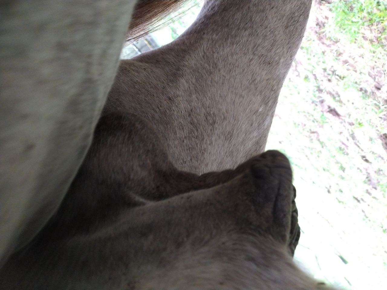 | Dire merci | Alors honnêtement j ai rien palpé, entre ma fille dans les pattes, mon ventre et le troupeau qui nous tournait autour... Je me suis pas sentie assez réactive pour éviter un mauvais coup si je palpais mal 🙈 |