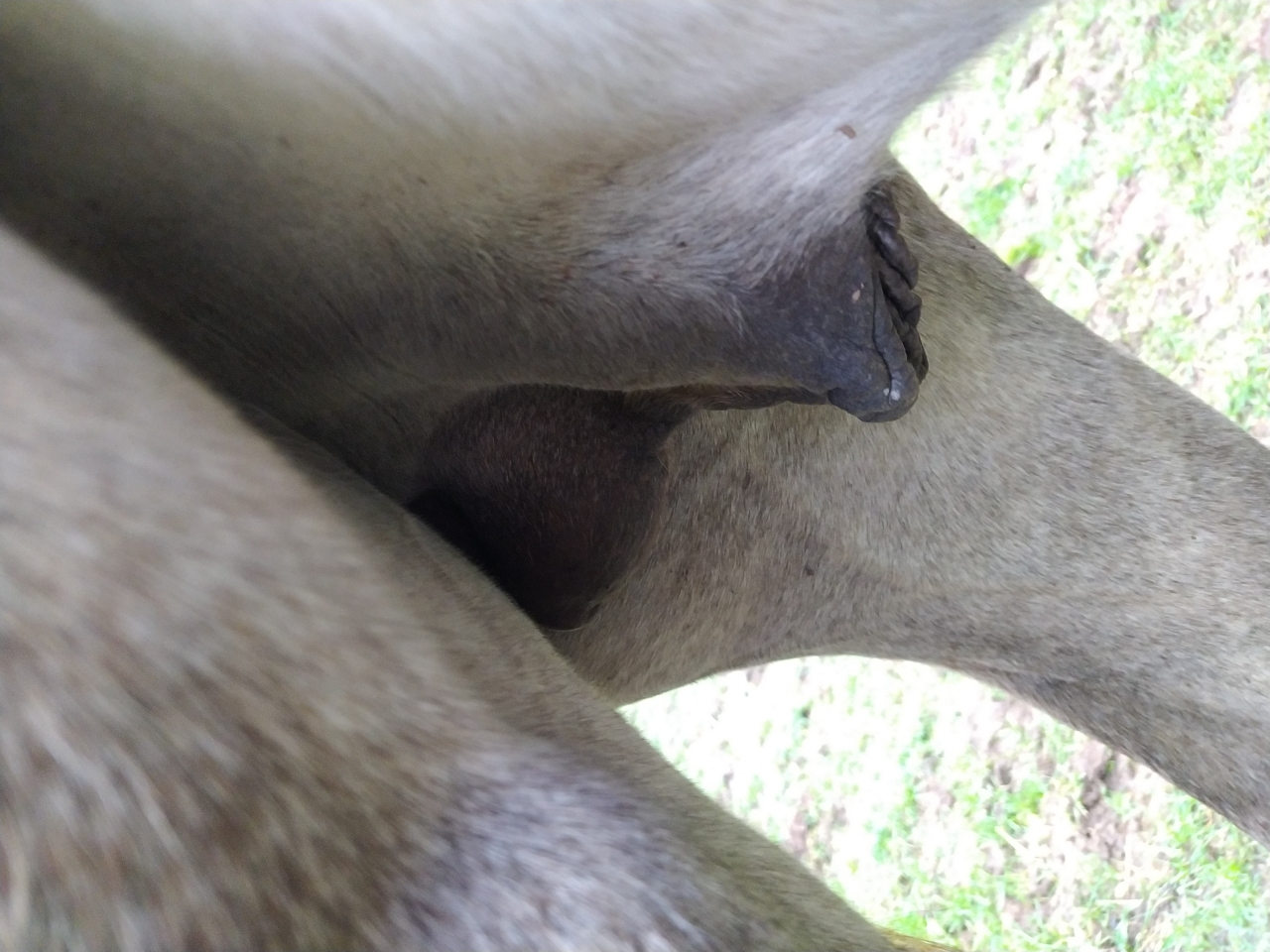 | Dire merci | En soi tout peut arriver, mais c’est très rare. La plupart du temps lorsqu’ils sont jeunes c’est elles jouent au yoyo. Tu en vois une, puis l’autre, les deux, aucune quand tu sors le tuyau d’eau froide mais en général la peau du scrotum reste dehors et on voit que ça pend quand la couille est à l’intérieur. Ne t’inquiète pas avant d’avoir l’avis véto, surtout si l’ostéo a senti les deux. On ne voit pas bien sur les photos mais on dirait qu’elles sont les deux là. Juste que le scrotum ne marque pas bien chacune (je ne sais pas trop comment expliquer, on dirait que la poche est trop petite pour contenir les deux). |