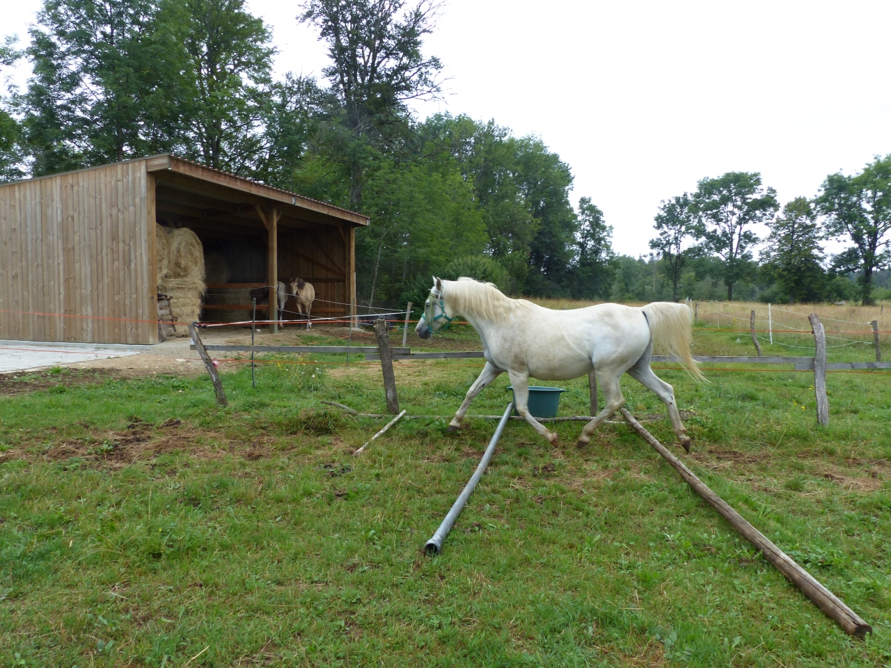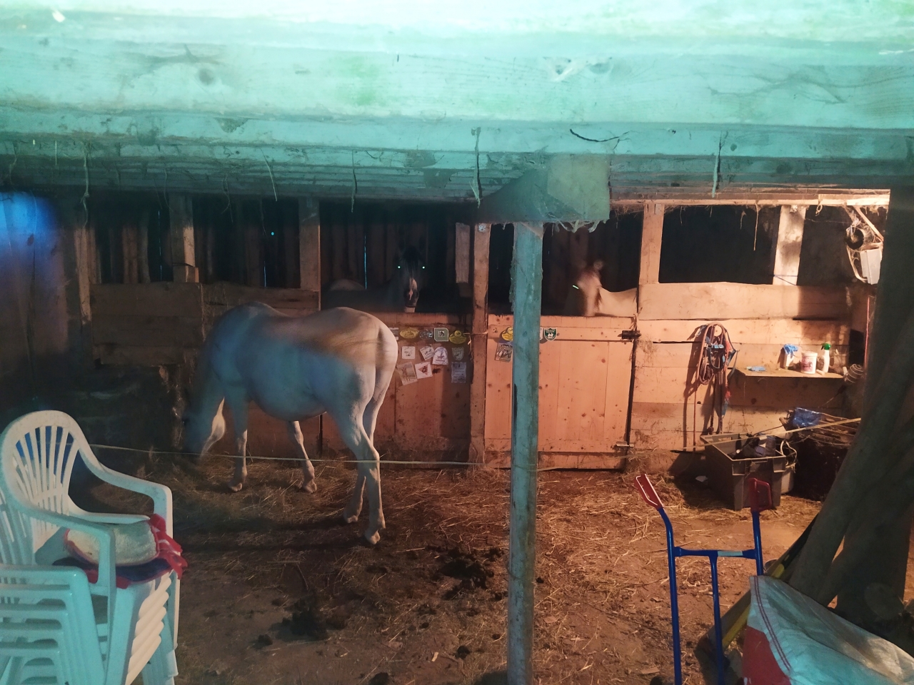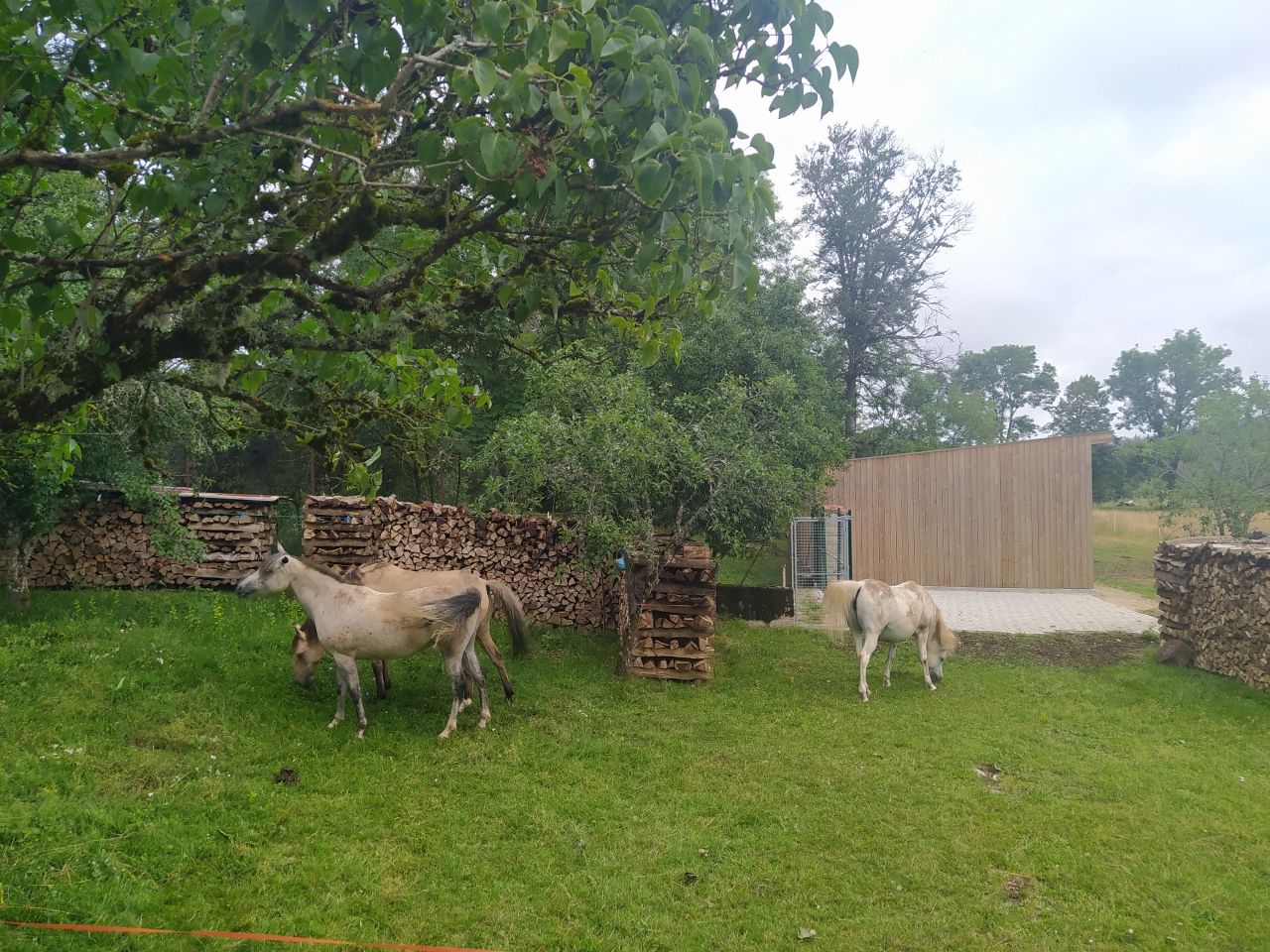 | Dire merci | bé oui 2 boxs, 3 juments c'est pas la compo idéale mais je peux compter sur ma fidèle Quiara pour gérer Vanda était clairement rassurée par les copines, elle ne va jamais en box et encore moins dans des semi enterrés comme les miens. Ce matin son foin avait peu baissé et l'eau idem mais elle était calme donc c'est top. finalement fausse alerte pour nous, on a bien eu un peu d'orage mais pas de grêle... ouf |