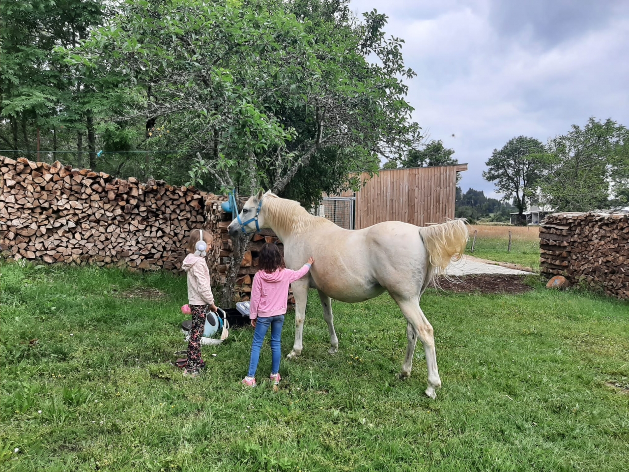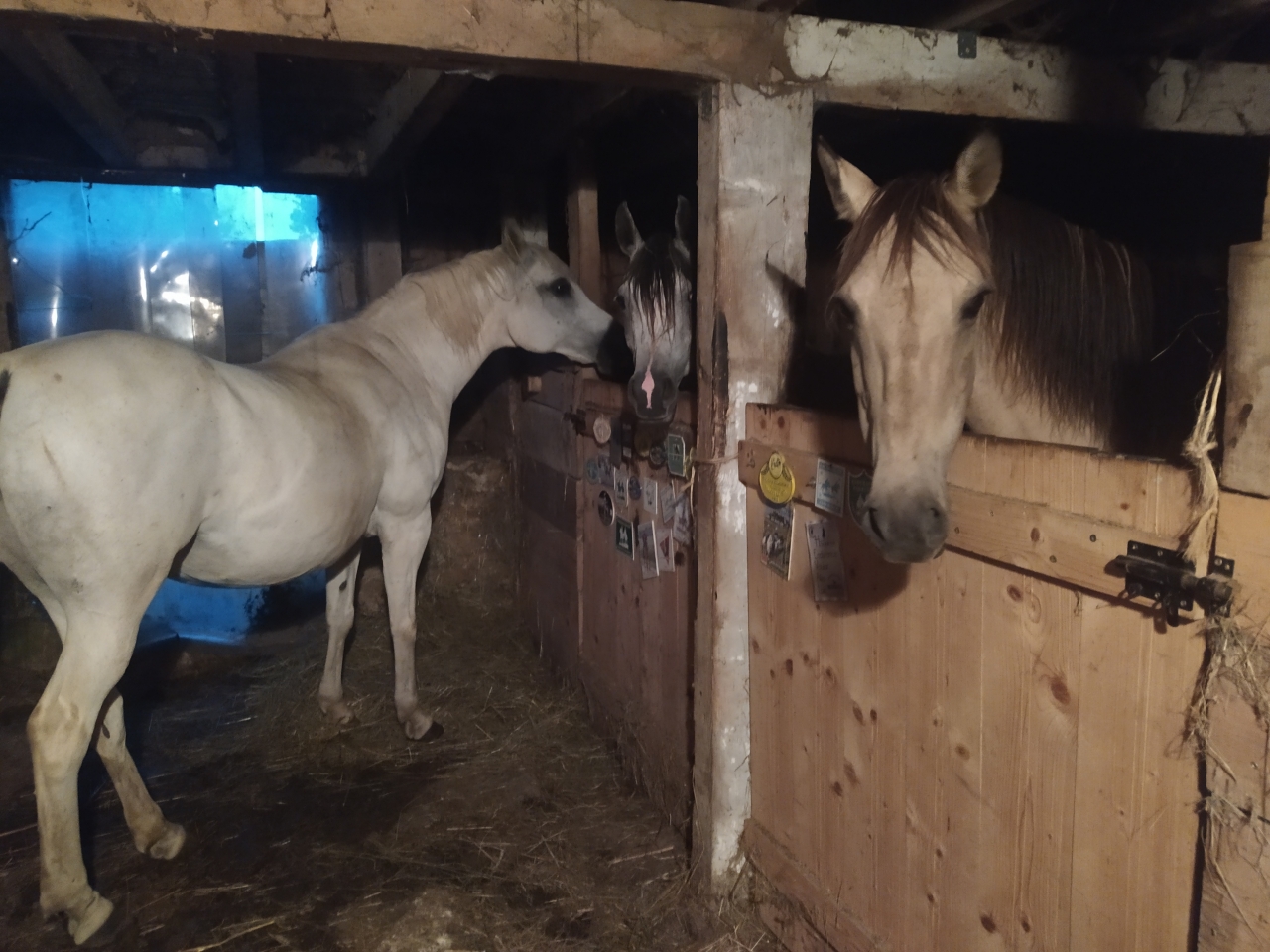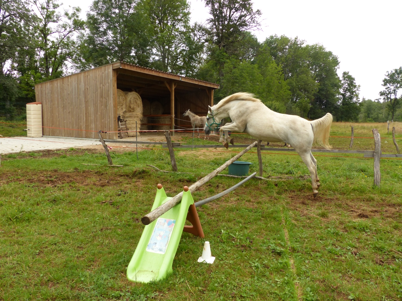 | Dire merci | bé oui 2 boxs, 3 juments c'est pas la compo idéale mais je peux compter sur ma fidèle Quiara pour gérer Vanda était clairement rassurée par les copines, elle ne va jamais en box et encore moins dans des semi enterrés comme les miens. Ce matin son foin avait peu baissé et l'eau idem mais elle était calme donc c'est top. finalement fausse alerte pour nous, on a bien eu un peu d'orage mais pas de grêle... ouf |