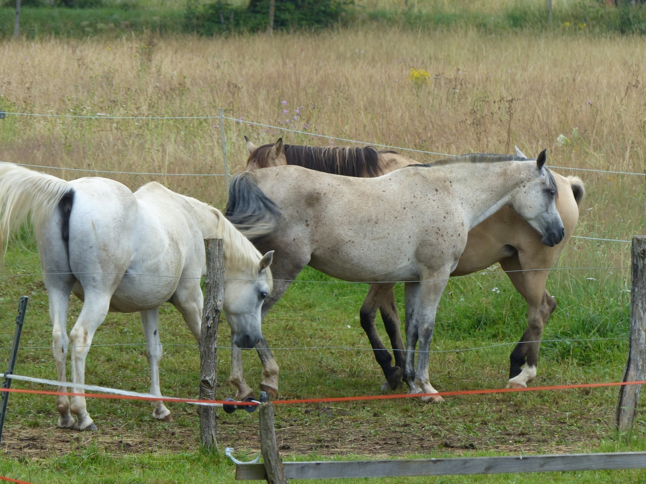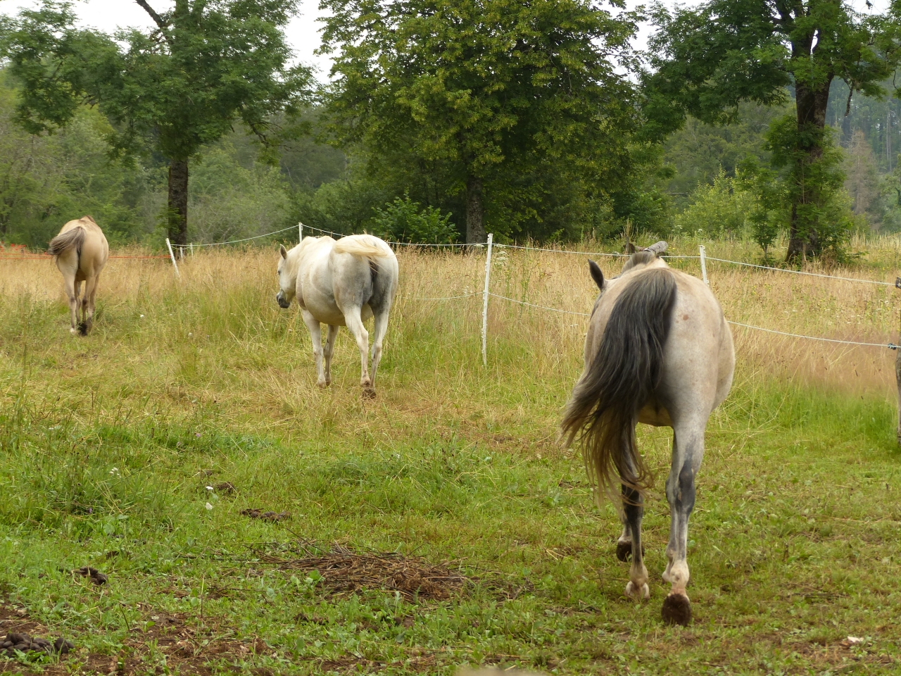 | Dire merci | d'après la lésion, elle aurait pu mettre le pied sur un gros caillou et basculer le pied d'un coup ... le coup à pas de pot et au remblais mis sur les pistes pour conjurer la pluie ![]() bon paddock pour elle et Quiara ce matin nikel pendant 2h 30 et vu comme je me traine, je les ai mise ce soir dans un plus grand avec Vanda. Naska était la seule à faire la dinde évidemment... comme les deux autres ne suivent pas, elle s'est vite calmée... j'avais pensé la laisser seule dans le paddock mitoyen mais vu comme elle s'est mise à faire la con quand j'ai enlevé Quiara |
