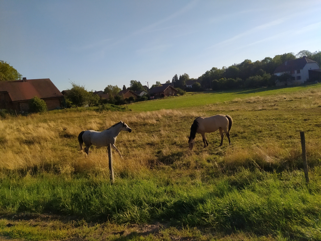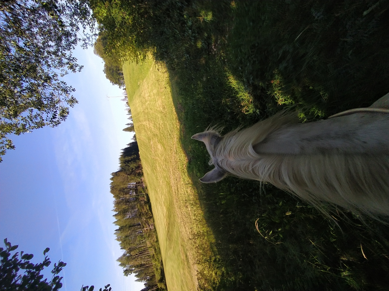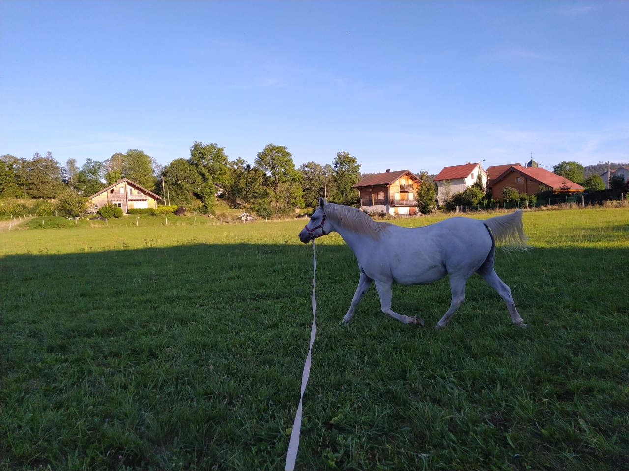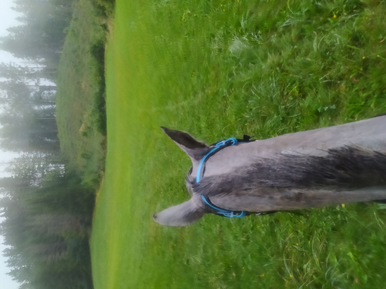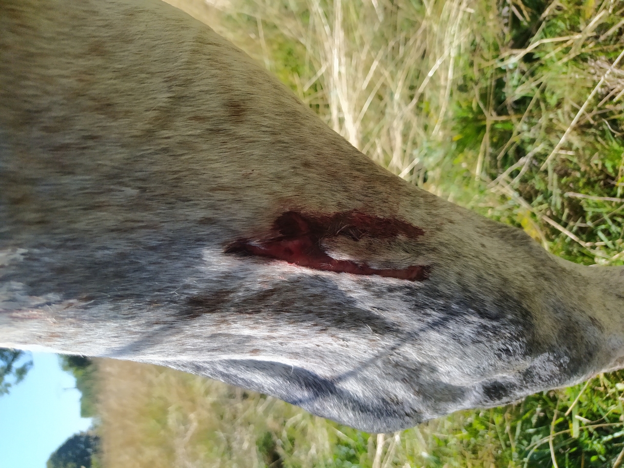 | Dire merci | Je vais donc chercher mon licol et l attache pour faire l inventaire de la carrosserie qui est bien rayée de partout. Désinfection des plaies et aluspray pour les mouches. ![]() Je regarde le parc, le fil n a pas bougé, elle a du sauter mais pourquoi? Allez on part en sortie, ce sera l occasion de voir si ça boîte... ![]() ![]() ![]() 6km plus tard nous voila de retour à la maison Je remets Naska au parc, à peine le temps de sortir, que Vanda la tabasse sur l arrière main avec les postérieurs 😱 |