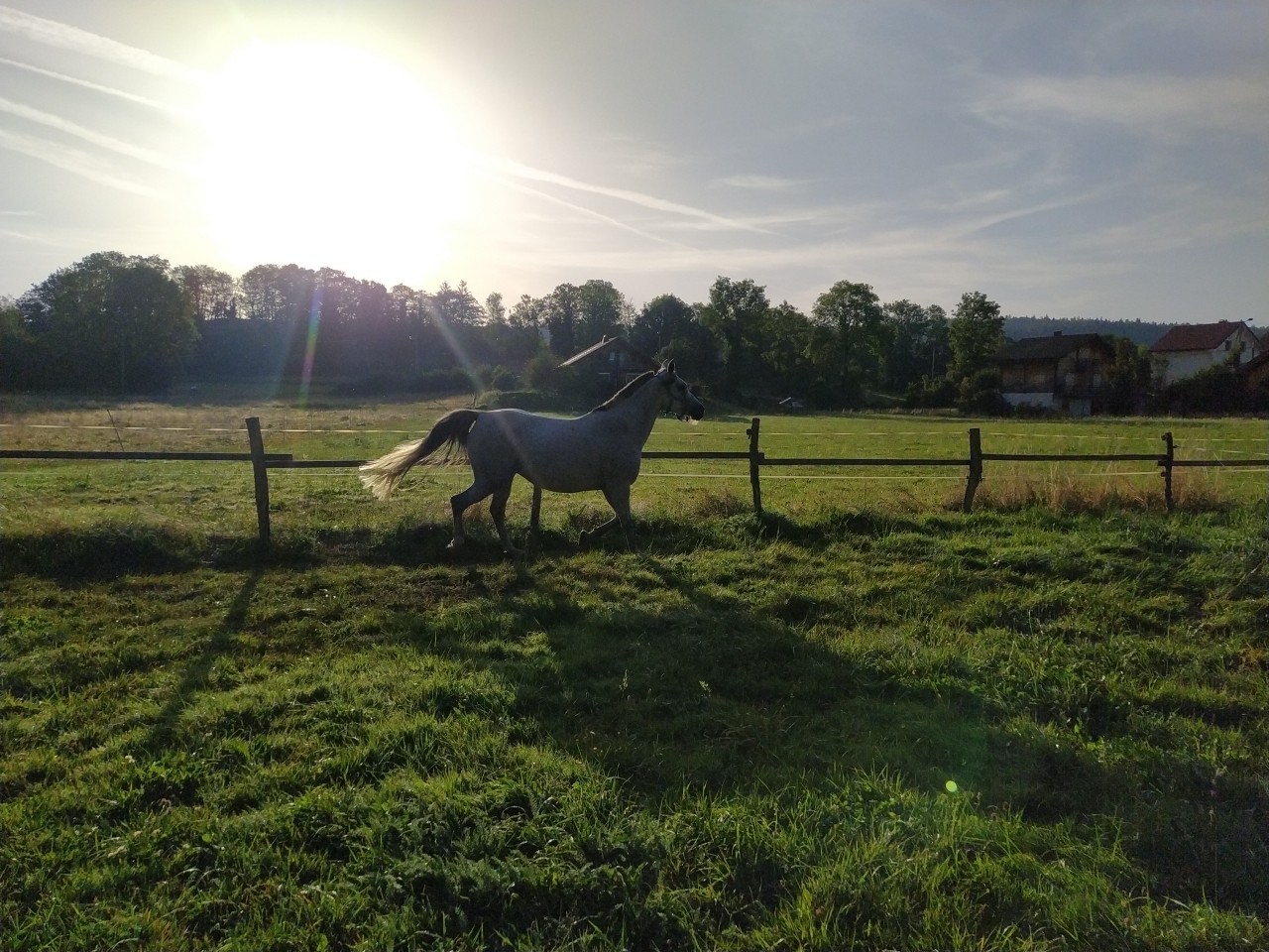 | Dire merci1 | Avant dernière page : injection d'immunothérapie pour Naska Dernière page : 1ere course de Qoumir 2006 Après avoir rencontré Iris qui me permit d'aller jusqu'en 160km en endurance...réalisation d'un rêve : une arabe...Quiara de la Loze que j'achète à ses 23 mois Nous apprenons beaucoup ensemble, elle me suit dans mes idées + ou - farfelues et me donne en retour sa confiance aveugle malgré son carafon de "poney arabe" mais à nous les rigolades, les grandes sorties, le trec et... l'endurance ! Juillet 2008, je vais voir une arabe russo-polonaise de 11ans, Nastassja de Pawi dite "Nati". Ce sera Elle, la nouvelle élue pour la réalisation d'un projet qui me tient à cœur : produire quelques poulains bons et beaux ! Elle nous offre un adorable poulain en 2010 : Nahym, qui partira rejoindre sa nouvelle famille en août 2011. Puis Nati s'offrira une jolie qualification en endurance sur 130km en avant de prendre sa retraite sportive. 2012 : Nati part en location poulinage et Djati naît en mars 2013, au sevrage de celle ci, fin septembre 2013, Nati rentre à la maison ! 2014 : Nati retourne à la saillie début mai pendant que Quiara reprend le chemin des courses après l'année précédente maudite où la perte de son bout de queue puis des soucis de selle nous ont gâché la saison... 2015 : Quiara se blesse au parc, on dit aurevoir à nos rêves de courses d'endurance et petite Naska arrive le 16 avril après pile 11 mois et 11j de gestation. 2016 : Nati retourne en contrat poulinage Quiara fait son retour en course en gagnant la 1ère course à laquelle elle participe avec Deydou39 : une 80vl fin mars puis fin juin elle doit être mise au repos, la saison de course est encore stoppée cette année pour nous ![]() 2017: Nati a pouliné d'une pouliche : Hadjira. Elle rentre en novembre à la maison et Quiara fait 130km seule au monde avec moi en course, oublié son accident qui failli lui couter son antérieur ! 2018 : Naska correspond tout à fait à ce que je voulais comme relève. Nati fait de la prom prom et Quiara après avoir gagné sa 1ère course de la saison qui devait nous ouvrir les portes de notre 160 se blesse et se fait une desmite... ![]() Fin 2018 : La boucle est bouclée, Nati retourne dans son élevage afin d'offrir la relève de sa lignée à son naisseur. mais en 2020 perd la vie à la naissance de Nasdrovia. Naska reprend tranquillement le chemin des sorties et Quiara va à la saillie .... Naska obtient sa première qualification en endurance sur 20km puis sur 40km. 2021 Naska se requalifie sur 40km puis 2 fois sur 60km & Qoumir (fils de Quiara et de Ofir al Hfifa) fait son arrivée parmi nous, un grand mâle gris timide et malicieux à souhait ![]() 2022 Naska commence l'année avec une cyatosmose larvaire mal traitée et diagnostiquée... on pense la perdre mais grâce à de précieux conseils venus du forum, elle remonte la pente et gagne en juillet sa première 80km (87km en réel) à notre grande surprise ! Qoumir part dans sa nouvelle famille en avril et Quiara est remise à la saillie mais elle ne prendra pas...En novembre, Naska obtiendra sa 2ème qualification sur 80km, une course technique où elle ne déméritera pas 2023 : la saison d'endu se prépare pour Naska et nouveau et dernier prétendant pour Quiara qui nous fait tourner encore en bourrique pour ne pas prendre... 2024 : après un début d'année sympa avec qq cso Quiara se fait une atteinte de la bride carpienne et du suspenseur en faisant la con au parc... elle reprend le boulot tranquillement mi aout après 5 mois de repos Naska continue les sorties après avoir été mise en pause par la fédé d'endurance suite à ses 3 éliminations consécutives pour boiterie, n'ayant rien nul part, on suspecte de fortes douleurs ovariennes qui la feraient boiter.. 2025 il aura fallu retenir 4 prétendants pour n'en avoir qu'un pour Quiara cette année, affaire à suivre, c'est la der des der... Naska se fait opérer en janvier d'un sarcoïde mal placé et reprend l'entrainement, on espère résoudre ses irrégularités d'allure par la suppression des chaleurs. Juillet 2025 : Naska m offre sa deuxième qualification sur 100km et enchaîne une immunothérapie pour une tumeur sous la paupière Quiara me fait à nouveau la joie d être pleine pour mi mai 2026 ❤️ Message édité le 30/09/25 à 20:13 Message édité le 18/11/25 à 14:53 |