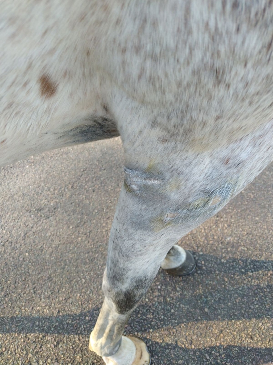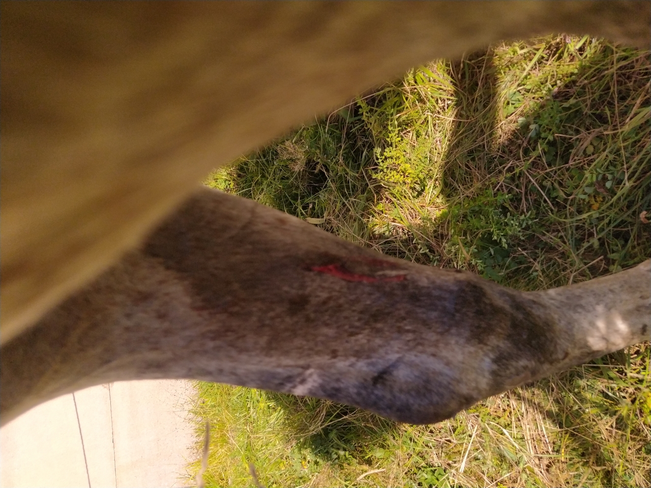 | Dire merci | samedi elle est sortie avec M mais avant elle a trouvé le moyen de se prendre les pieds dans rênes, de sauter dans la voiture de M avant de finir sur les jarrets dans ma cour ![]() donc j'apprends ca samedi soir (j'étais absente la journée) et dimanche matin on fait l'état des lieux... de la peau en moins au niveau de la sous gorge et amochée sur un postérieur, au niveau de la face externe du canon et sur la pointe du jarret... je soigne et je mets en mouvement pour voir si ca boite ... ![]() bon tout est ok, je vermifuge donc et met Vanda à part car elle est devenue mauvaise avec les miennes notamment Quiara donc comme l'espace est restreint... ![]() |