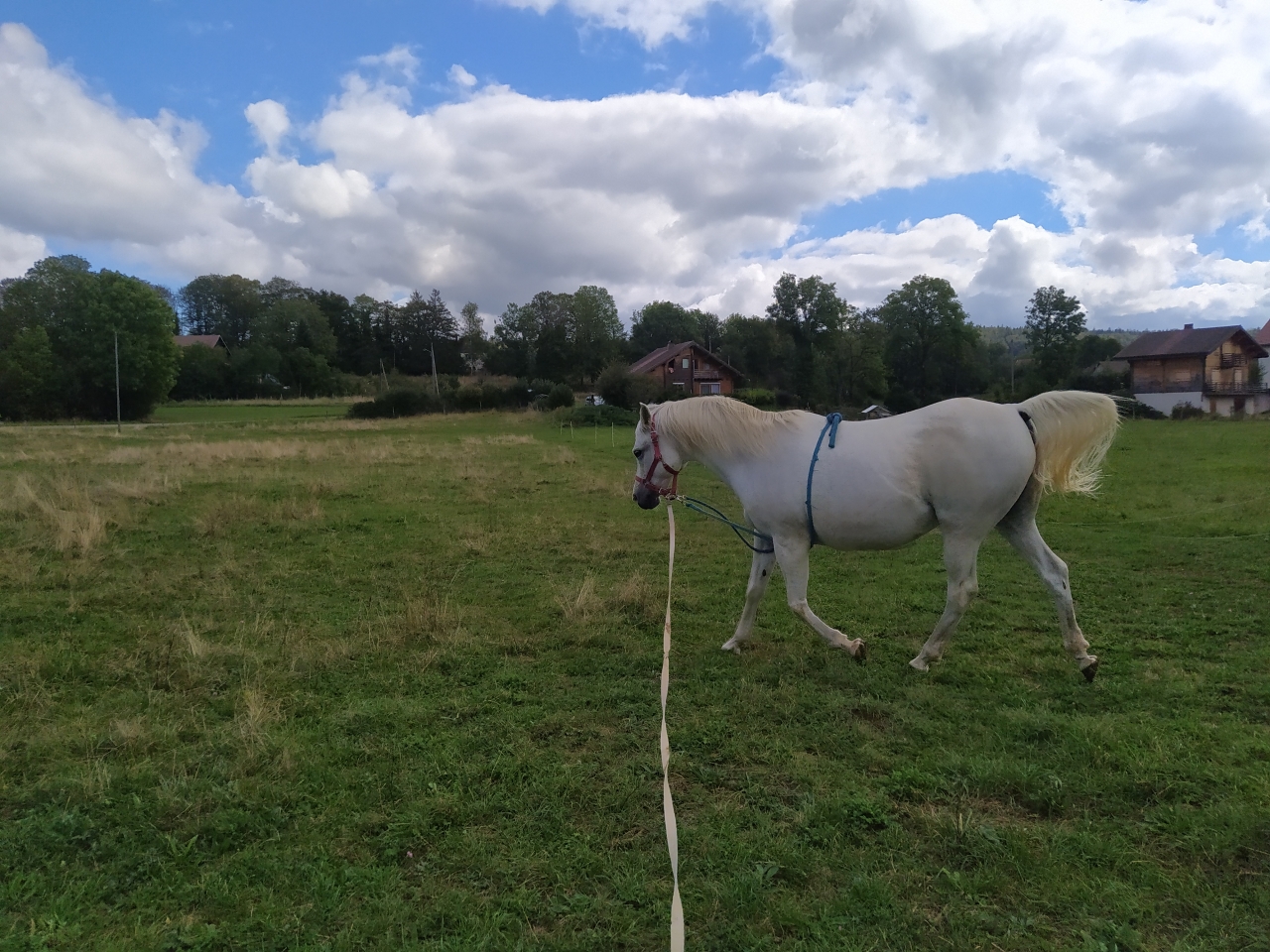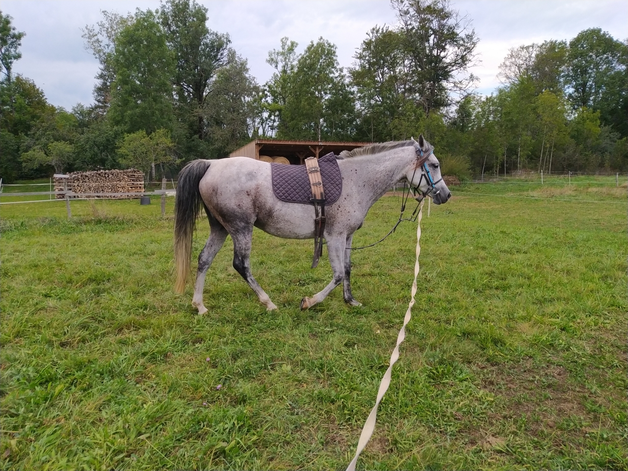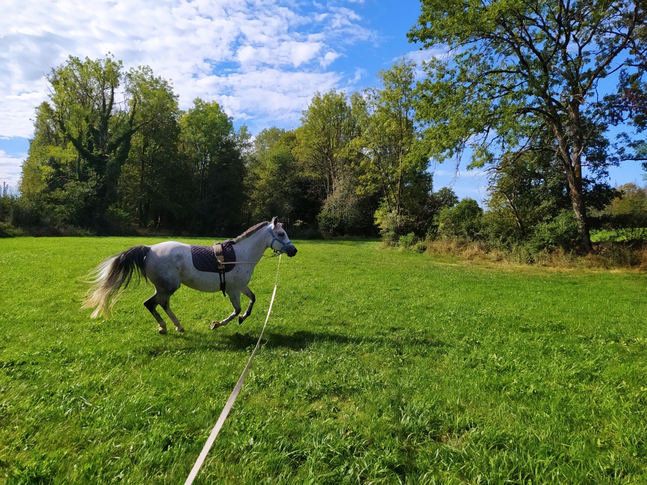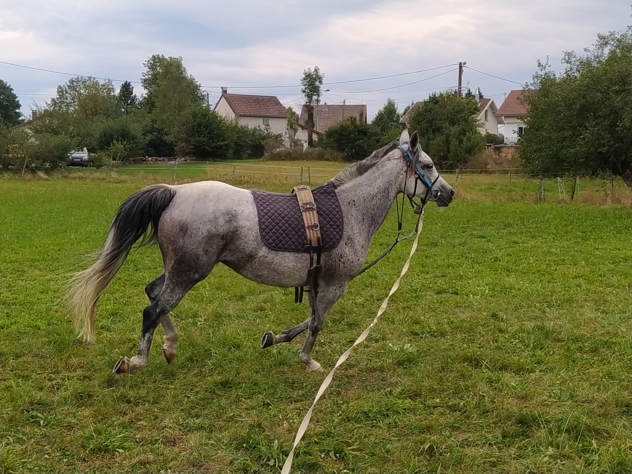| Dire merci | Je longe de la même manière et le mien a aussi mis du temps à garder la tête en bas, c’est en général le roi du « voilà j’ai fait » et de sortir de l’exercice qui lui coûte. Au début, c’était un « descend » toutes les 3 secondes, c’est pas grave, à force ils finissent par rester dans la bonne attitude. Ça les soule autant que nous de faire le yoyo, il ne faut pas lâcher. J’ai rapidement introduit le mot « encore » qui signifie qu’il fait juste mais qu’il doit continuer le geste. Ça aide pour plein de choses, cette notion de prolonger. Ce qui aide aussi, c’est de visualiser dans sa tête le cheval dans la bonne attitude quand on demande la descente. Un autre point, une fois que c’est acquis, c’est quand il ne veut pas se mettre au boulot en se mettant dans la bonne attitude, c’est de lui rendre la descente confortable en lui demandant qqch de compliqué tant qu’il ne le fait pas, et de lui lâcher la grappe quand il s’exécute. Par exemple je désengage fort le postérieur sur le cercle de manière ferme, ça lui coûte de le faire, je lui demande 1-2 tours comme ça puis je le remets droit et lui redemande la descente. S’il fait, félicitations ++ et on reste un moment comme ça. S’il ne fait pas, retour en flexion. Il pige très vite où est son confort. |