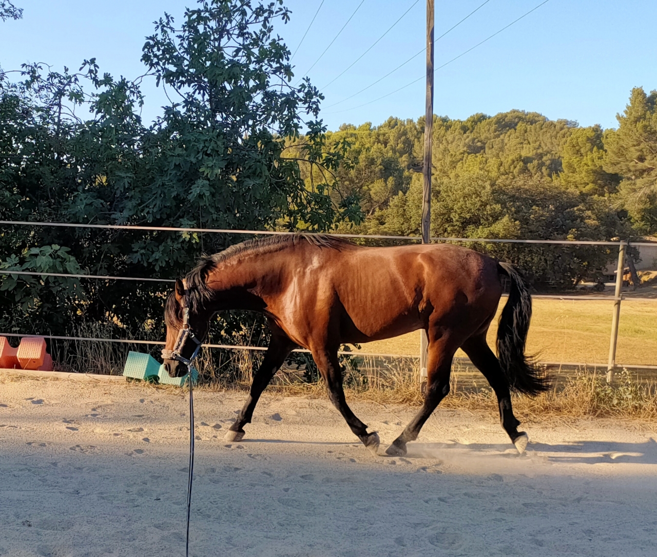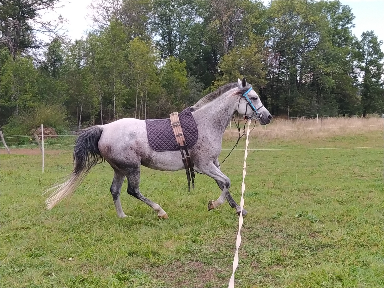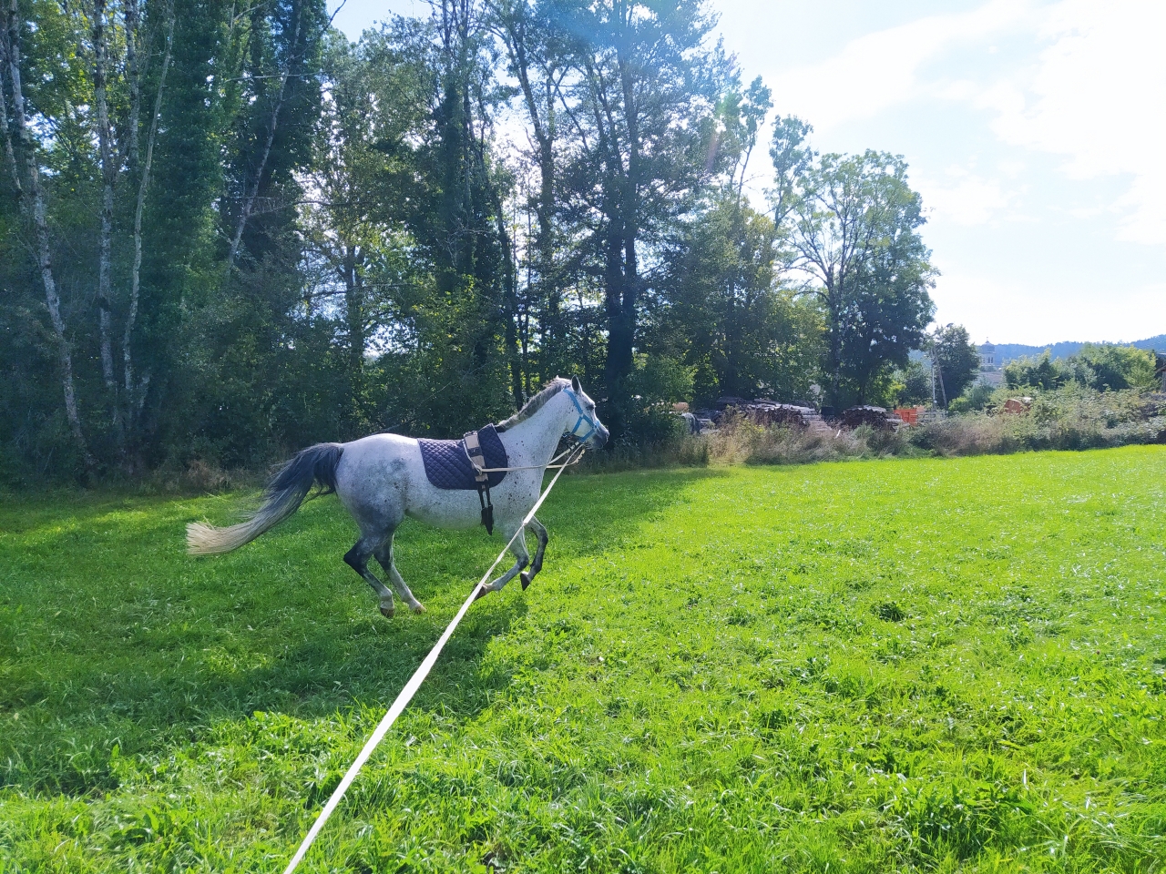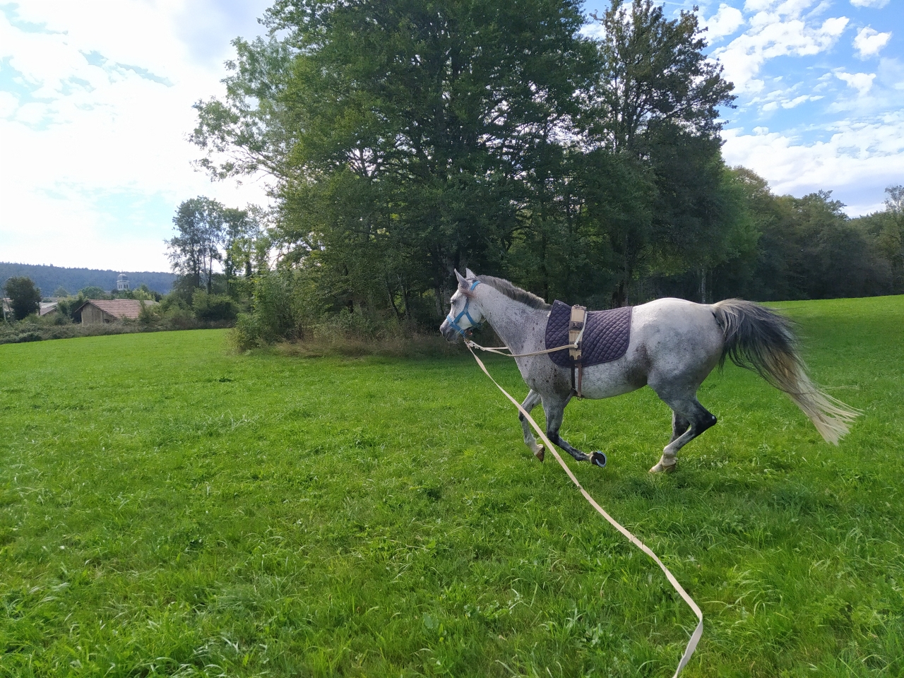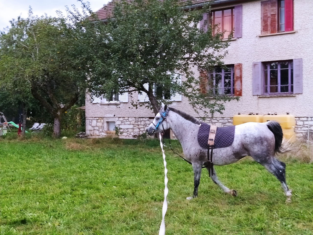| Dire merci | Je longe de la même manière et le mien a aussi mis du temps à garder la tête en bas, c’est en général le roi du « voilà j’ai fait » et de sortir de l’exercice qui lui coûte. Au début, c’était un « descend » toutes les 3 secondes, c’est pas grave, à force ils finissent par rester dans la bonne attitude. Ça les soule autant que nous de faire le yoyo, il ne faut pas lâcher. J’ai rapidement introduit le mot « encore » qui signifie qu’il fait juste mais qu’il doit continuer le geste. Ça aide pour plein de choses, cette notion de prolonger. Ce qui aide aussi, c’est de visualiser dans sa tête le cheval dans la bonne attitude quand on demande la descente. Un autre point, une fois que c’est acquis, c’est quand il ne veut pas se mettre au boulot en se mettant dans la bonne attitude, c’est de lui rendre la descente confortable en lui demandant qqch de compliqué tant qu’il ne le fait pas, et de lui lâcher la grappe quand il s’exécute. Par exemple je désengage fort le postérieur sur le cercle de manière ferme, ça lui coûte de le faire, je lui demande 1-2 tours comme ça puis je le remets droit et lui redemande la descente. S’il fait, félicitations ++ et on reste un moment comme ça. S’il ne fait pas, retour en flexion. Il pige très vite où est son confort. |