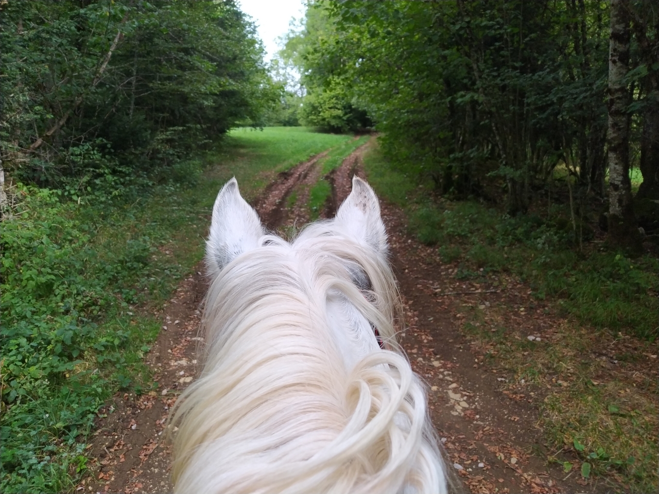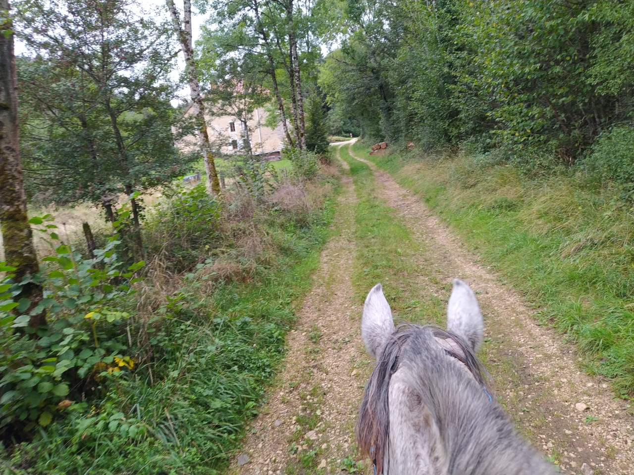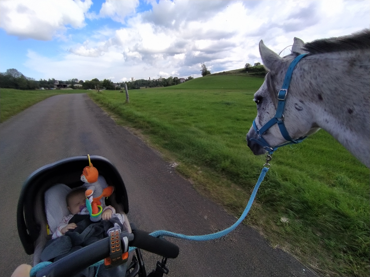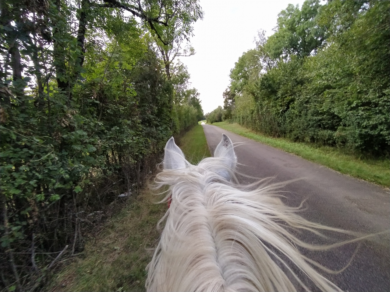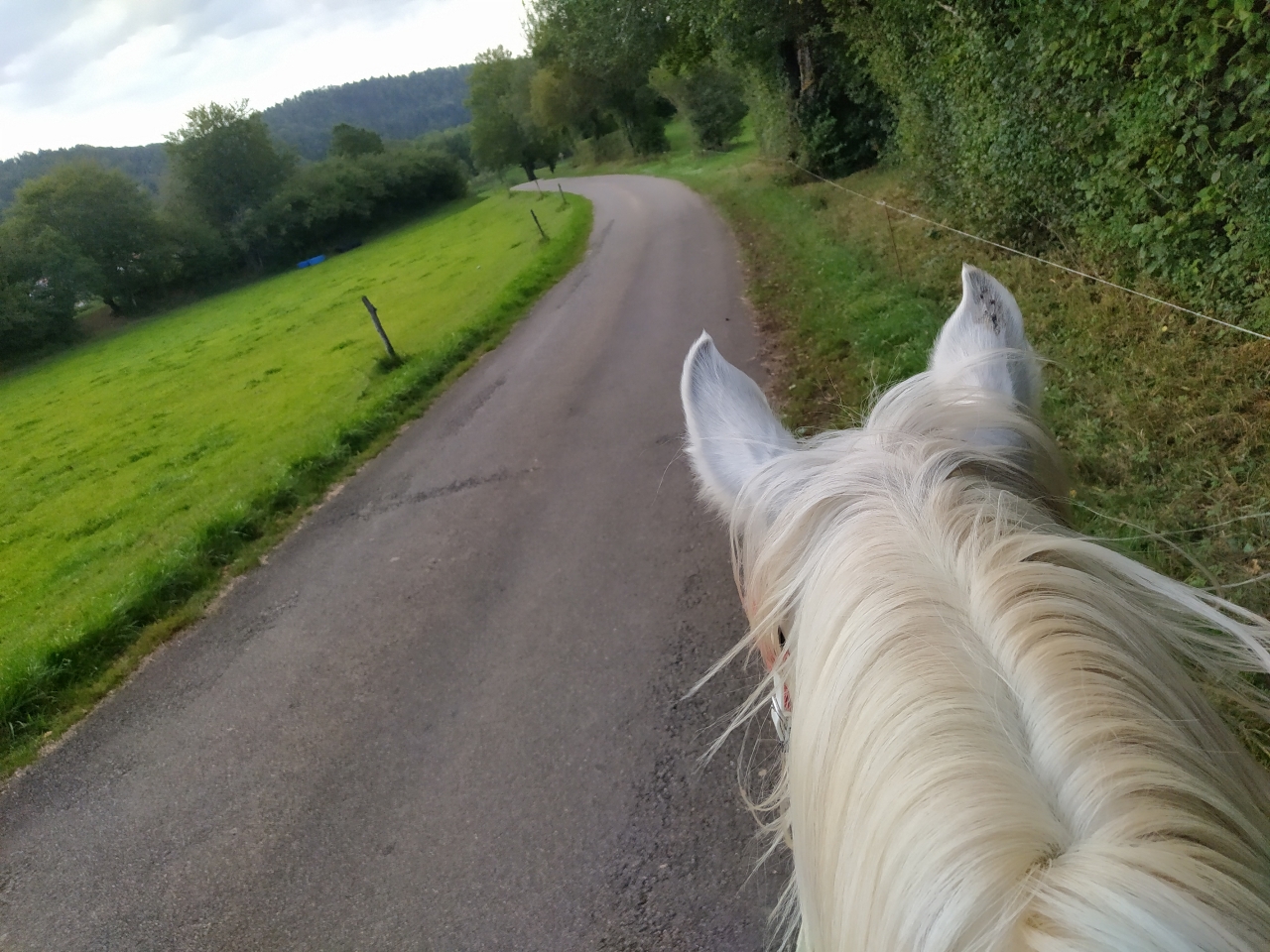 | Dire merci | Avec super poney, on prend la route normale et go go ![]() On quitte un peu la route ![]() ![]() ![]() On traverse le village du milieu au galop, le mien aussi, j arrive et... ah ben mes filles sont pas revenues des courses avec leur papa 😝 ![]() Quiara a eu chaud mais j ai pas eu beaucoup à pousser pour qu elle se prenne au jeu et fasse ses 12,5km en 1h |