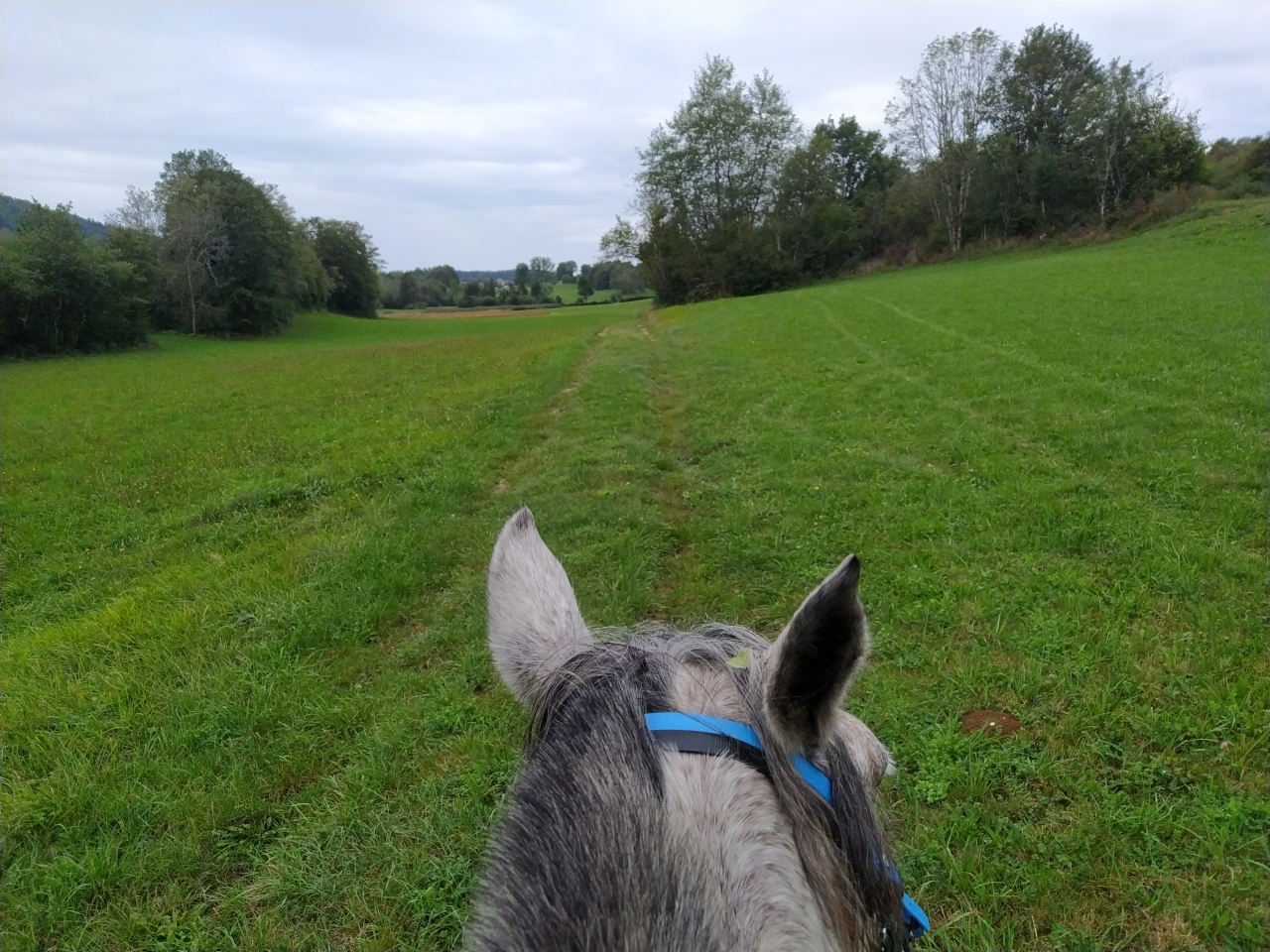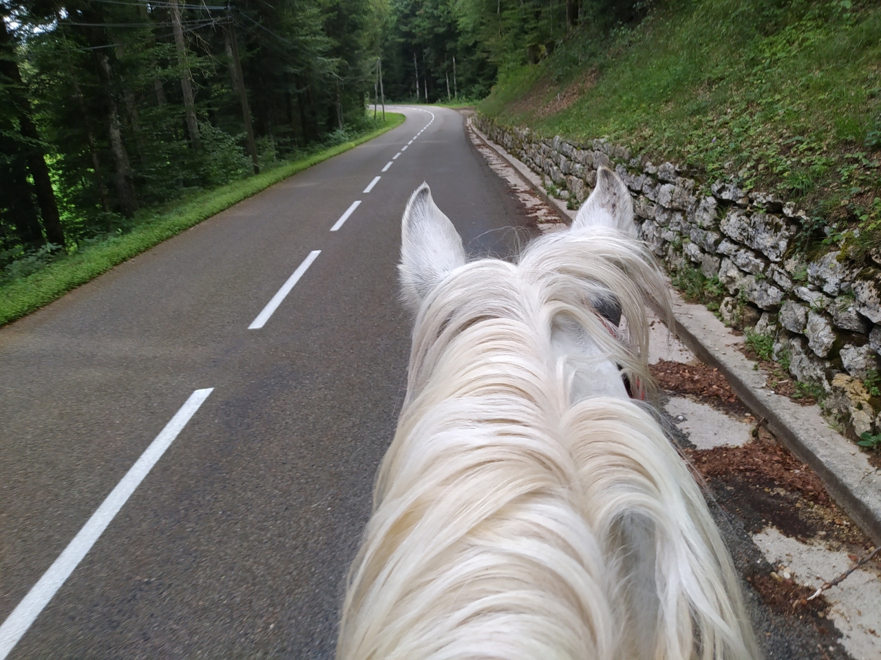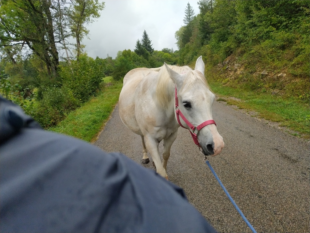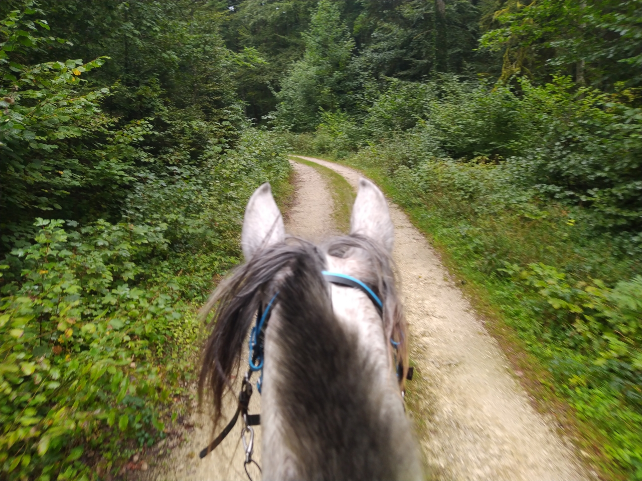 | Dire merci | Avec super poney, on prend la route normale et go go ![]() On quitte un peu la route ![]() ![]() ![]() On traverse le village du milieu au galop, le mien aussi, j arrive et... ah ben mes filles sont pas revenues des courses avec leur papa 😝 ![]() Quiara a eu chaud mais j ai pas eu beaucoup à pousser pour qu elle se prenne au jeu et fasse ses 12,5km en 1h |