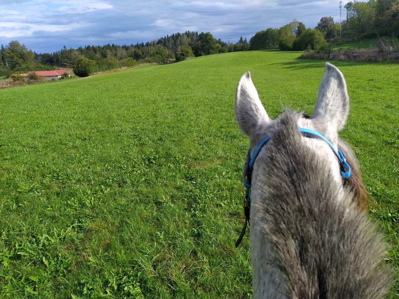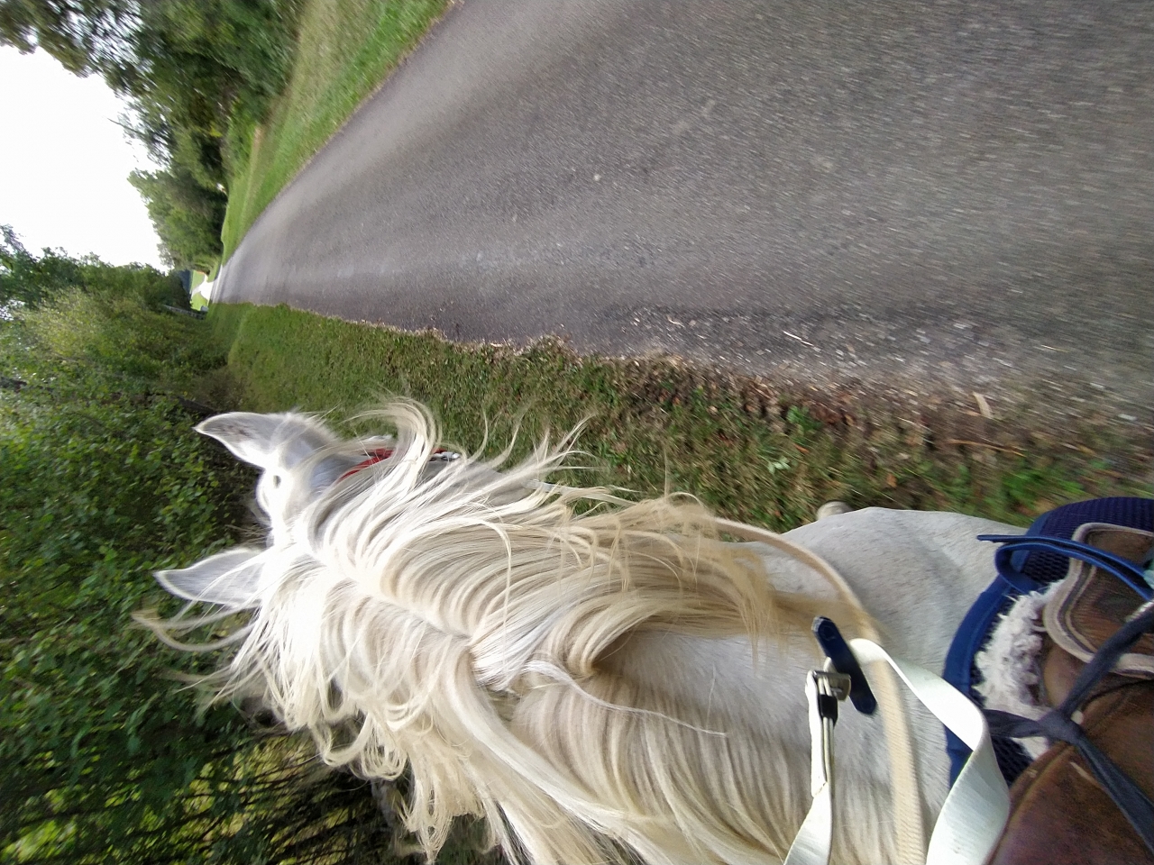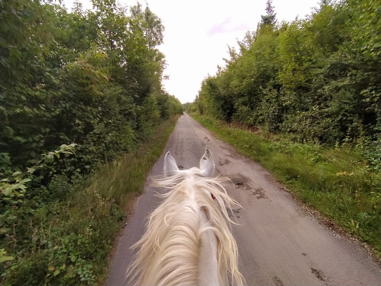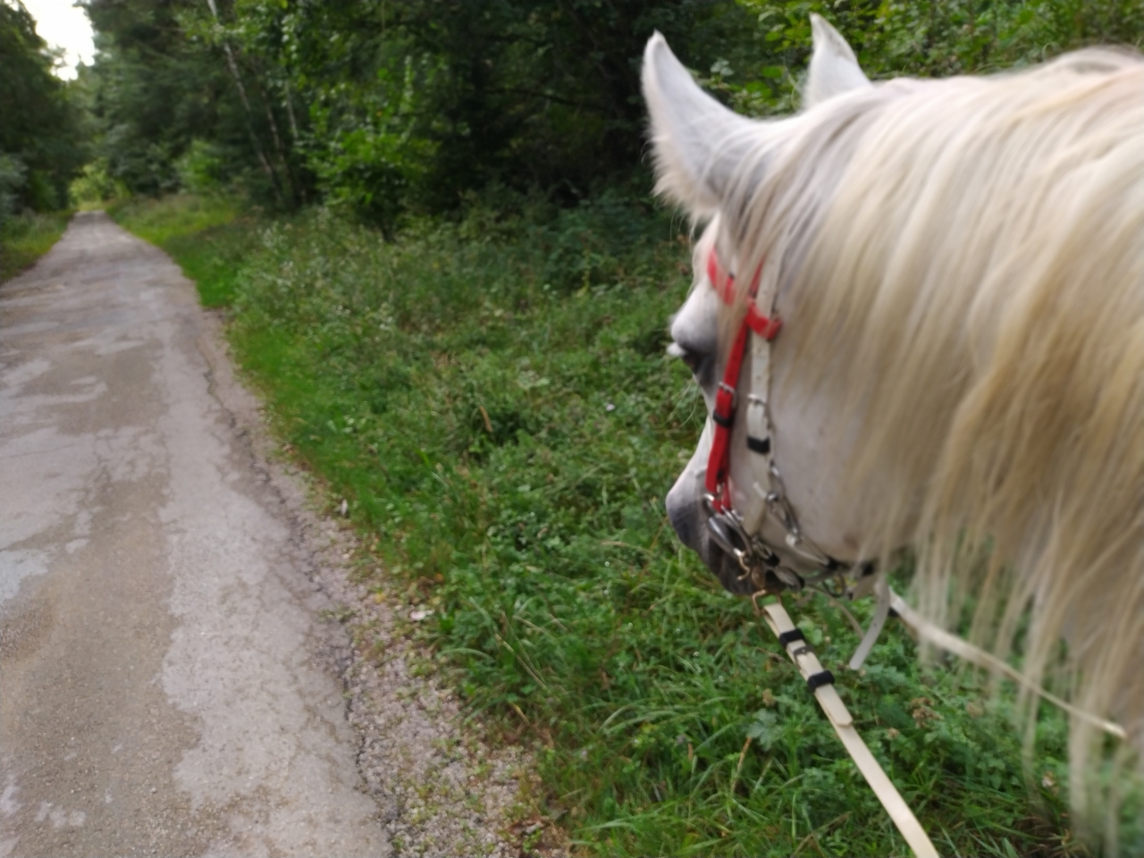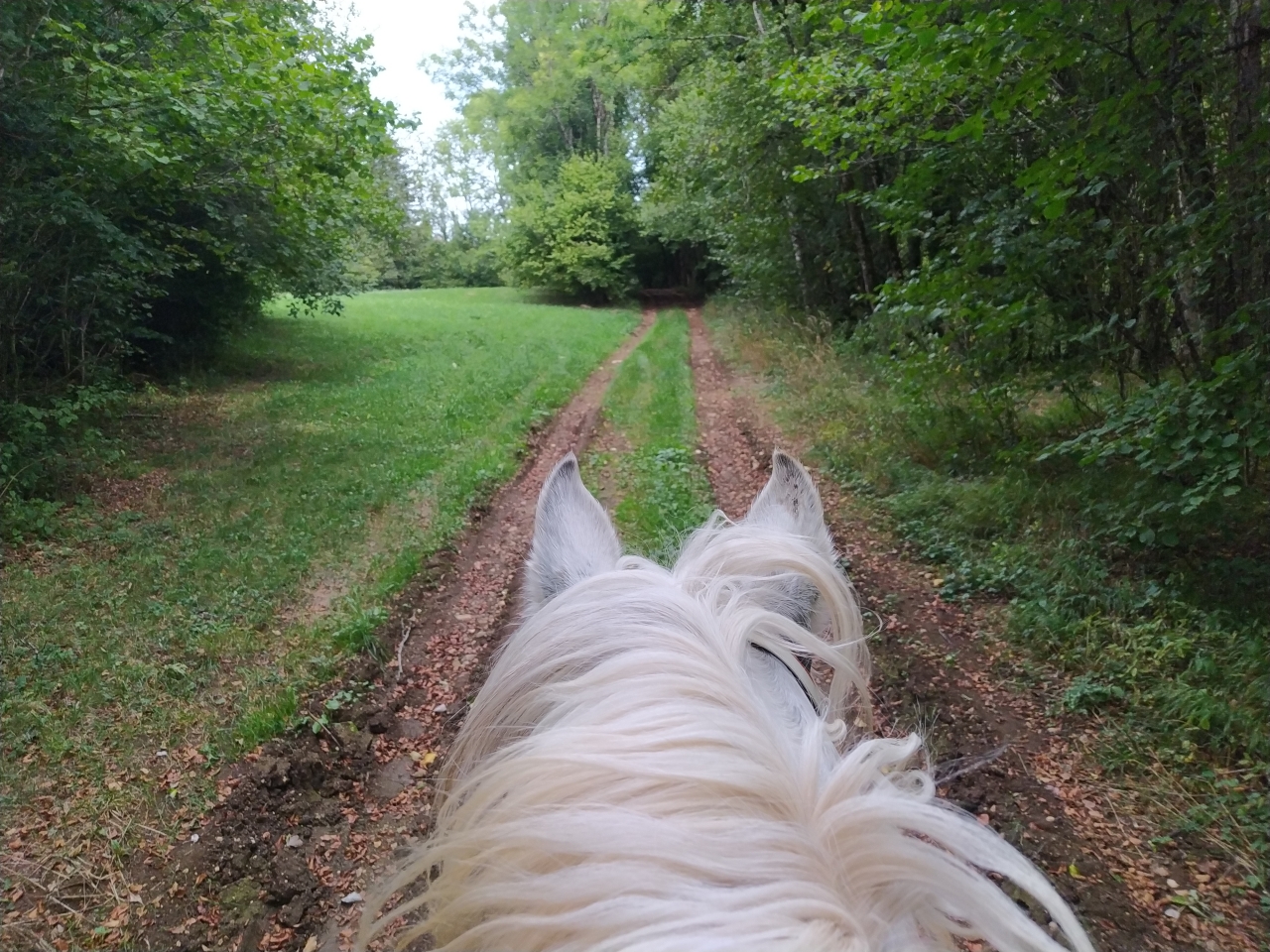 | Dire merci | Avec super poney, on prend la route normale et go go ![]() On quitte un peu la route ![]() ![]() ![]() On traverse le village du milieu au galop, le mien aussi, j arrive et... ah ben mes filles sont pas revenues des courses avec leur papa 😝 ![]() Quiara a eu chaud mais j ai pas eu beaucoup à pousser pour qu elle se prenne au jeu et fasse ses 12,5km en 1h |