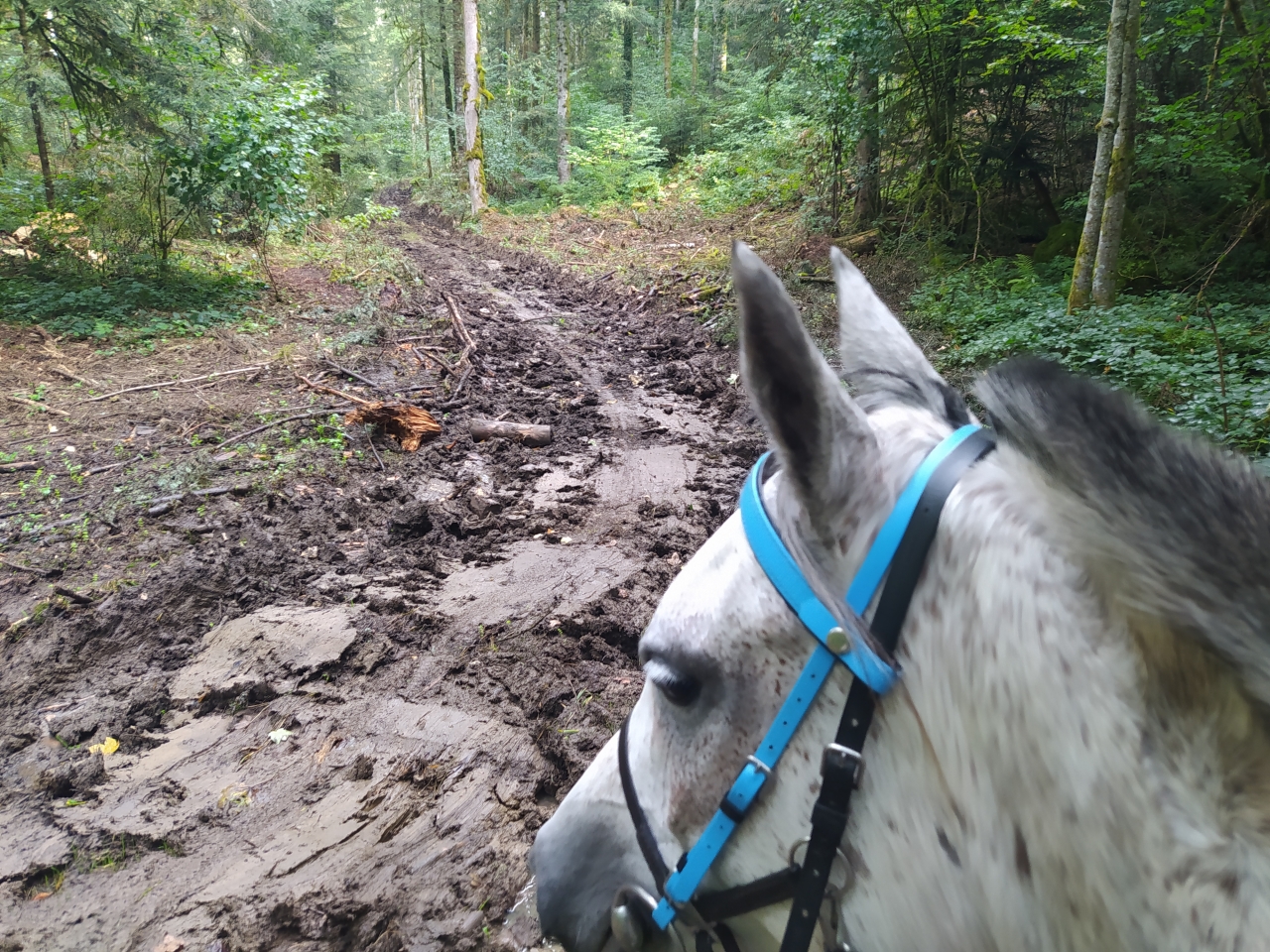 | Dire merci | et ce matin sortie avec Naska ![]() ![]() ![]() évidemment mon beau chemin a été bousillé ![]() ![]() demi tour et je remonte le chemin par un autre, parallèle, et me voici où je voulais être ![]() ![]() ![]() jument très allante, je me suis régalée bon j ai eu deux trois coups de jarnac mais bon, suis restée en selle ![]() ![]() et on rentre au bout de 20km en 1h38 ![]() |
