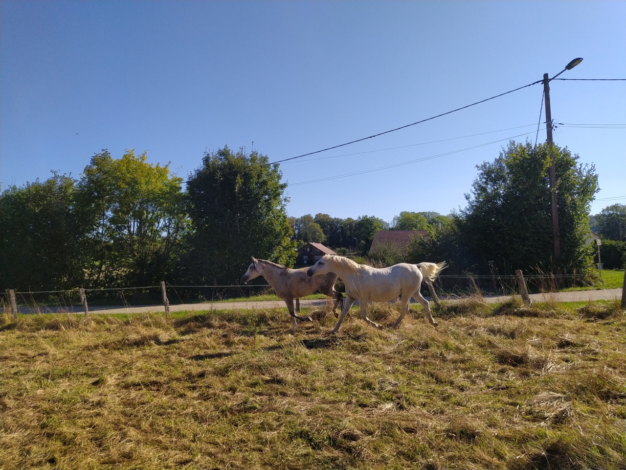 | Dire merci1 | Avant dernière page : injection d'immunothérapie pour Naska Dernière page : 1ere course de Qoumir 2006 Après avoir rencontré Iris qui me permit d'aller jusqu'en 160km en endurance...réalisation d'un rêve : une arabe...Quiara de la Loze que j'achète à ses 23 mois Nous apprenons beaucoup ensemble, elle me suit dans mes idées + ou - farfelues et me donne en retour sa confiance aveugle malgré son carafon de "poney arabe" mais à nous les rigolades, les grandes sorties, le trec et... l'endurance ! Juillet 2008, je vais voir une arabe russo-polonaise de 11ans, Nastassja de Pawi dite "Nati". Ce sera Elle, la nouvelle élue pour la réalisation d'un projet qui me tient à cœur : produire quelques poulains bons et beaux ! Elle nous offre un adorable poulain en 2010 : Nahym, qui partira rejoindre sa nouvelle famille en août 2011. Puis Nati s'offrira une jolie qualification en endurance sur 130km en avant de prendre sa retraite sportive. 2012 : Nati part en location poulinage et Djati naît en mars 2013, au sevrage de celle ci, fin septembre 2013, Nati rentre à la maison ! 2014 : Nati retourne à la saillie début mai pendant que Quiara reprend le chemin des courses après l'année précédente maudite où la perte de son bout de queue puis des soucis de selle nous ont gâché la saison... 2015 : Quiara se blesse au parc, on dit aurevoir à nos rêves de courses d'endurance et petite Naska arrive le 16 avril après pile 11 mois et 11j de gestation. 2016 : Nati retourne en contrat poulinage Quiara fait son retour en course en gagnant la 1ère course à laquelle elle participe avec Deydou39 : une 80vl fin mars puis fin juin elle doit être mise au repos, la saison de course est encore stoppée cette année pour nous ![]() 2017: Nati a pouliné d'une pouliche : Hadjira. Elle rentre en novembre à la maison et Quiara fait 130km seule au monde avec moi en course, oublié son accident qui failli lui couter son antérieur ! 2018 : Naska correspond tout à fait à ce que je voulais comme relève. Nati fait de la prom prom et Quiara après avoir gagné sa 1ère course de la saison qui devait nous ouvrir les portes de notre 160 se blesse et se fait une desmite... ![]() Fin 2018 : La boucle est bouclée, Nati retourne dans son élevage afin d'offrir la relève de sa lignée à son naisseur. mais en 2020 perd la vie à la naissance de Nasdrovia. Naska reprend tranquillement le chemin des sorties et Quiara va à la saillie .... Naska obtient sa première qualification en endurance sur 20km puis sur 40km. 2021 Naska se requalifie sur 40km puis 2 fois sur 60km & Qoumir (fils de Quiara et de Ofir al Hfifa) fait son arrivée parmi nous, un grand mâle gris timide et malicieux à souhait ![]() 2022 Naska commence l'année avec une cyatosmose larvaire mal traitée et diagnostiquée... on pense la perdre mais grâce à de précieux conseils venus du forum, elle remonte la pente et gagne en juillet sa première 80km (87km en réel) à notre grande surprise ! Qoumir part dans sa nouvelle famille en avril et Quiara est remise à la saillie mais elle ne prendra pas...En novembre, Naska obtiendra sa 2ème qualification sur 80km, une course technique où elle ne déméritera pas 2023 : la saison d'endu se prépare pour Naska et nouveau et dernier prétendant pour Quiara qui nous fait tourner encore en bourrique pour ne pas prendre... 2024 : après un début d'année sympa avec qq cso Quiara se fait une atteinte de la bride carpienne et du suspenseur en faisant la con au parc... elle reprend le boulot tranquillement mi aout après 5 mois de repos Naska continue les sorties après avoir été mise en pause par la fédé d'endurance suite à ses 3 éliminations consécutives pour boiterie, n'ayant rien nul part, on suspecte de fortes douleurs ovariennes qui la feraient boiter.. 2025 il aura fallu retenir 4 prétendants pour n'en avoir qu'un pour Quiara cette année, affaire à suivre, c'est la der des der... Naska se fait opérer en janvier d'un sarcoïde mal placé et reprend l'entrainement, on espère résoudre ses irrégularités d'allure par la suppression des chaleurs. Juillet 2025 : Naska m offre sa deuxième qualification sur 100km et enchaîne une immunothérapie pour une tumeur sous la paupière Quiara me fait à nouveau la joie d être pleine pour mi mai 2026 ❤️ Message édité le 30/09/25 à 20:13 Message édité le 18/11/25 à 14:53 |