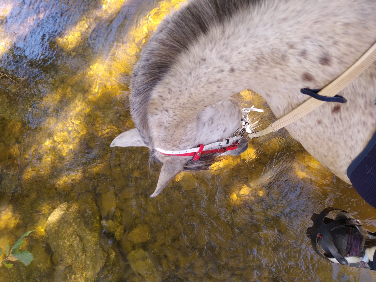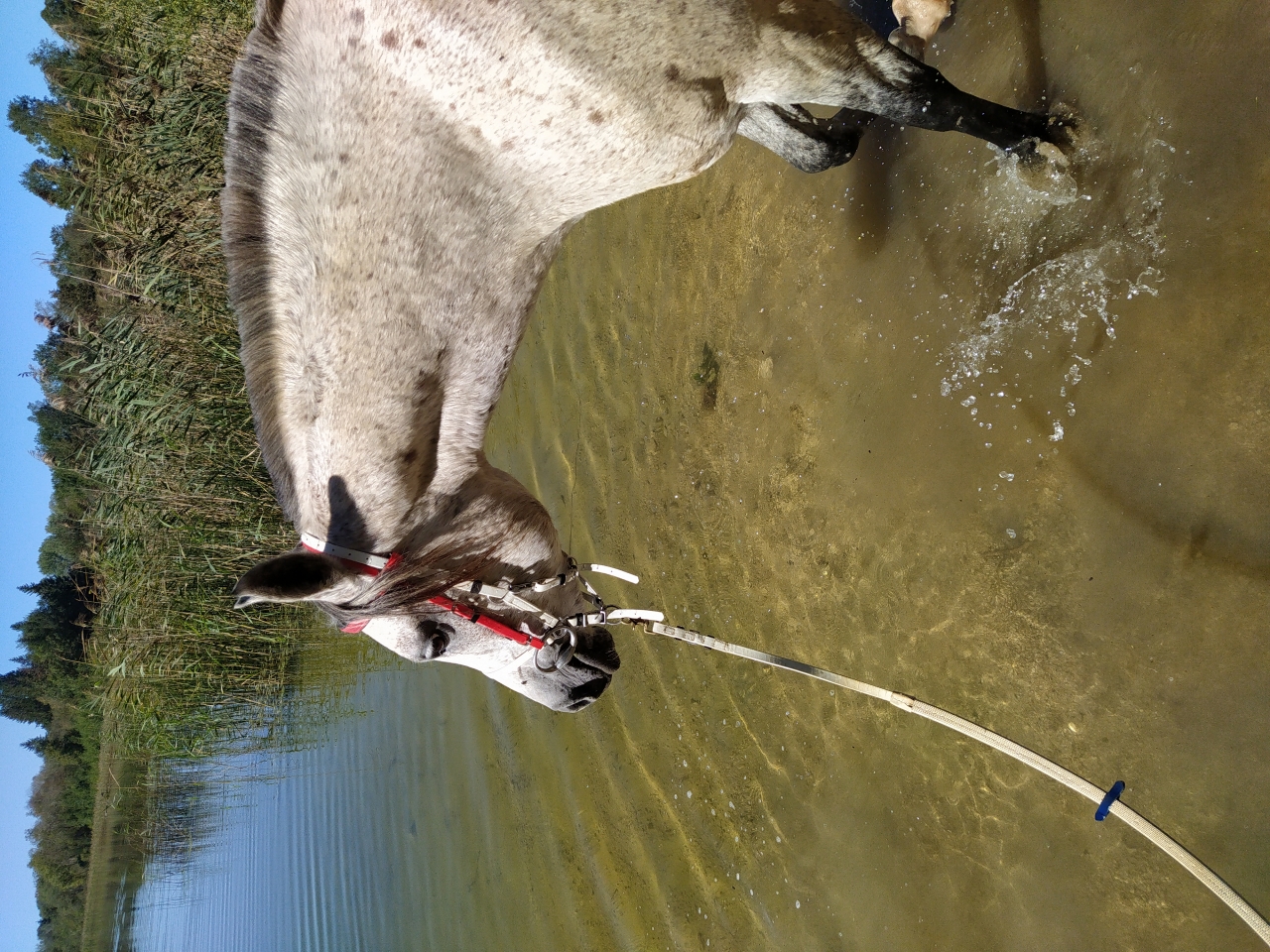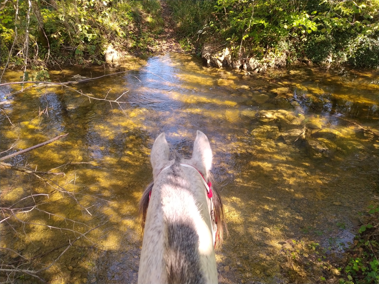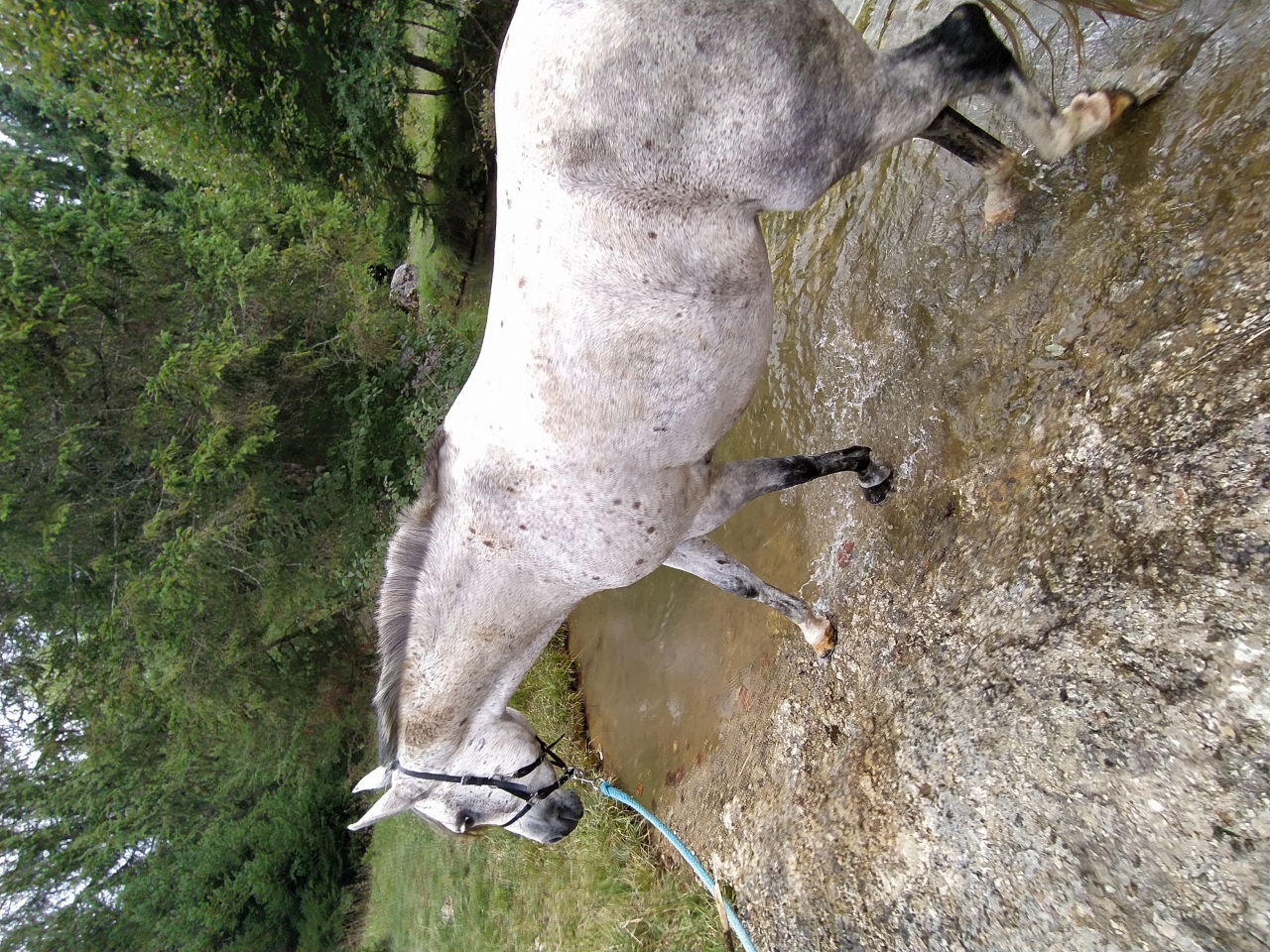 | Dire merci | ![]() Pause gué ![]() ![]() ![]() Pause ruisseau ![]() Et on rentre au bout de 10km ![]() J ai un mal de dos affreux suite à ses couillonades de samedi dernier du coup peu de trot et de galop mais elle semble bien droite |