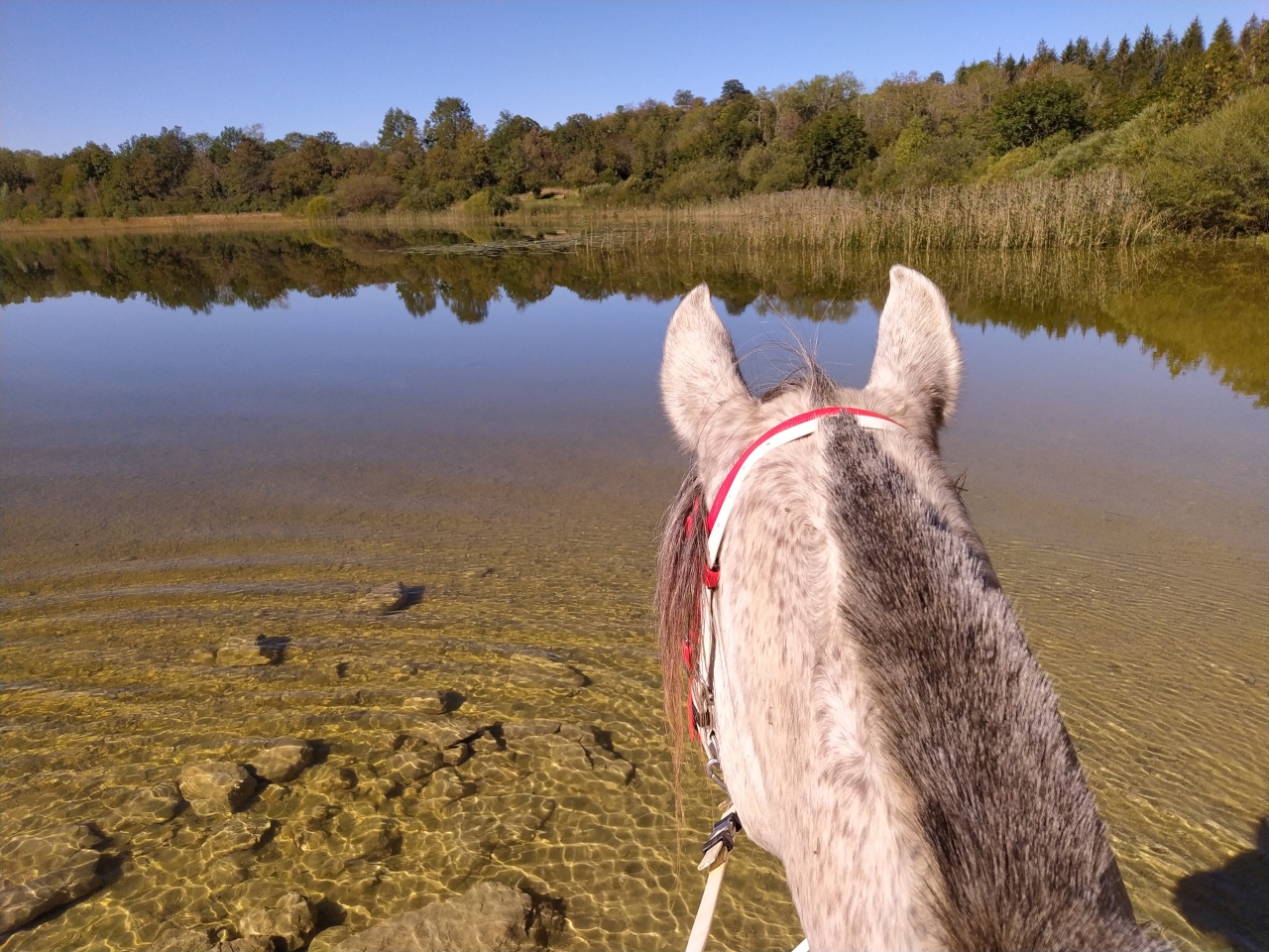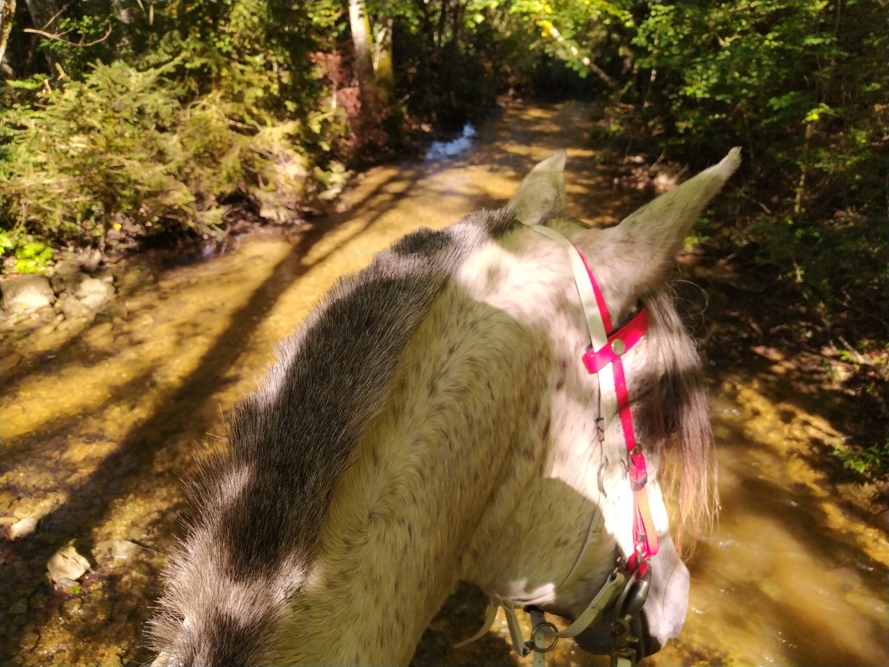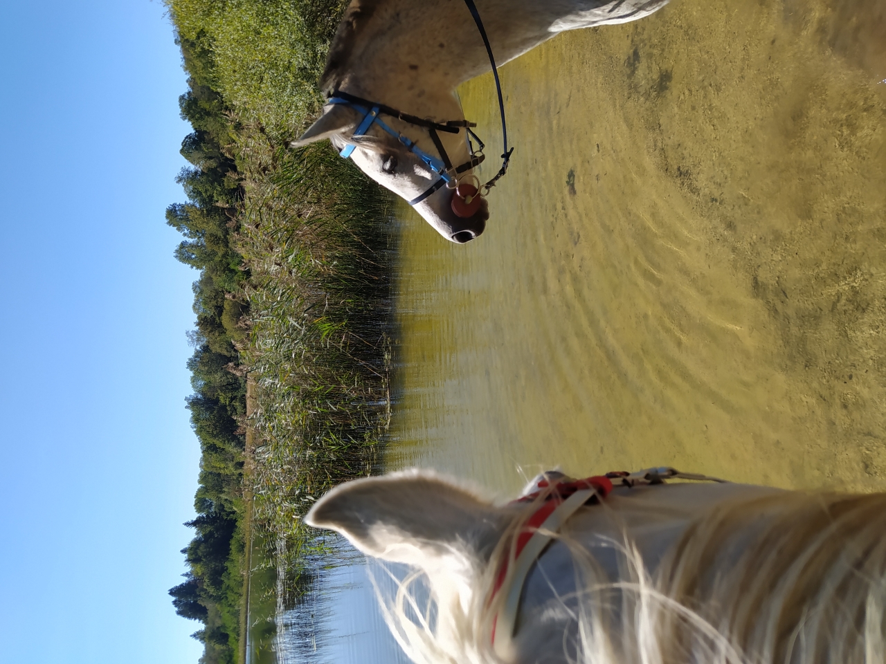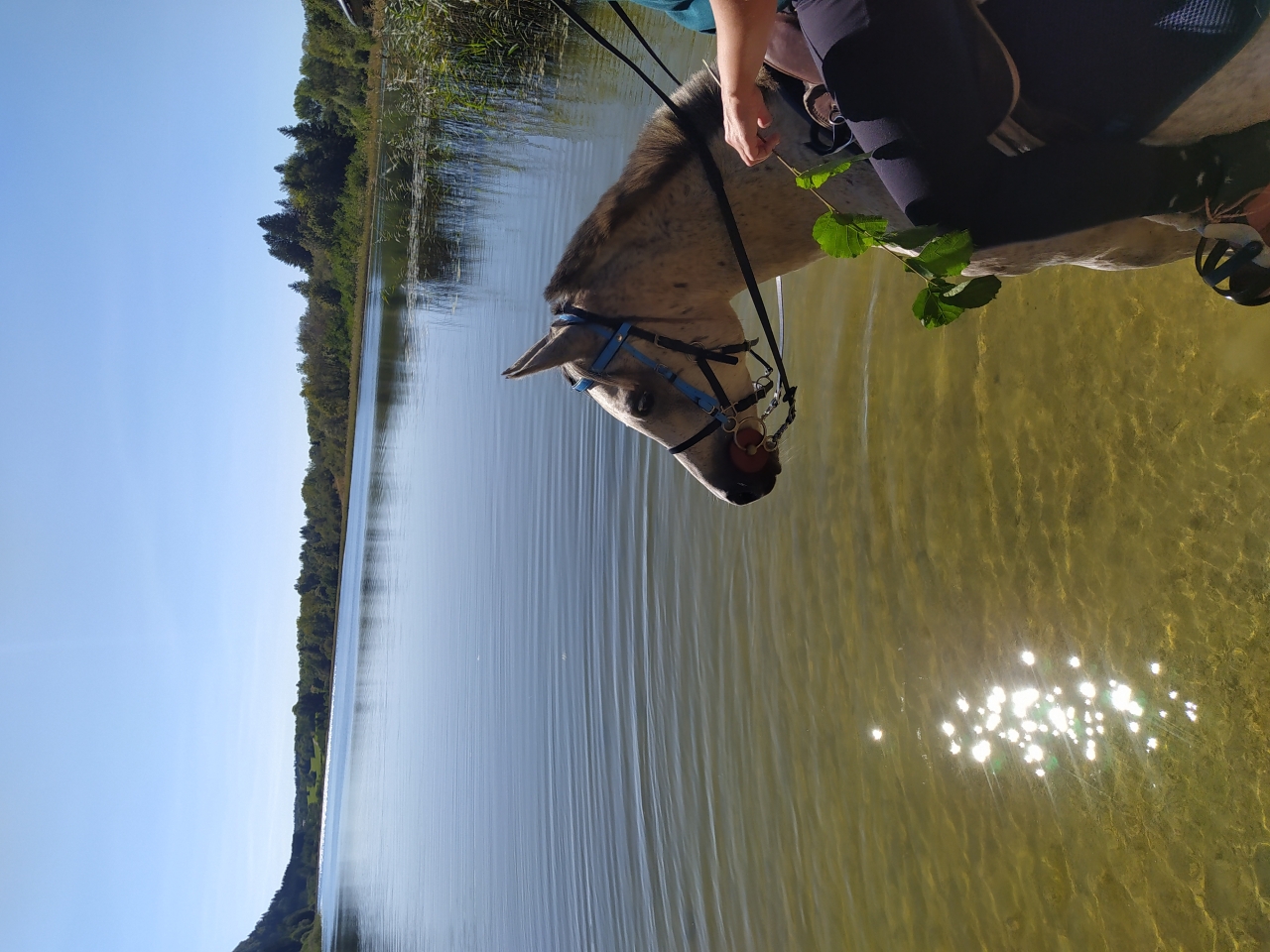 | Dire merci | ![]() Pause gué ![]() ![]() ![]() Pause ruisseau ![]() Et on rentre au bout de 10km ![]() J ai un mal de dos affreux suite à ses couillonades de samedi dernier du coup peu de trot et de galop mais elle semble bien droite |