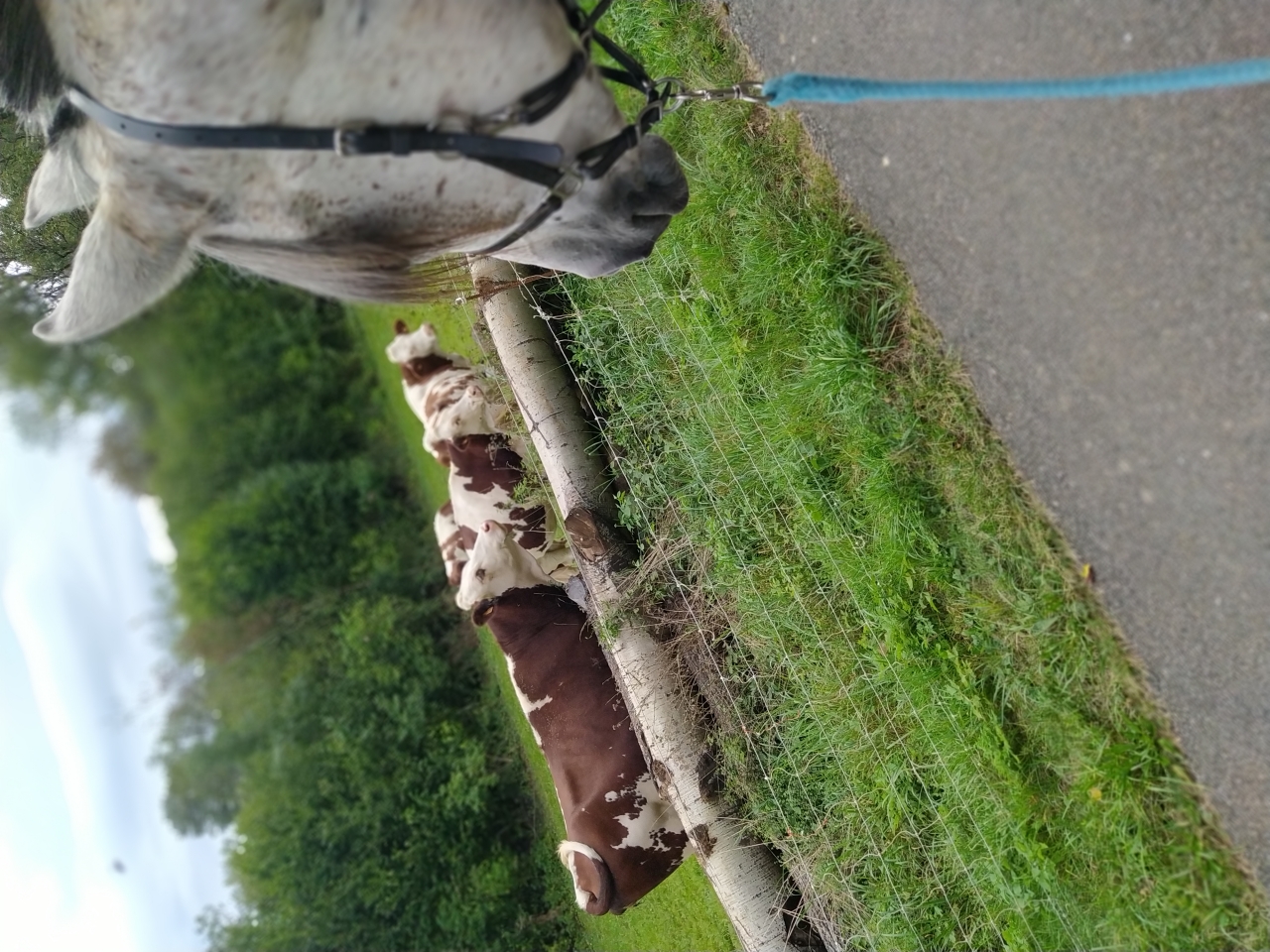 | Dire merci | donc oui le coup de la voiture c'est quand elle a eu peur de ses rênes qui sont passées par dessus sa tête pendant que M cherchait un truc dans sa voiture avant de partir en entrainement... du coup elle a tiré au renard, M a lâché les rênes et la couenne a sauté dans tous les sens jusqu'à aller dans la voiture oui elle est mignonne ![]() |