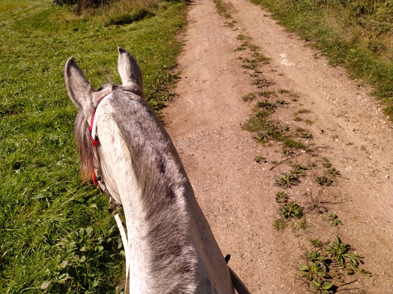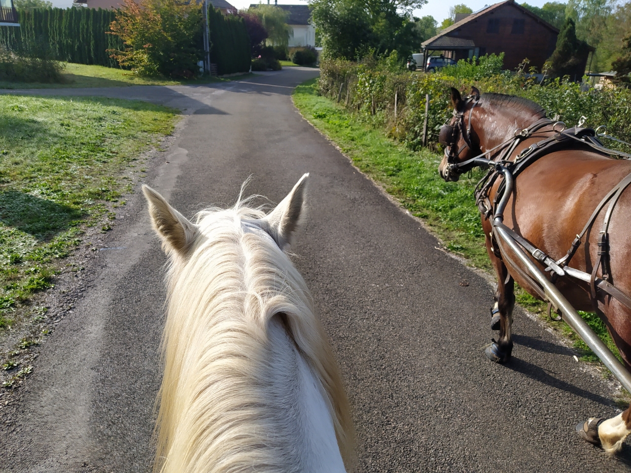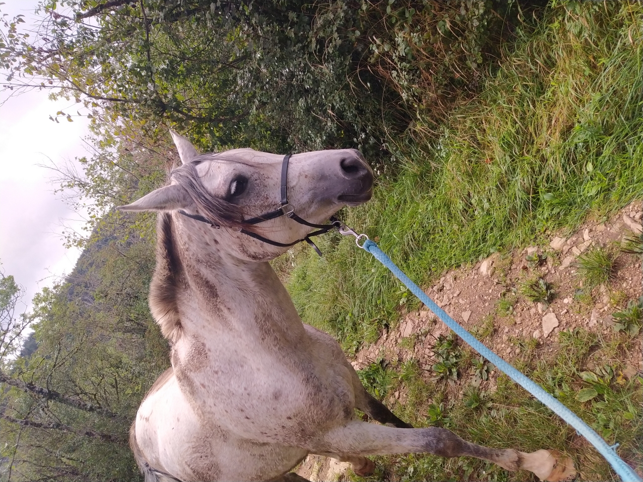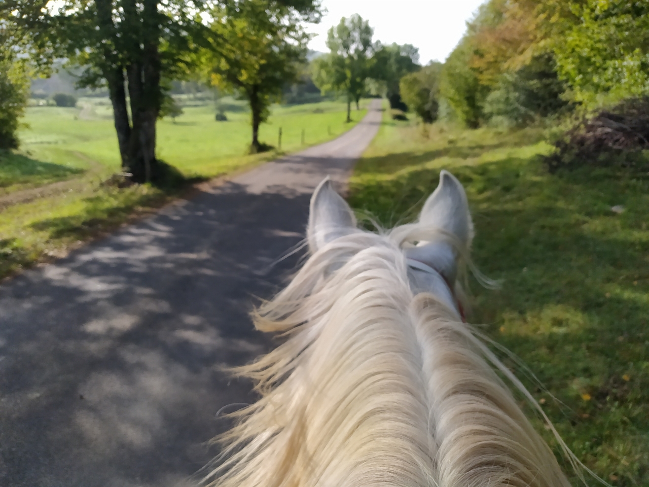 | Dire merci | Bof j ai pas l impression de faire grand chose Hier M est venue embarquer Naska pour la travailler un peu sur piste puis s amuser dans les bois de Saône et Loire. C est sa maman G qui montait Naska alors que M montait sa jument. Une bonne expérience pour Naska : monter dans un van où il y a un cheval inconnu, le travail sur piste à deux, une nouvelle cavalière qui l a adoré... Bref 22km en 1h20 ![]() |
