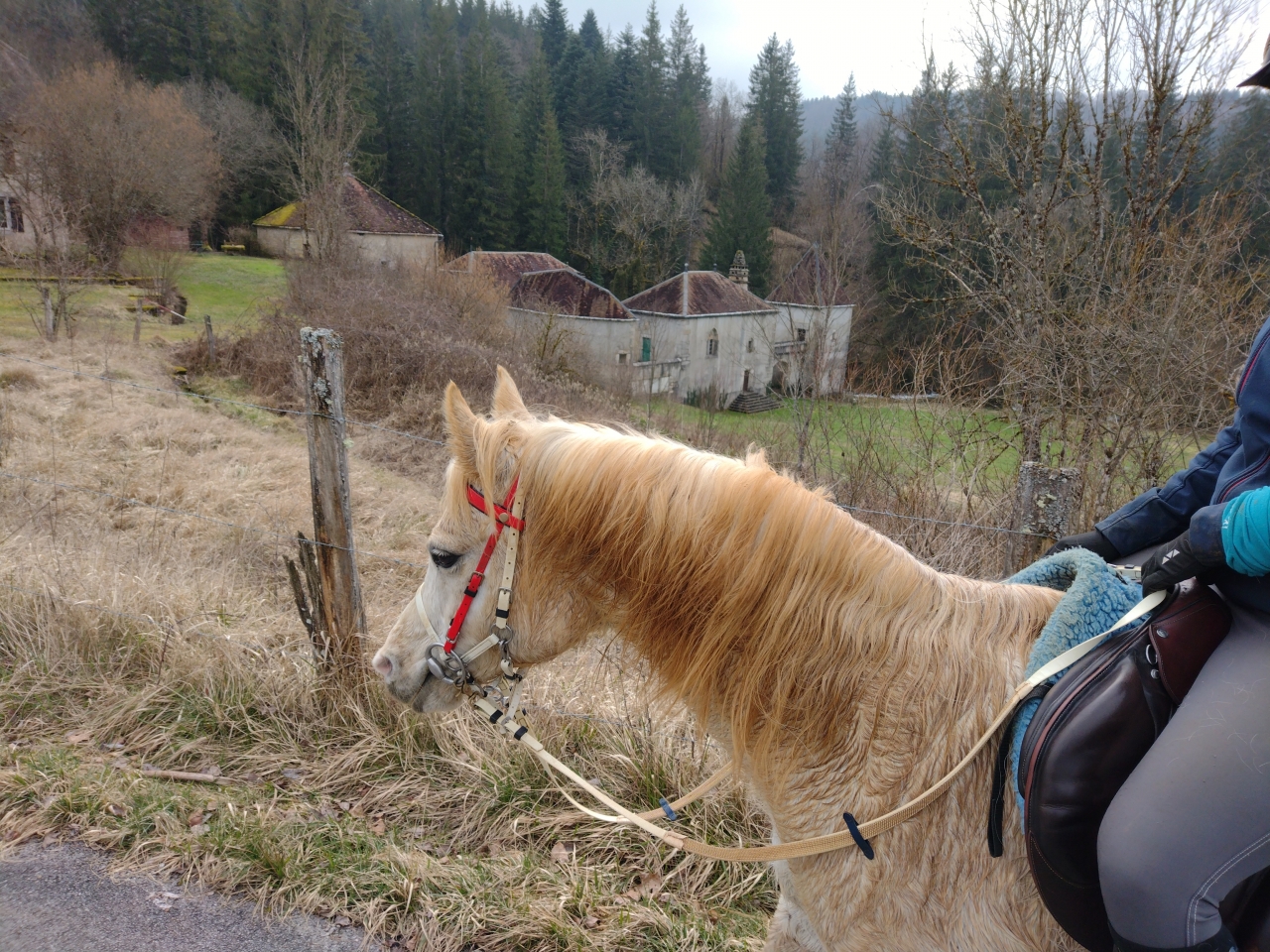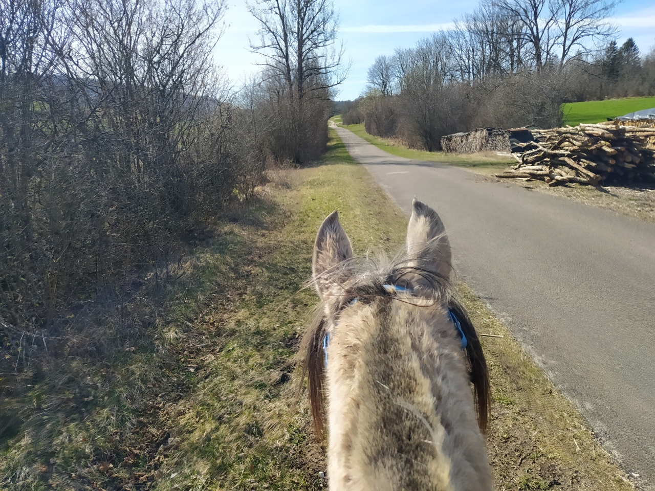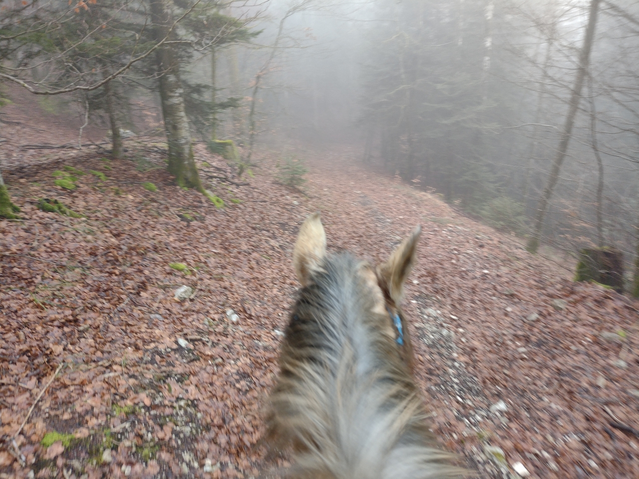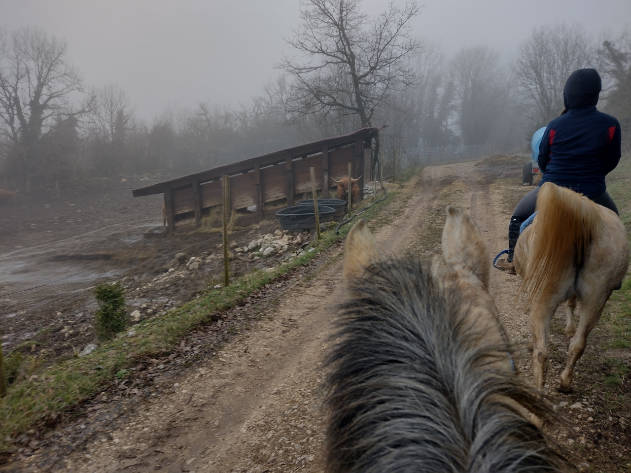 | Dire merci | donc ce matin, M était dispo donc après que Quiara ait fait la dinde 15mn en nous narguant au galop dans le parc, on a prend les deux grisettes et zou, on part sur une bonne boucle ![]() il y a une brume de fou, plus on avance, moins on y voit ![]() ![]() on passe la montagne pour aller sur le plateau du bas, mes anciens terrains de jeux avec Iris ![]() on découvre des Higlands, trop mimis mais un veau caché derrière l'abri et Naska se font peur mutuellement, ce qui me vaudra un joli écart mdr ![]() ![]() on traverse le village suivant puis on descend sur le moulin de La Fraite ![]() ![]() on passe devant le moulin de la Fraite ![]() |