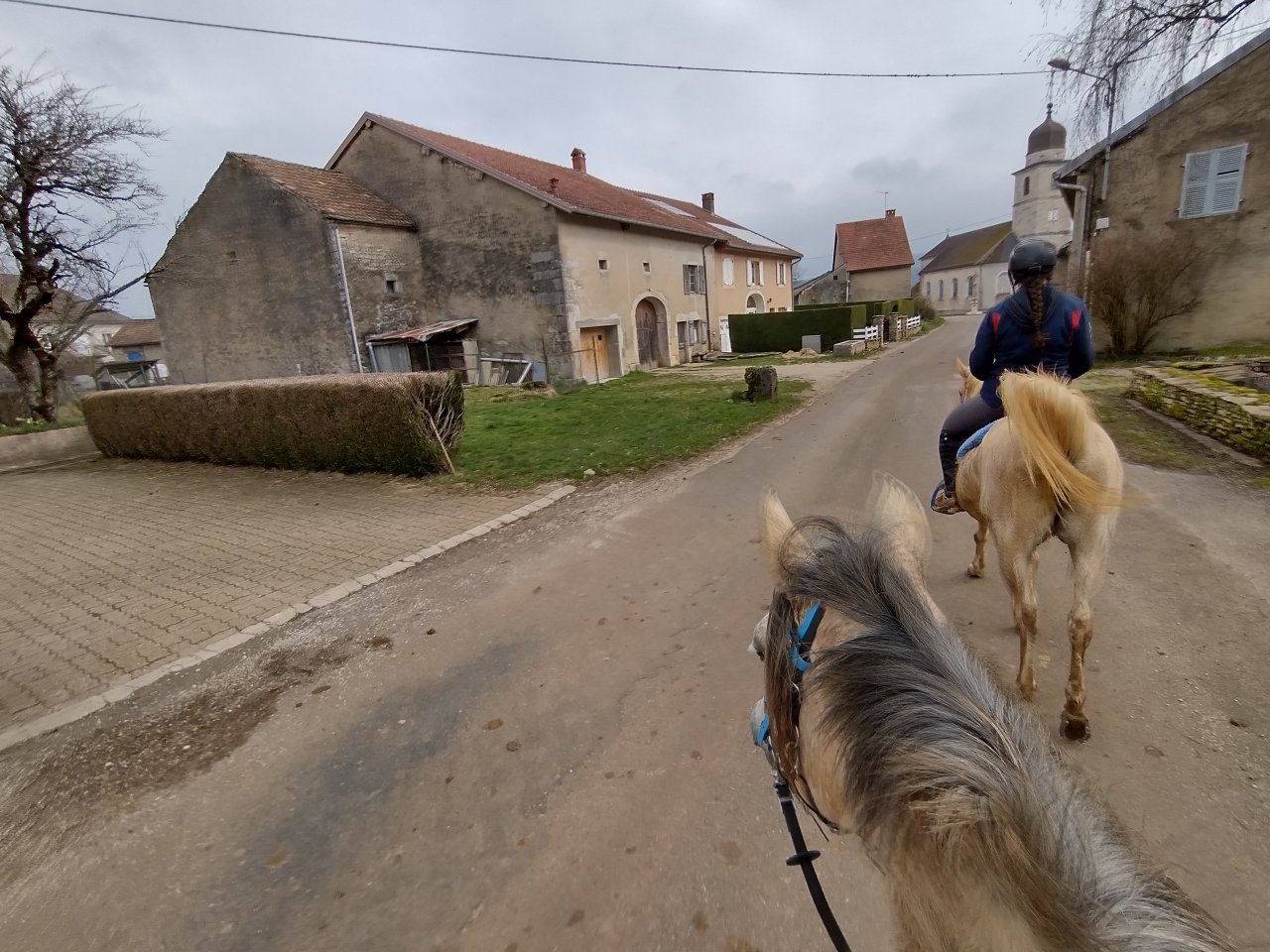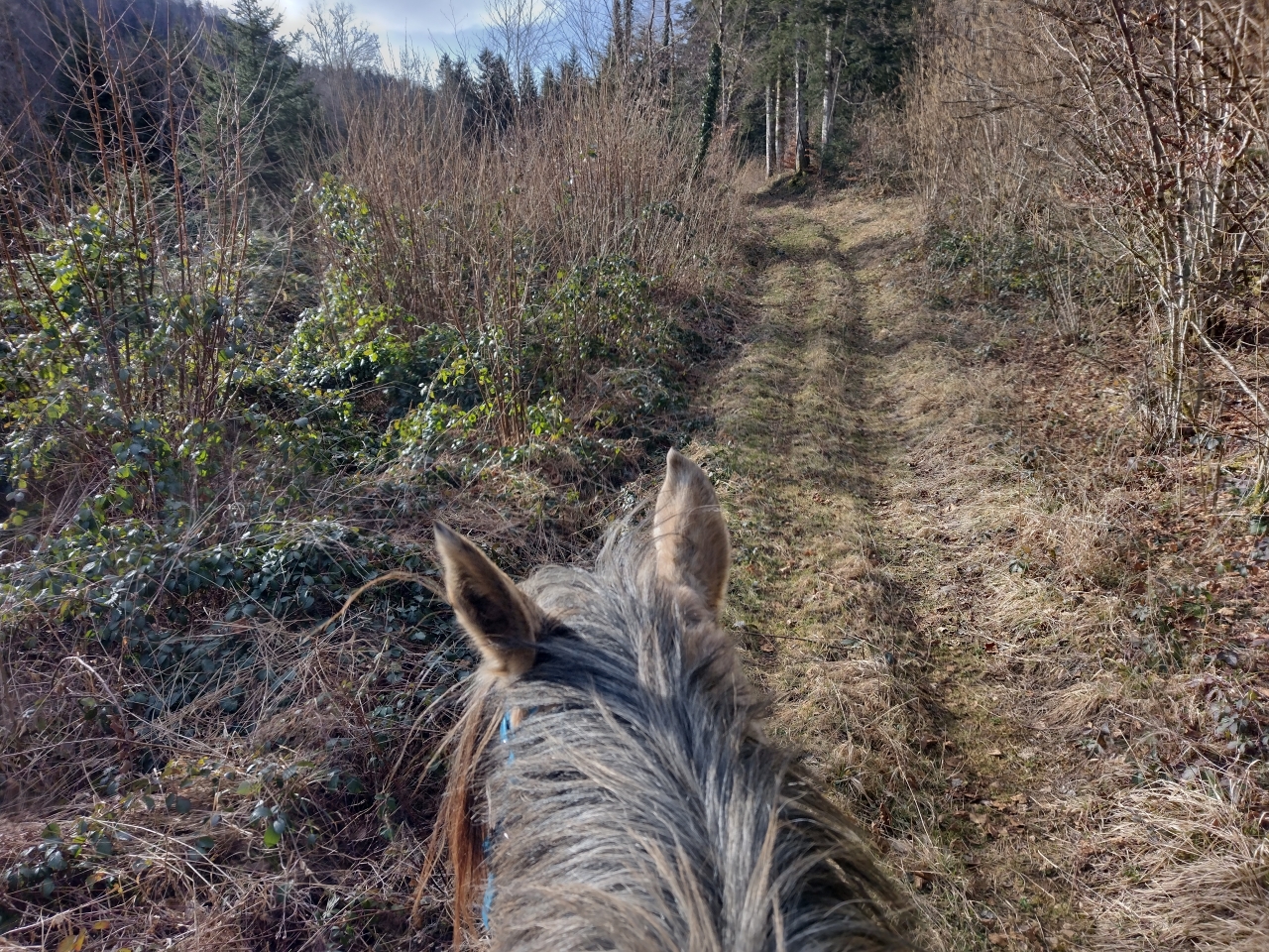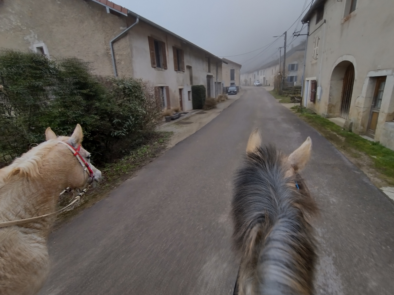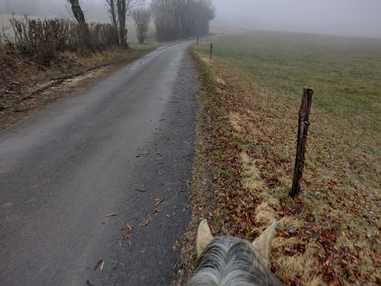 | Dire merci | donc ce matin, M était dispo donc après que Quiara ait fait la dinde 15mn en nous narguant au galop dans le parc, on a prend les deux grisettes et zou, on part sur une bonne boucle ![]() il y a une brume de fou, plus on avance, moins on y voit ![]() ![]() on passe la montagne pour aller sur le plateau du bas, mes anciens terrains de jeux avec Iris ![]() on découvre des Higlands, trop mimis mais un veau caché derrière l'abri et Naska se font peur mutuellement, ce qui me vaudra un joli écart mdr ![]() ![]() on traverse le village suivant puis on descend sur le moulin de La Fraite ![]() ![]() on passe devant le moulin de la Fraite ![]() |