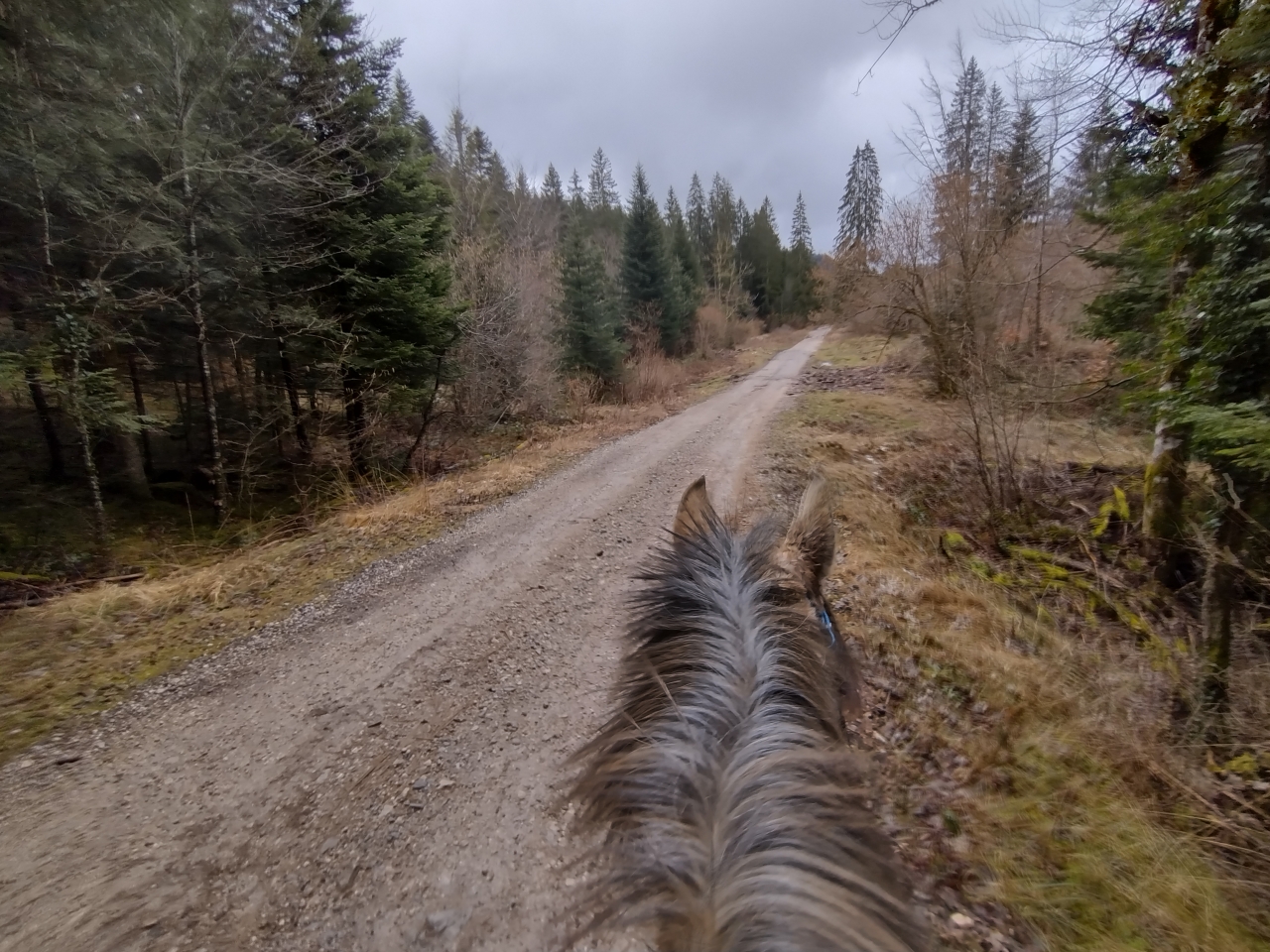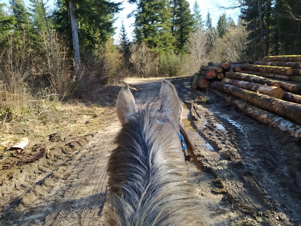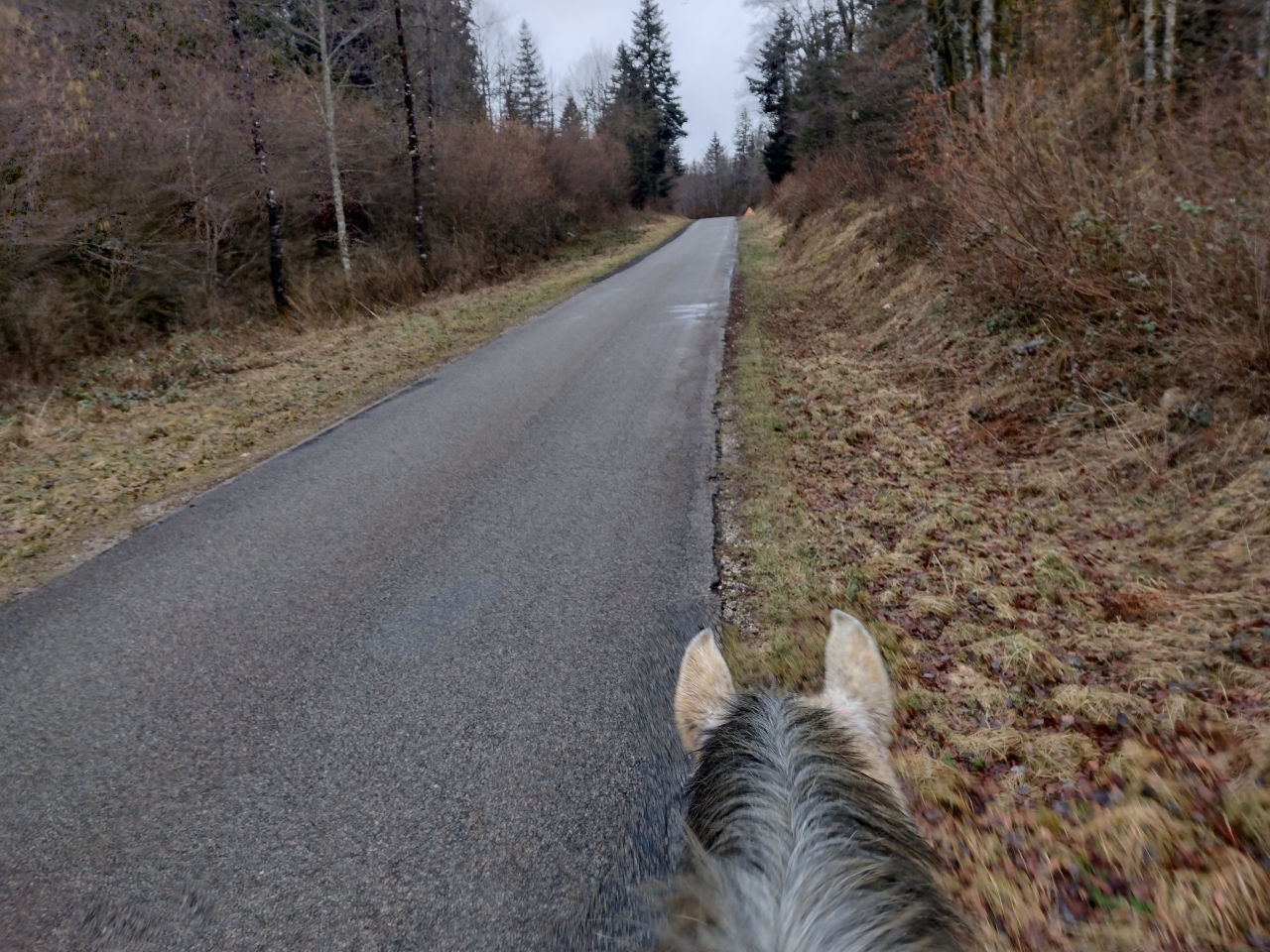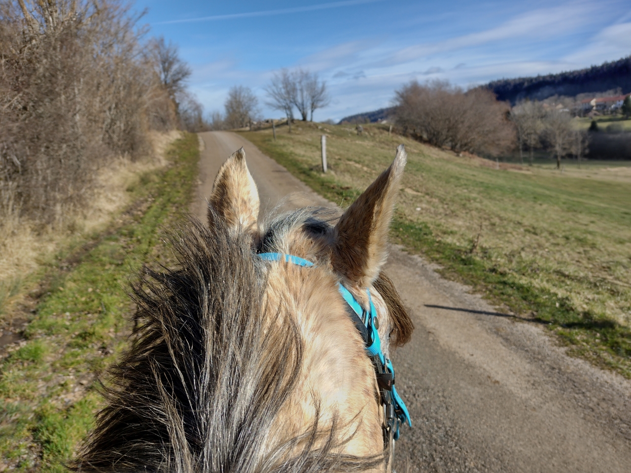 | Dire merci | donc ce matin, M était dispo donc après que Quiara ait fait la dinde 15mn en nous narguant au galop dans le parc, on a prend les deux grisettes et zou, on part sur une bonne boucle ![]() il y a une brume de fou, plus on avance, moins on y voit ![]() ![]() on passe la montagne pour aller sur le plateau du bas, mes anciens terrains de jeux avec Iris ![]() on découvre des Higlands, trop mimis mais un veau caché derrière l'abri et Naska se font peur mutuellement, ce qui me vaudra un joli écart mdr ![]() ![]() on traverse le village suivant puis on descend sur le moulin de La Fraite ![]() ![]() on passe devant le moulin de la Fraite ![]() |