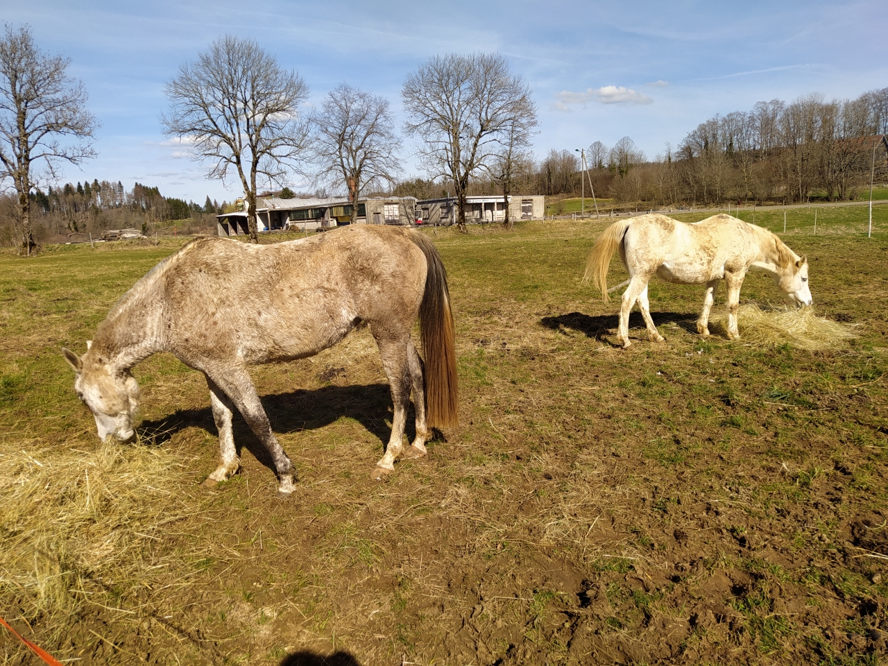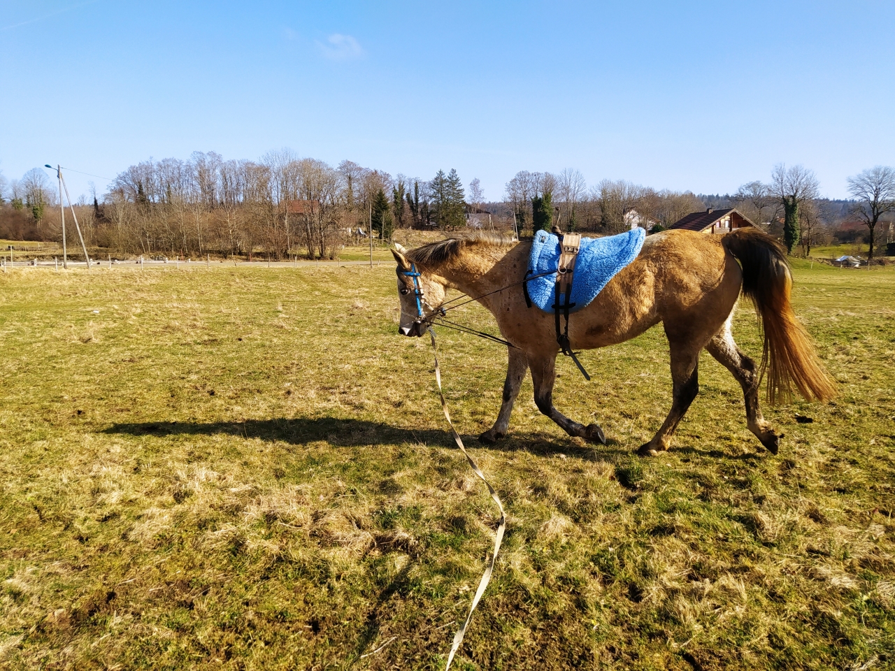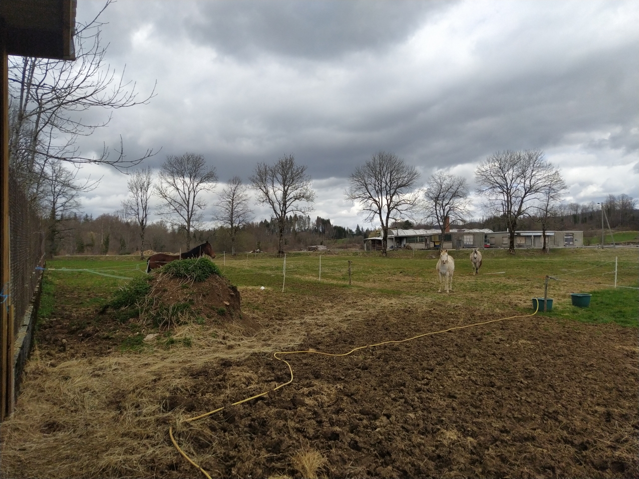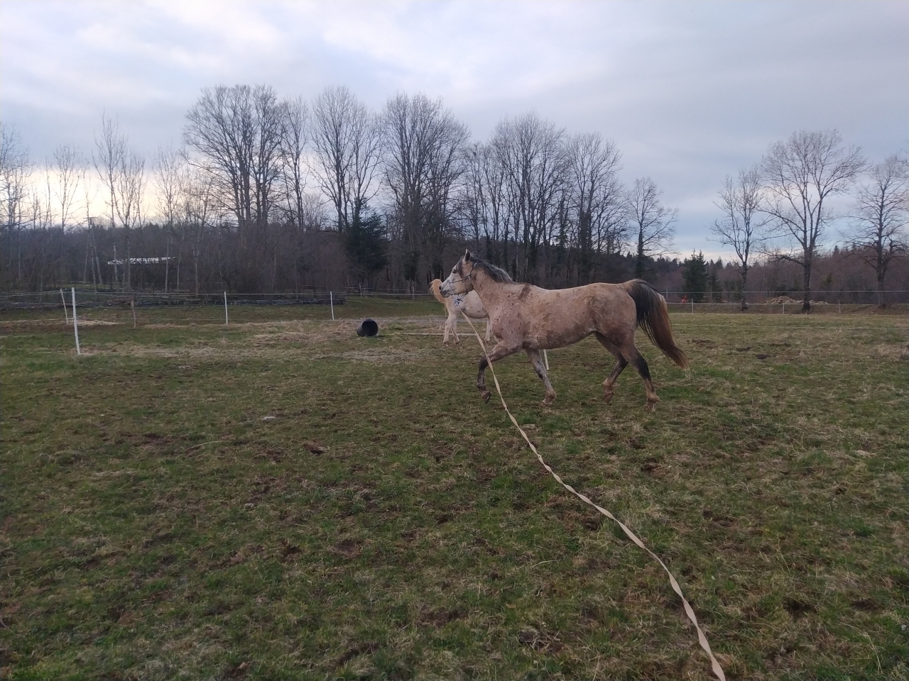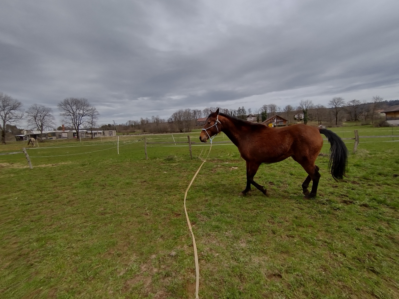 | Dire merci | Lundi Bon ben allez, c'est parti pour une (re)mise au boulot la miss a été débourrée gentiment l'an dernier puis remise au pré et en gros pas trop retouchée depuis octobre-novembre ![]() je décide d'une longe devant mes anciens boxs, c'est réduit ca permettra de canaliser ca se passe pas trop mal ![]() la barre au sol l'interpelle un peu ![]() elle a un joli mouvement ![]() ![]() mais... |