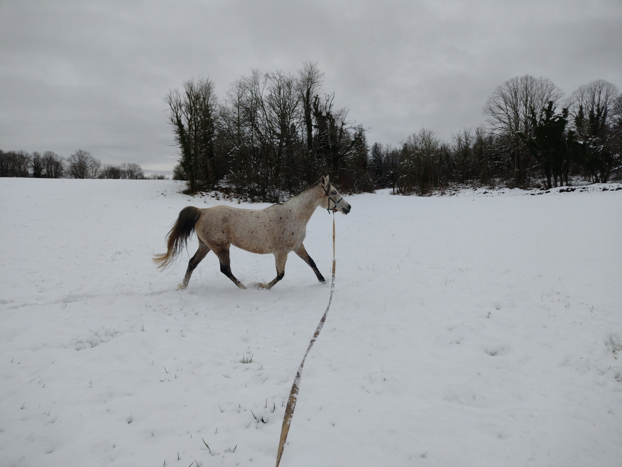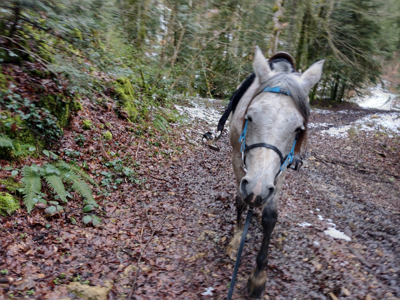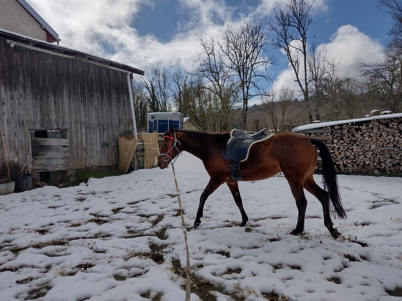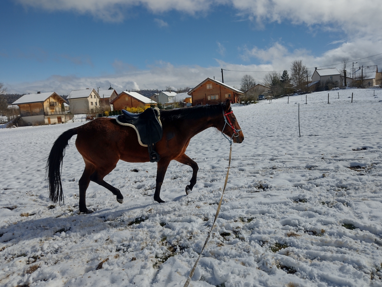 | Dire merci | puis cet aprèm au tour de miss Java![]() impecc, elle n'a bronché sur rien on a fait quelques flexions sur le mors avant de commencer et elle n'a pas chercher la sortie ![]() du coup je vais longer dans plus grand car bonjour la bouillasse avec cette neige pleine de flotte qui fond ![]() ![]() |