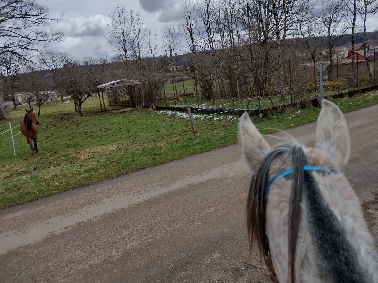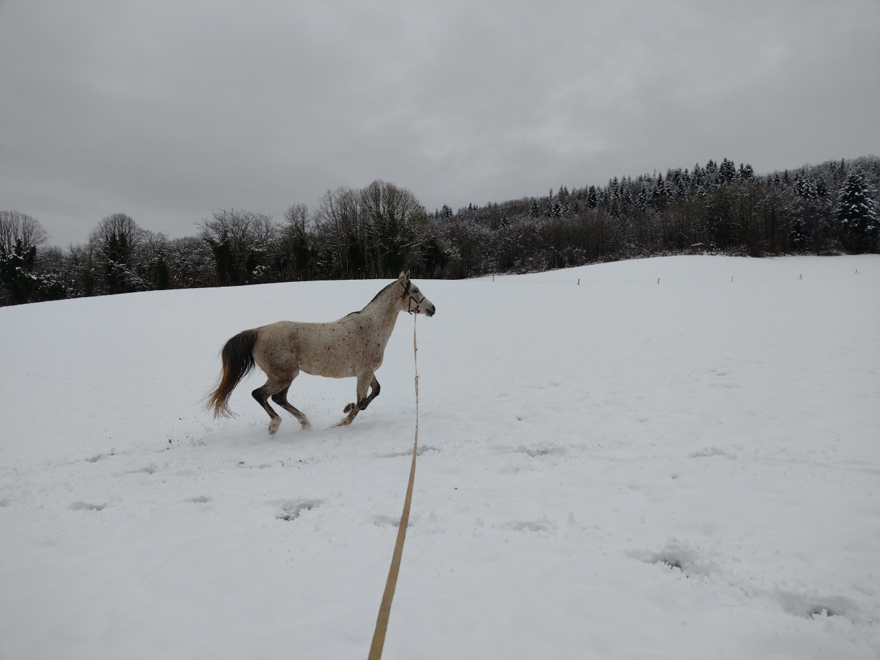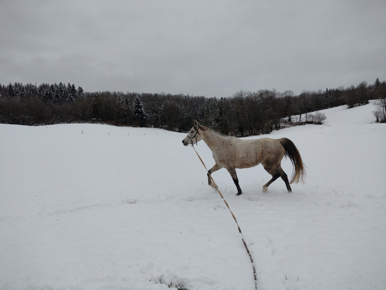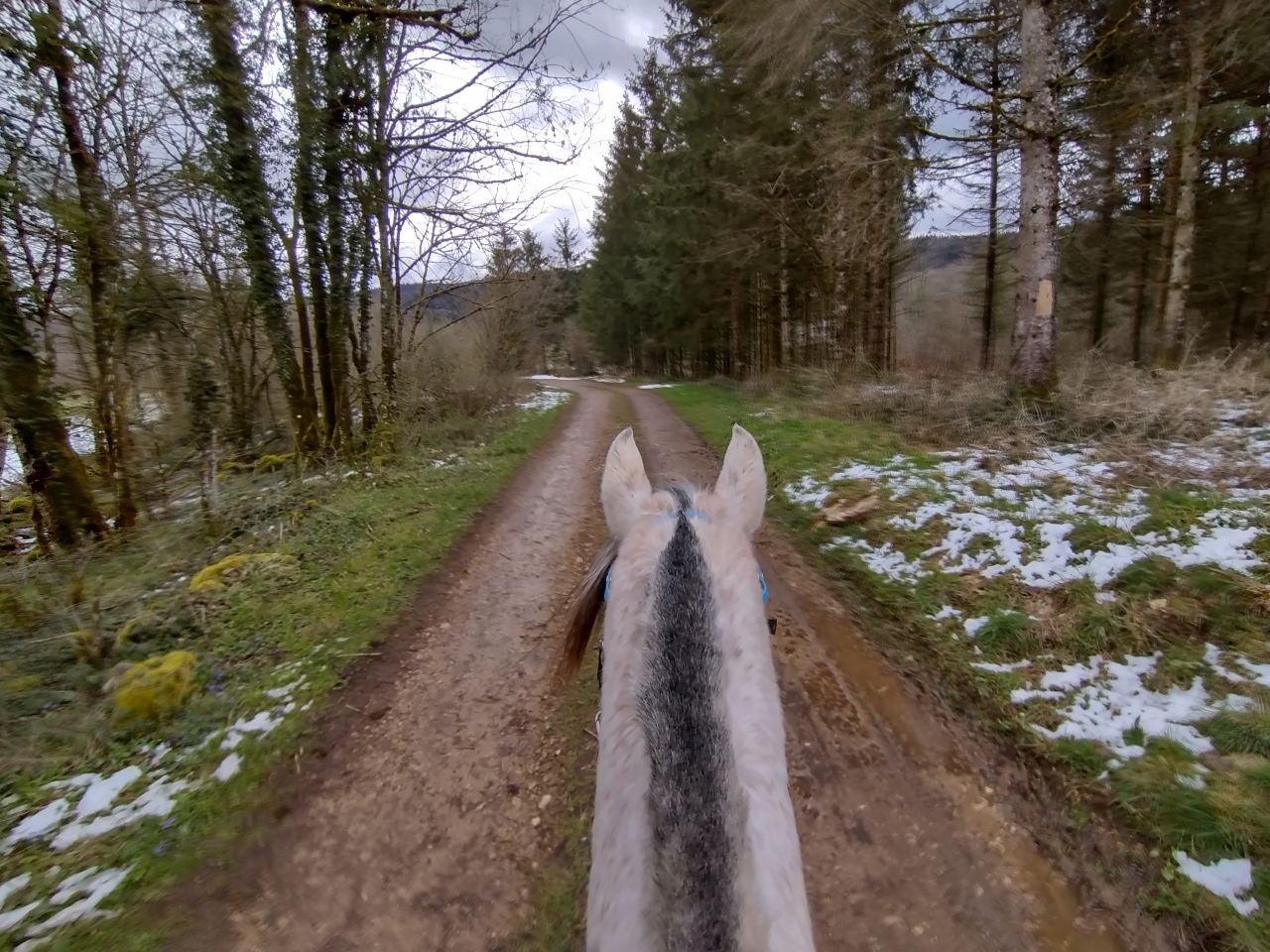 | Dire merci | puis cet aprèm au tour de miss Java![]() impecc, elle n'a bronché sur rien on a fait quelques flexions sur le mors avant de commencer et elle n'a pas chercher la sortie ![]() du coup je vais longer dans plus grand car bonjour la bouillasse avec cette neige pleine de flotte qui fond ![]() ![]() |
