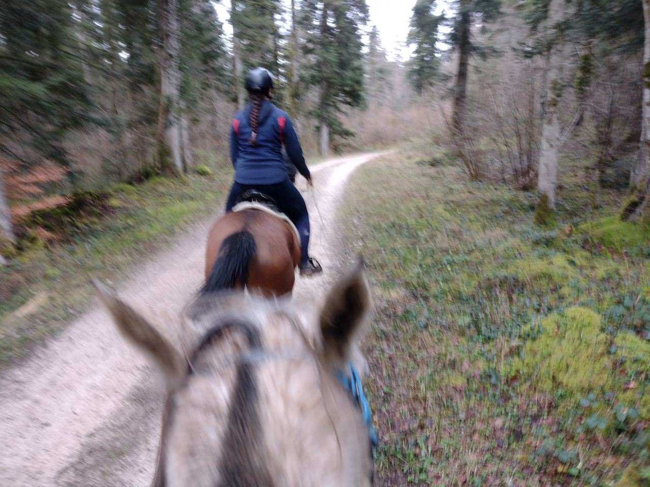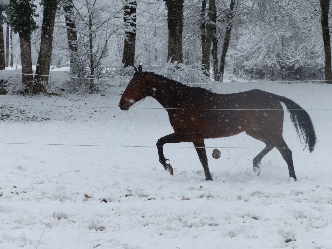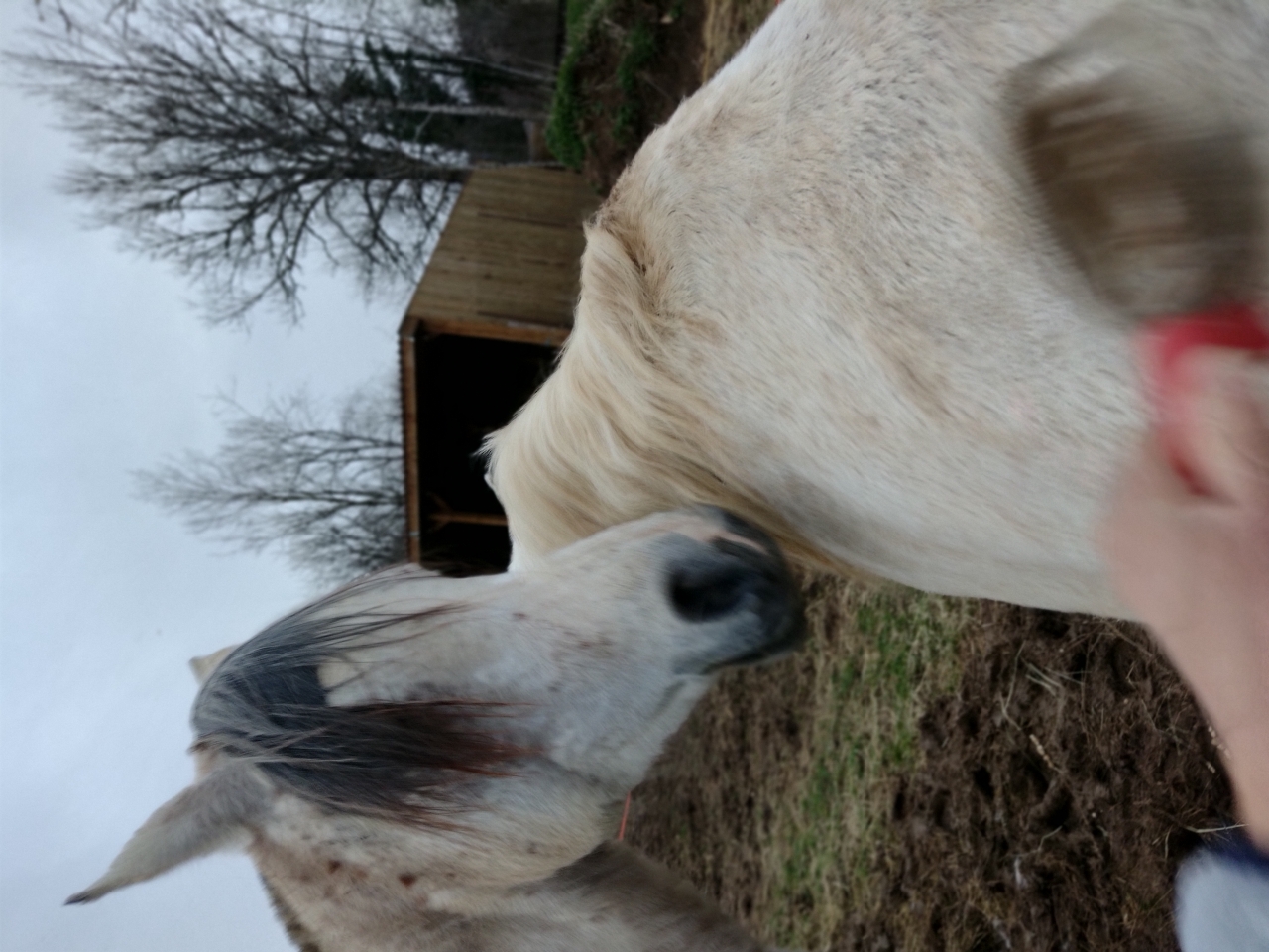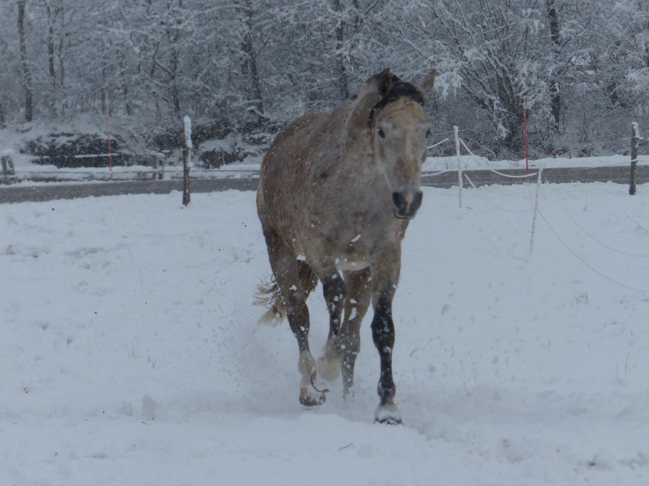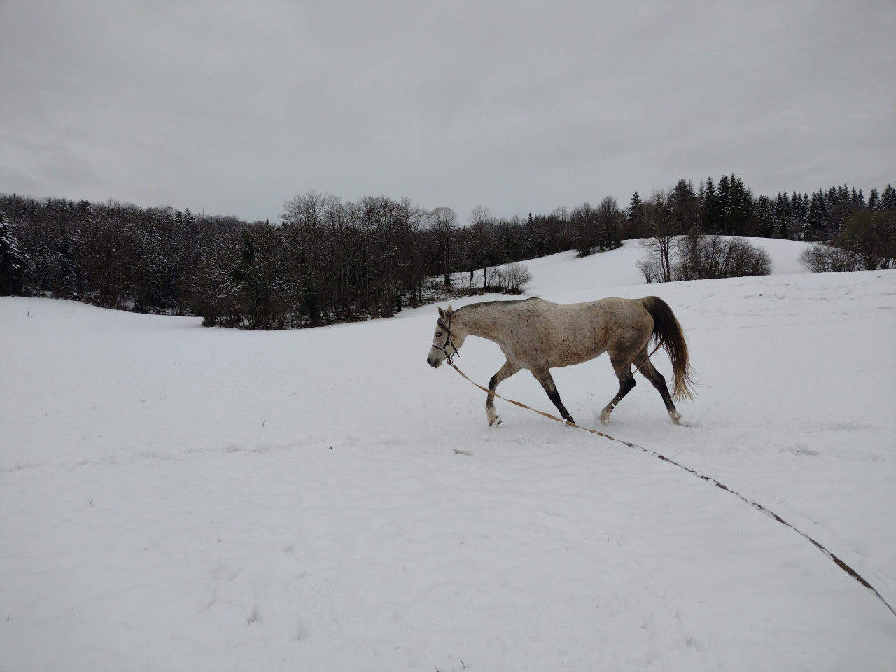 | Dire merci | puis cet aprèm au tour de miss Java![]() impecc, elle n'a bronché sur rien on a fait quelques flexions sur le mors avant de commencer et elle n'a pas chercher la sortie ![]() du coup je vais longer dans plus grand car bonjour la bouillasse avec cette neige pleine de flotte qui fond ![]() ![]() |
