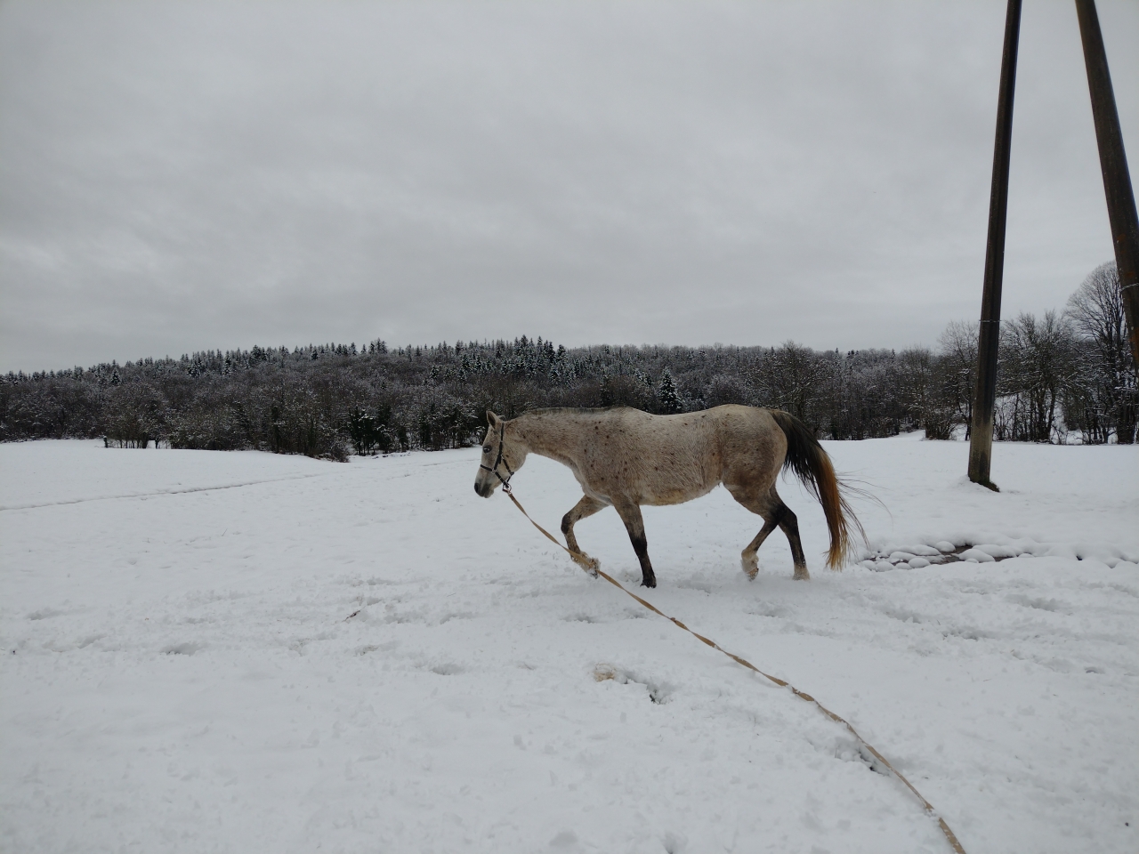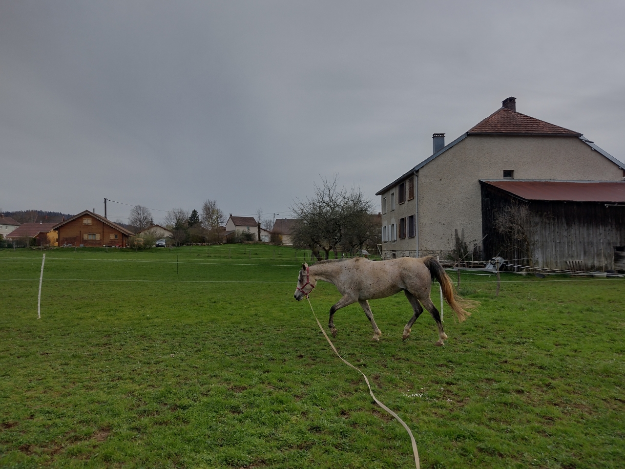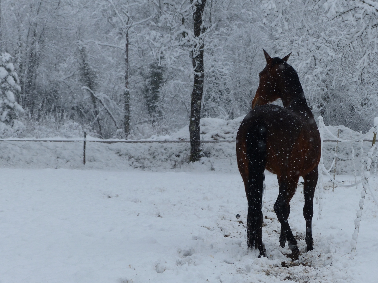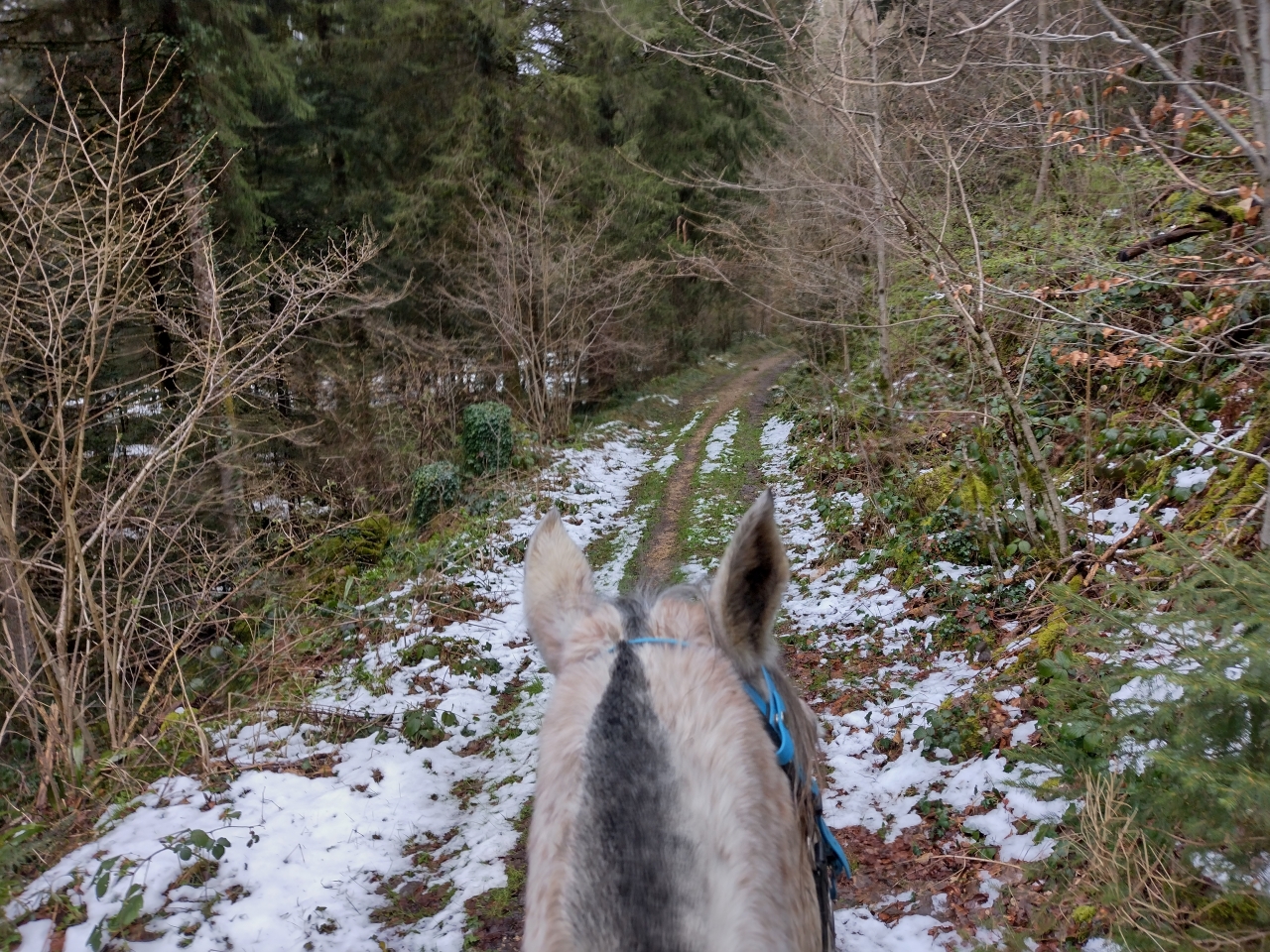 | Dire merci | puis cet aprèm au tour de miss Java![]() impecc, elle n'a bronché sur rien on a fait quelques flexions sur le mors avant de commencer et elle n'a pas chercher la sortie ![]() du coup je vais longer dans plus grand car bonjour la bouillasse avec cette neige pleine de flotte qui fond ![]() ![]() |