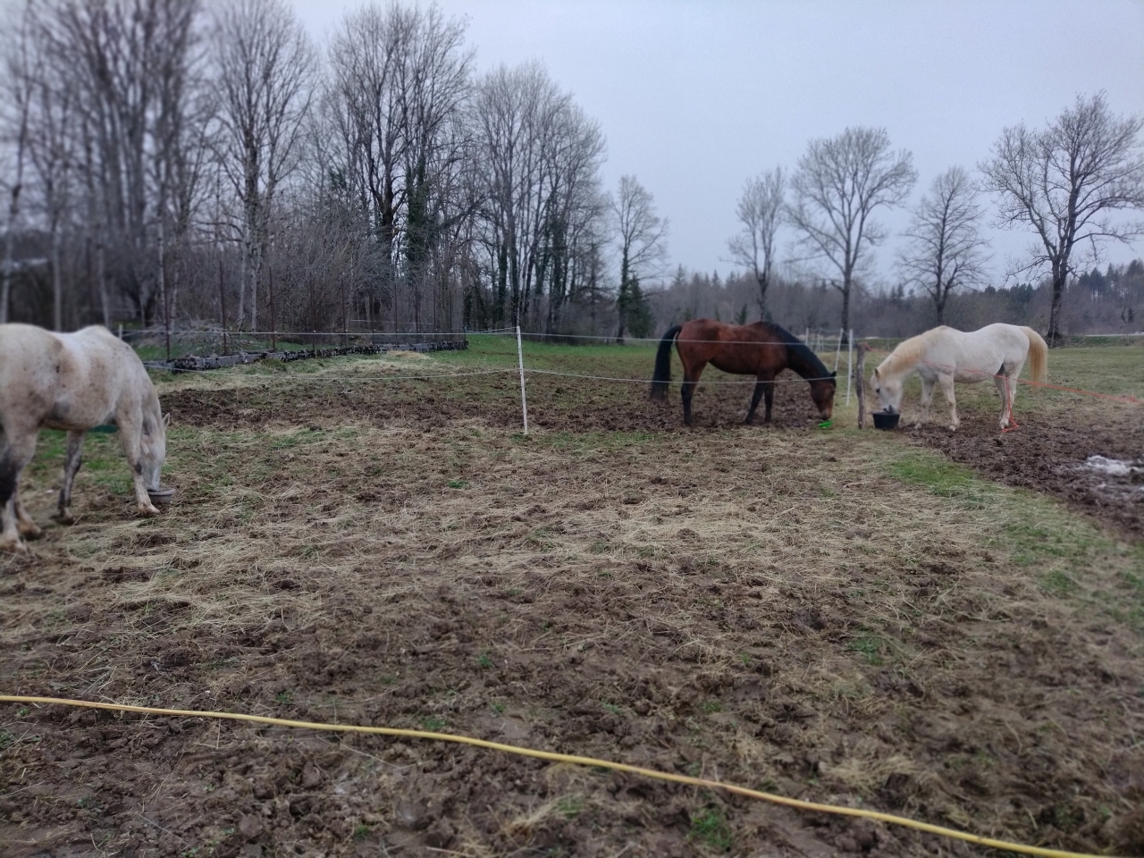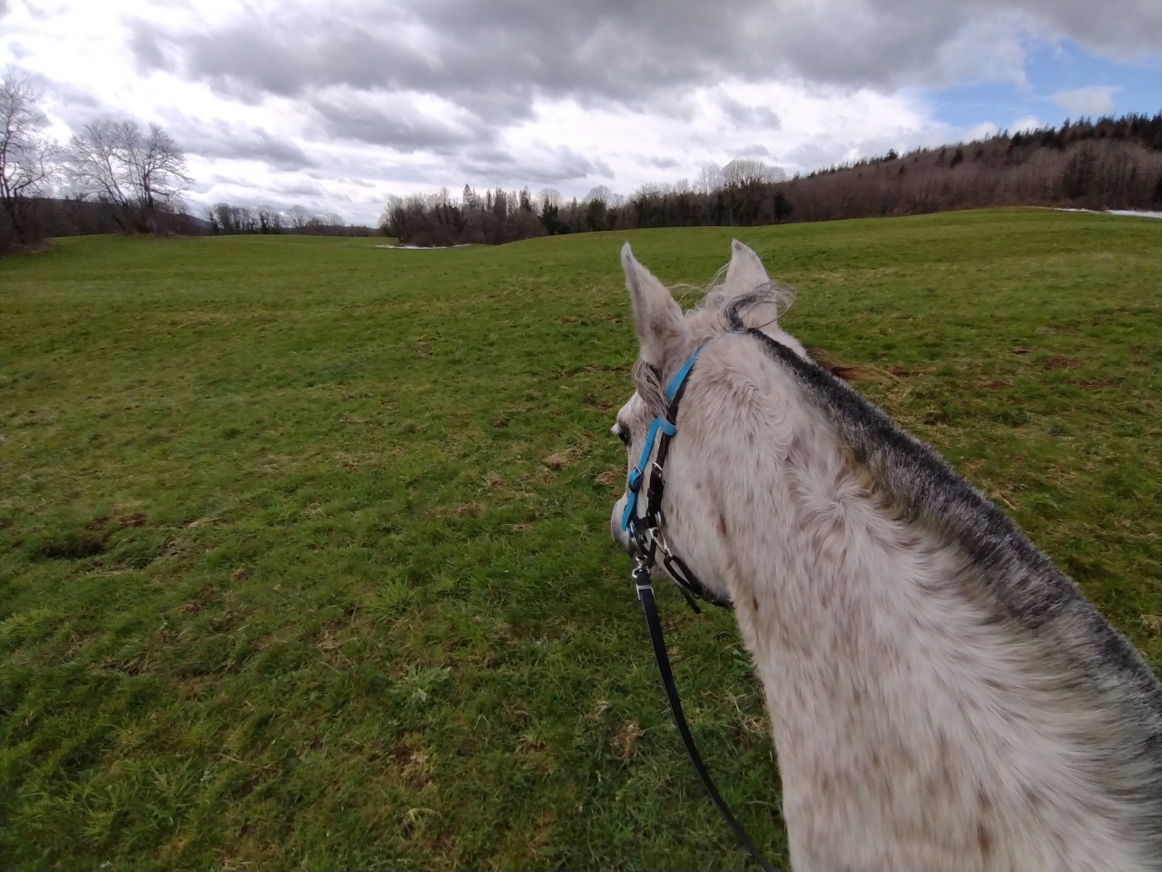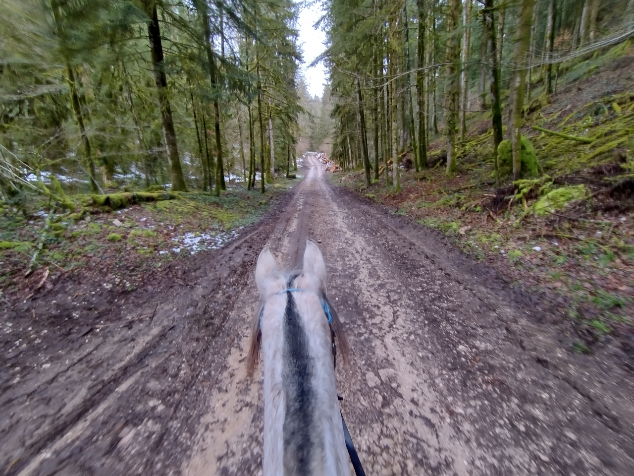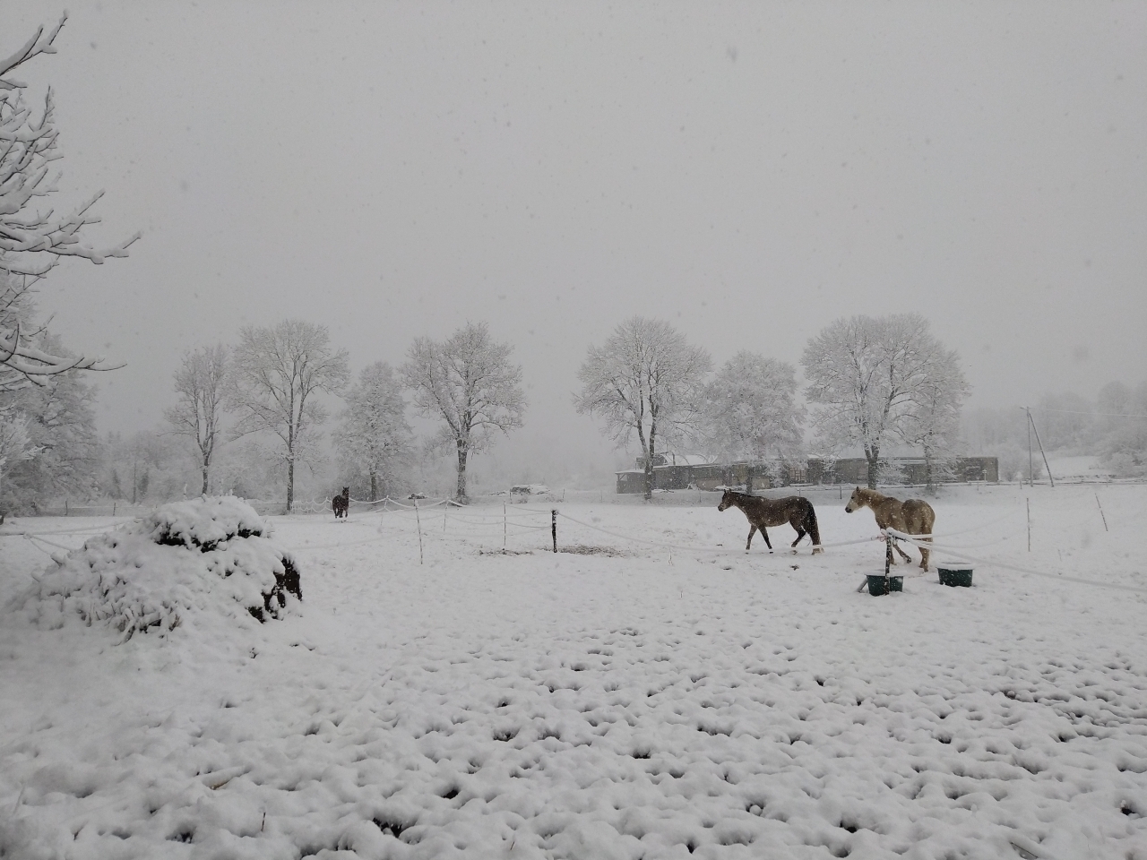 | Dire merci | puis cet aprèm au tour de miss Java![]() impecc, elle n'a bronché sur rien on a fait quelques flexions sur le mors avant de commencer et elle n'a pas chercher la sortie ![]() du coup je vais longer dans plus grand car bonjour la bouillasse avec cette neige pleine de flotte qui fond ![]() ![]() |