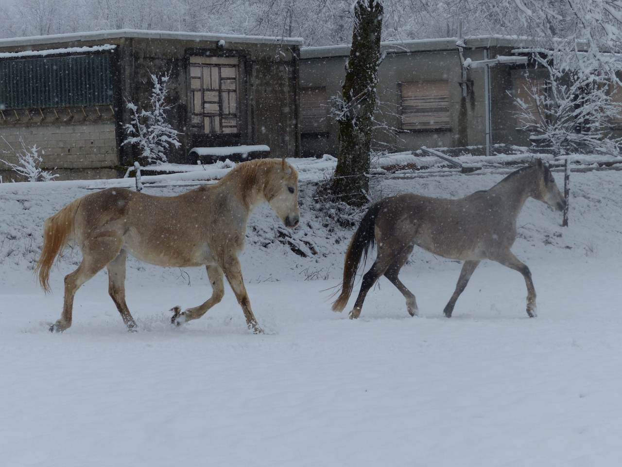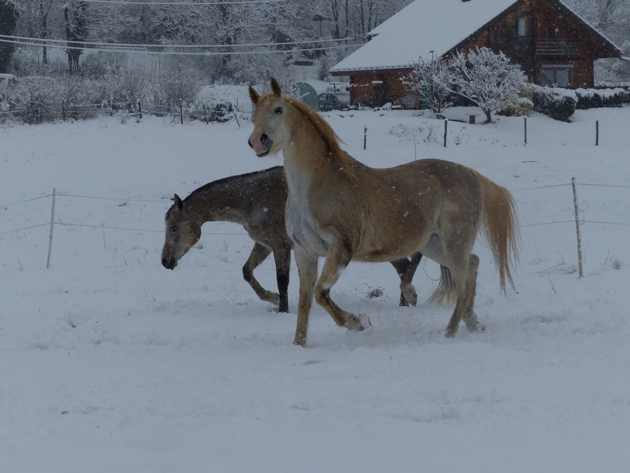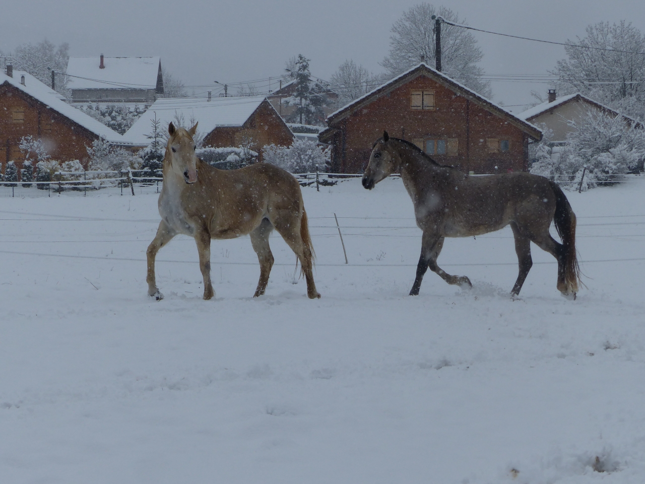 | Dire merci | Bon voila, je viens pas pendant quelques temps et voila qu'il y a un nouveau poney qui déboule je vais aller remonter quelques pages pour en savoir plus ![]() en tout cas whaouuuu !! je sais pas si c'est l'effet mouillé sous la neige mais Quiara récupère une ligne physique au top et Naska quelle sportive !!! |