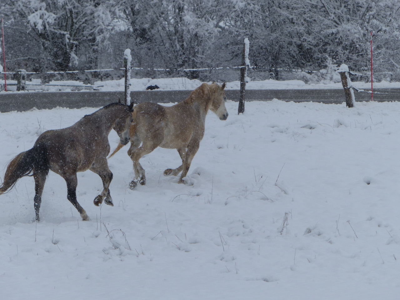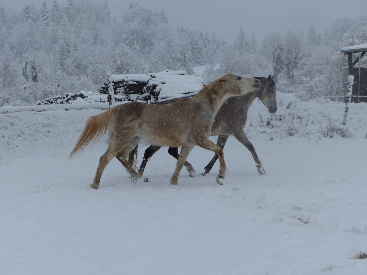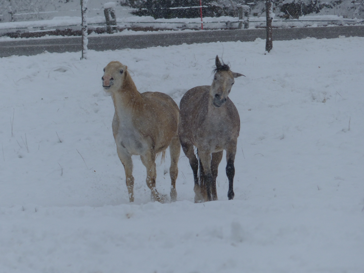 | Dire merci | Bon voila, je viens pas pendant quelques temps et voila qu'il y a un nouveau poney qui déboule je vais aller remonter quelques pages pour en savoir plus ![]() en tout cas whaouuuu !! je sais pas si c'est l'effet mouillé sous la neige mais Quiara récupère une ligne physique au top et Naska quelle sportive !!! |