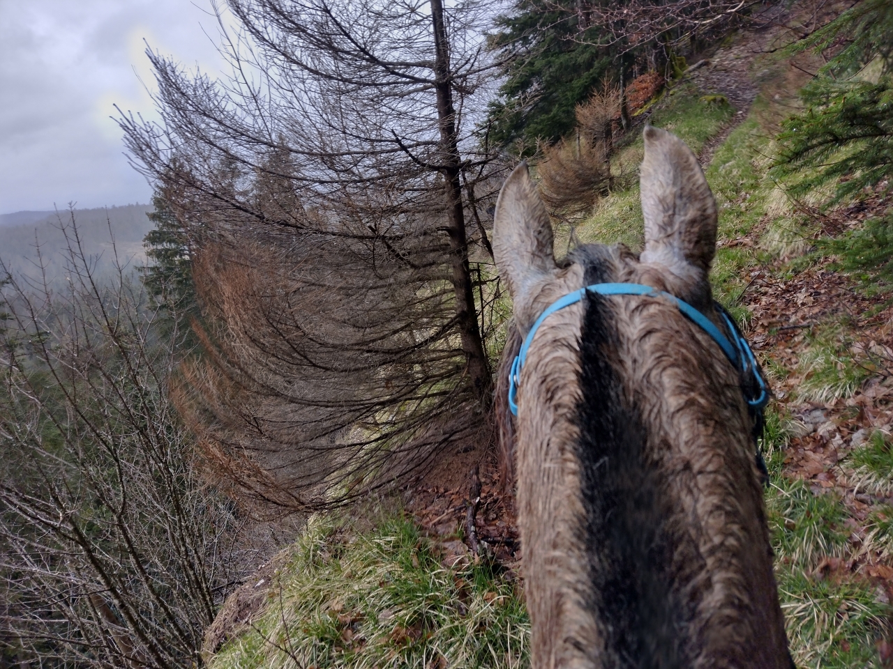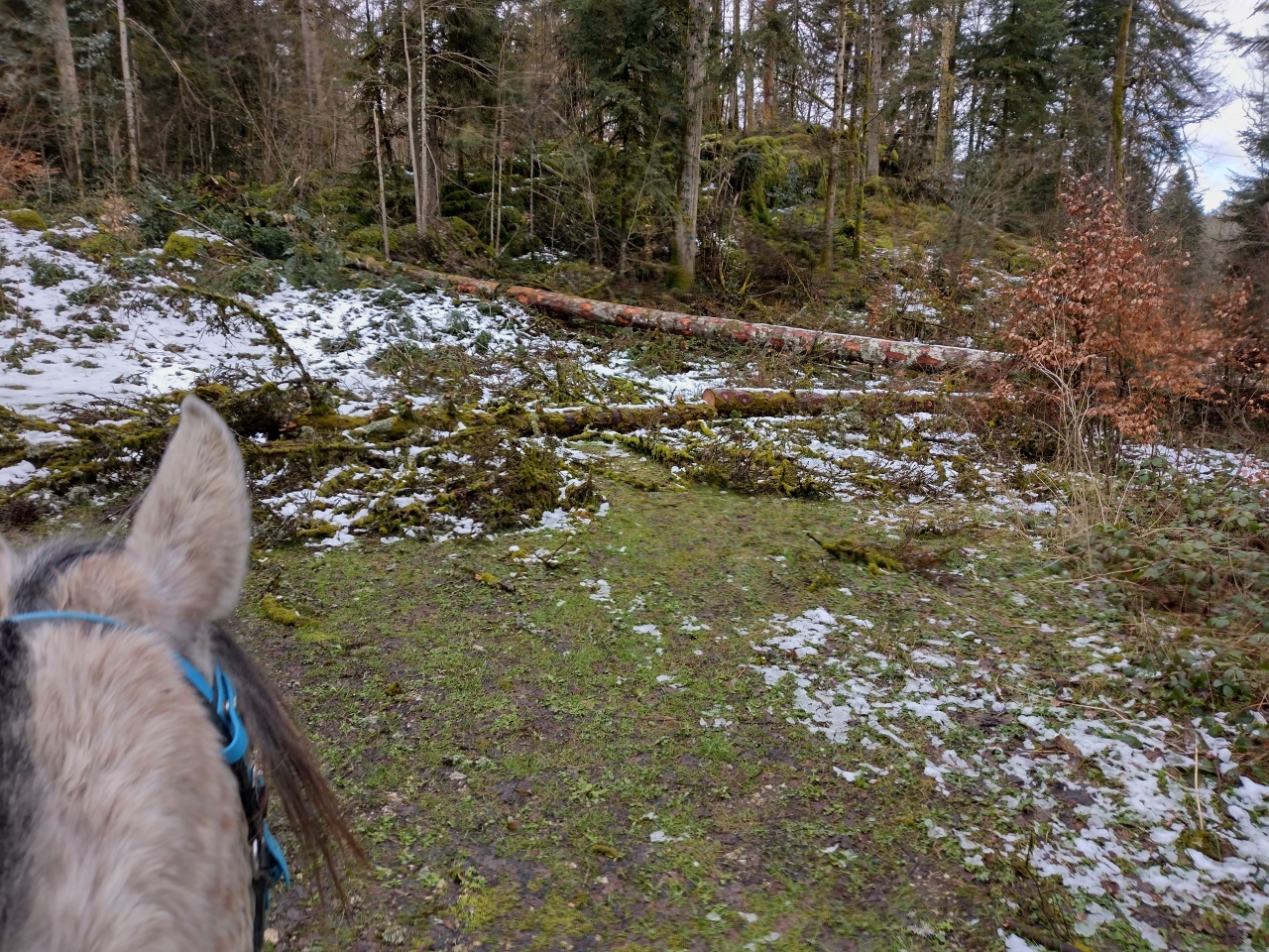 | Dire merci | donc hier on part enfin on essaie car la morue reste campée devant le paddock de Java en mode chaleurs extremes mais on arrive non sans mal à décoller ![]() ca commence à souffler mais ca va ![]() entre ce que les débardeurs coupent et ce qui n'a pas été déblayés, c'est la sortie des demi tours... ![]() ![]() bichette est super agréable et à l'écoute, je me régale ![]() ![]() ![]() ![]() ![]() ![]() ![]() 20km en 2h30 ![]() ![]() |