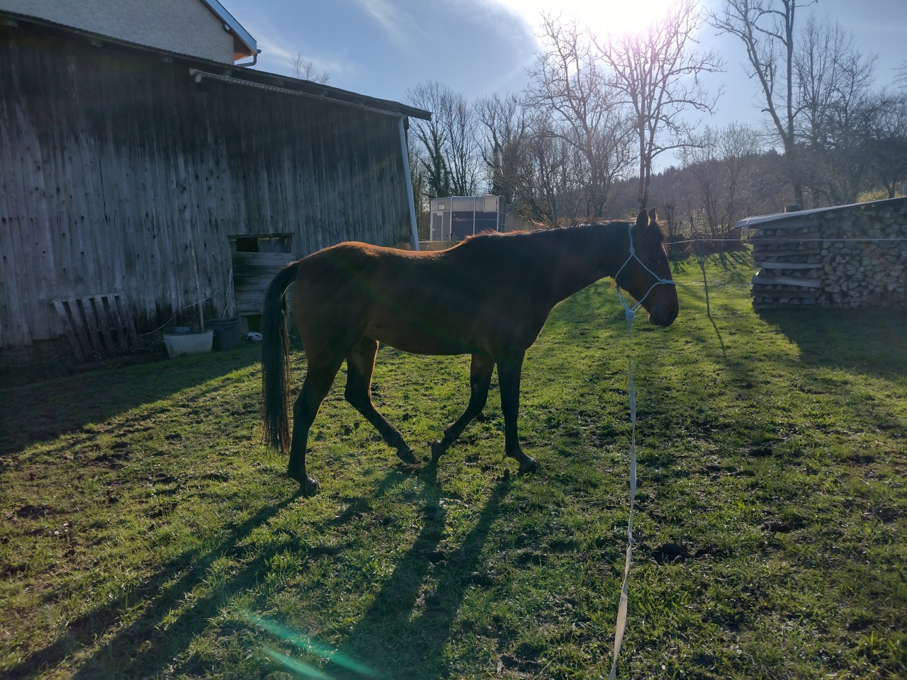 | Dire merci | Non on reste sur des fers aciers mais plaques et silicone. L ostéo repasse mardi pour une dernière vérif (ouille mon budget mais bon ..) Ainsi j aurai vraiment tout assuré pour le mieux.. je suis juste verte de pas la monter, heureusement que je sais qu elle sera entre de bonnes mains ! M est venue monter Java hier pendant que j étais au boulot Départ à pied a cause des fortes bourrasques de vent puis en selle et elle s est régalée. Elle a juste du mal à allonger le pas mais comme je lui ai rappelé : elle a pas de boulot, ça va venir ![]() |