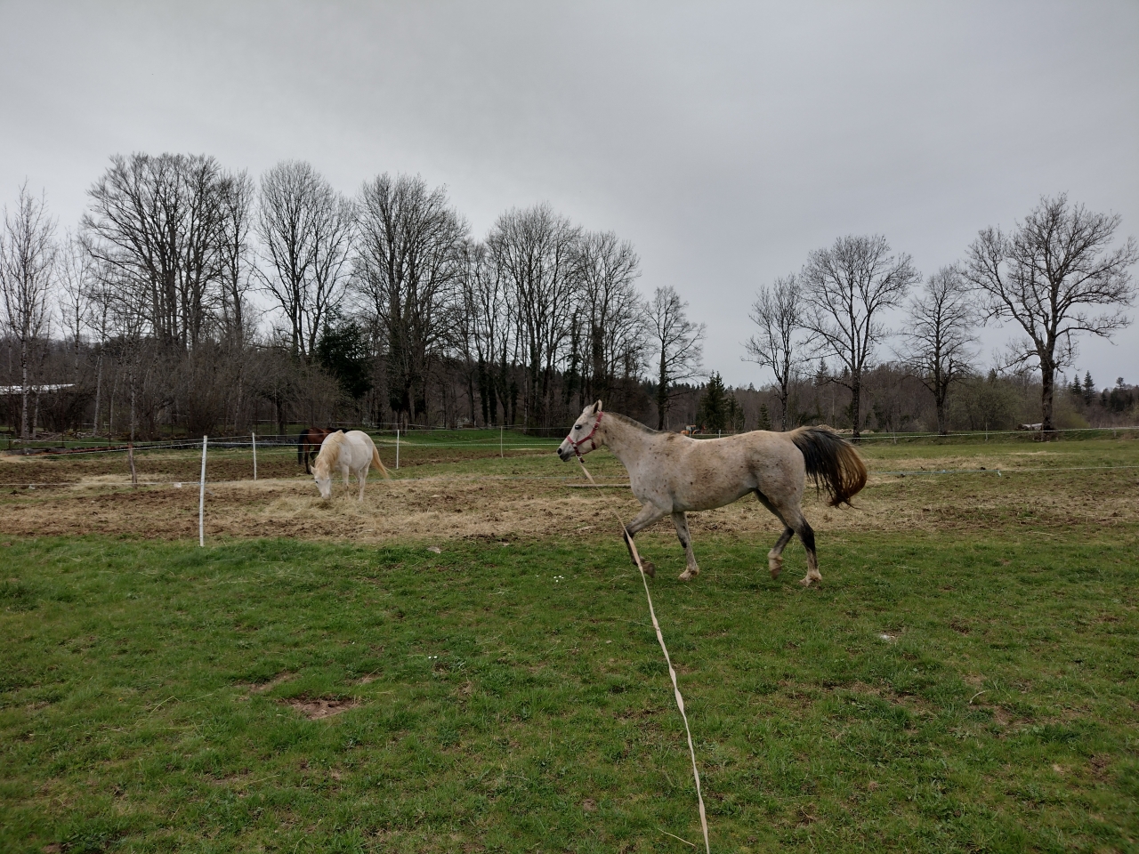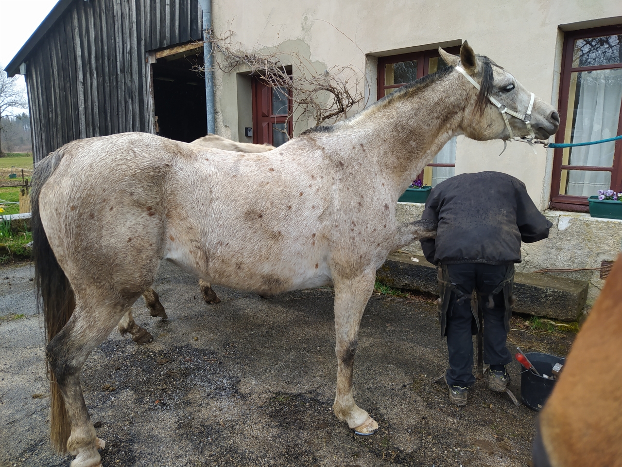 | Dire merci | Cet après midi c était mf Ferrure de course pour Naskouille et première ferrure pour Java ![]() ![]() ![]() Benete qui fait de l extension de cervicales ![]() ![]() Sans grande surprise, si on n avait pas su que c était sa première ferrure, on ne l aurait pas su 😊 ![]() |