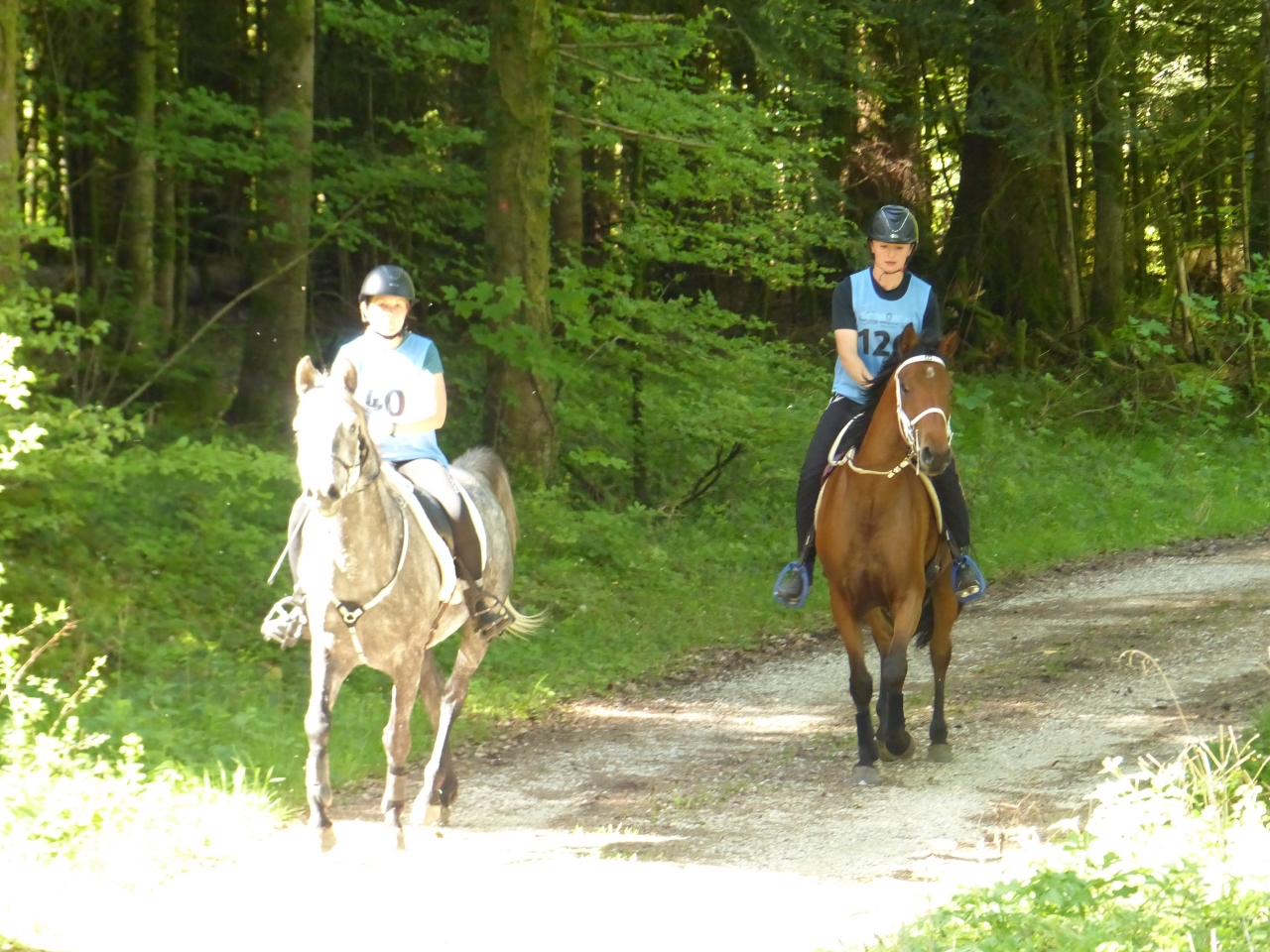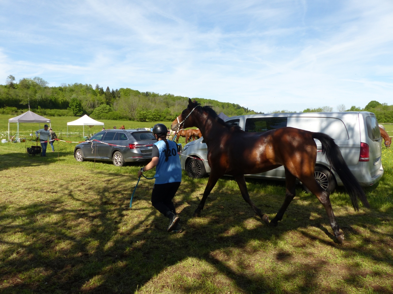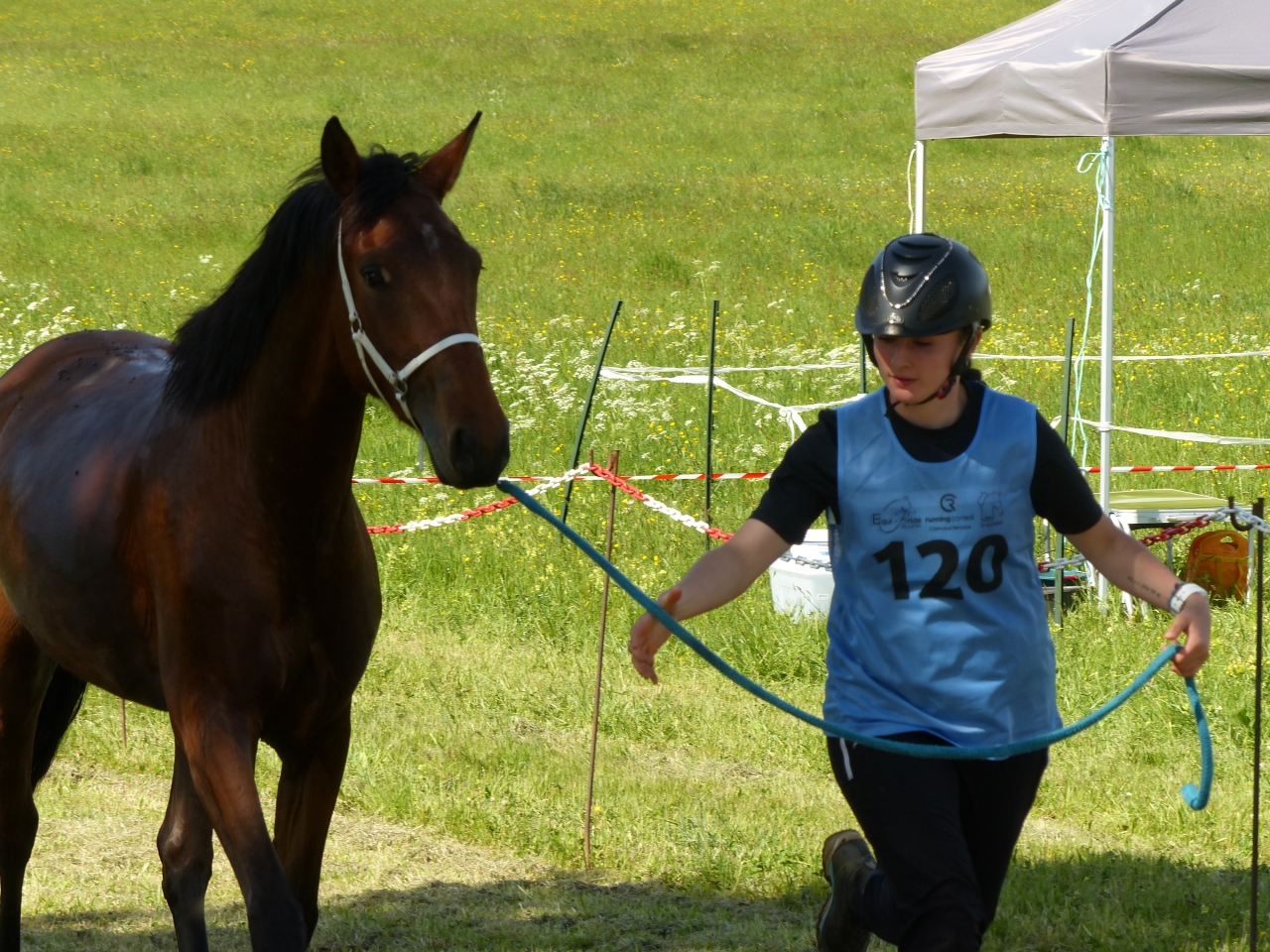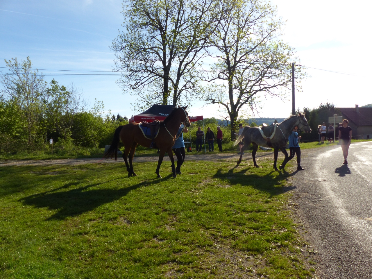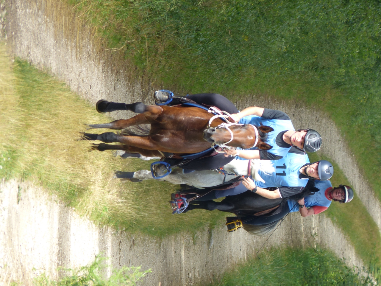 | Dire merci | la miss charge très bien et nous voilà de bonne heure sur le site car il fait une chaleur orageuse des plus étouffantes controle initial ok ![]() on prépare la belette ![]() et on rejoint un compagnon de route qui a du mal à partir seul il ne fait que 20km mais ce sera toujours une compagnie pour Java bon en fait il ne servira pas à grand chose, il ne passe pas devant ![]() ![]() ce ne sera pas très grave, Java assure ![]() ![]() arrivée à la deuxième assistance, un petit groupe s'est formé ![]() malgré la chaleur et la difficulté pour les jeunes chevaux de redescendre leur fc, ces premiers 22km sont validés, la miss mange bien pendant la pause |