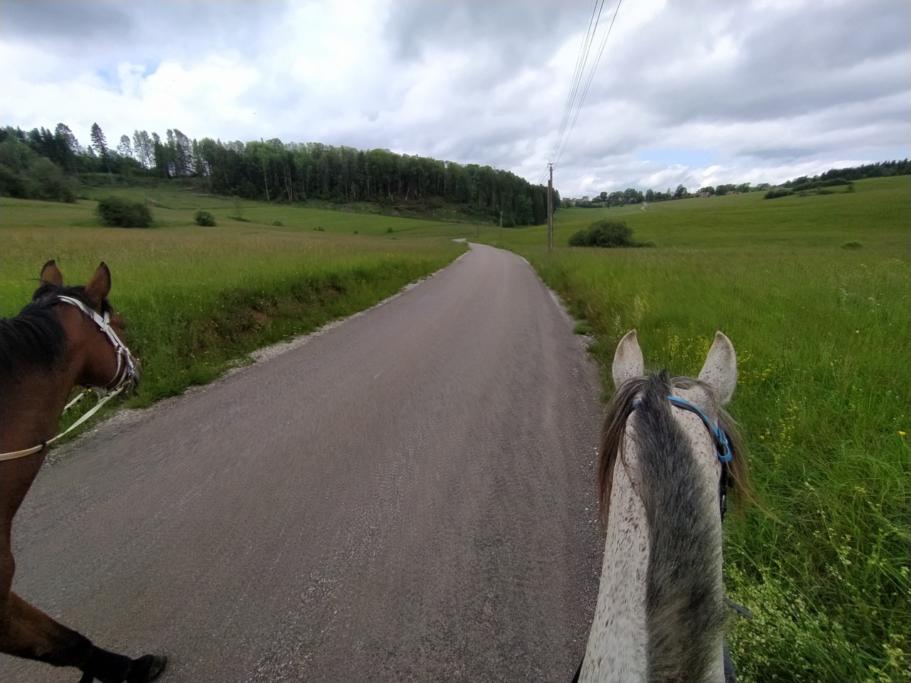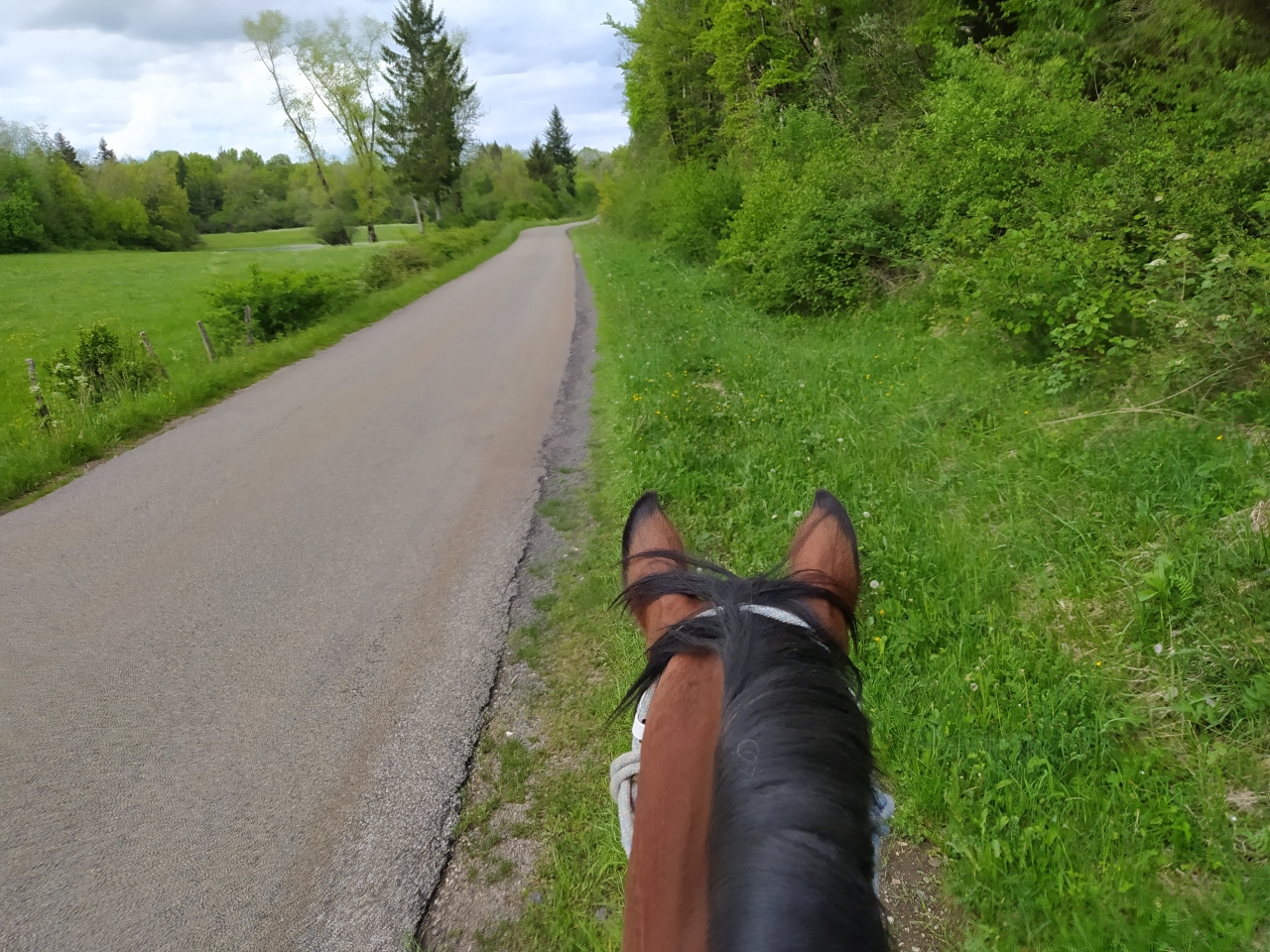 | Dire merci | donc pour reprendre ... jeudi tour de 2h avec les deux miss et M sous la flotte, pour changer ![]() puis je suis tombée malade dimanche, aphtose, pharyngite bref le contrecoup de la colique nephretique je pense... lundi j'étais paf mardi il faisait presque beau, du coup hop 3h25 de poney on avait visé le tour du belvédère de la Frasnée et on s'est retrouvée dessous pour contourner un chemin fermé... ca a travaillé les cuisses des juments ![]() au belvédère ![]() ![]() puis on contourne en descendant ![]() on est en bas ^^ ![]() ![]() le belvédère est au desssus de la roche ![]() ![]() |