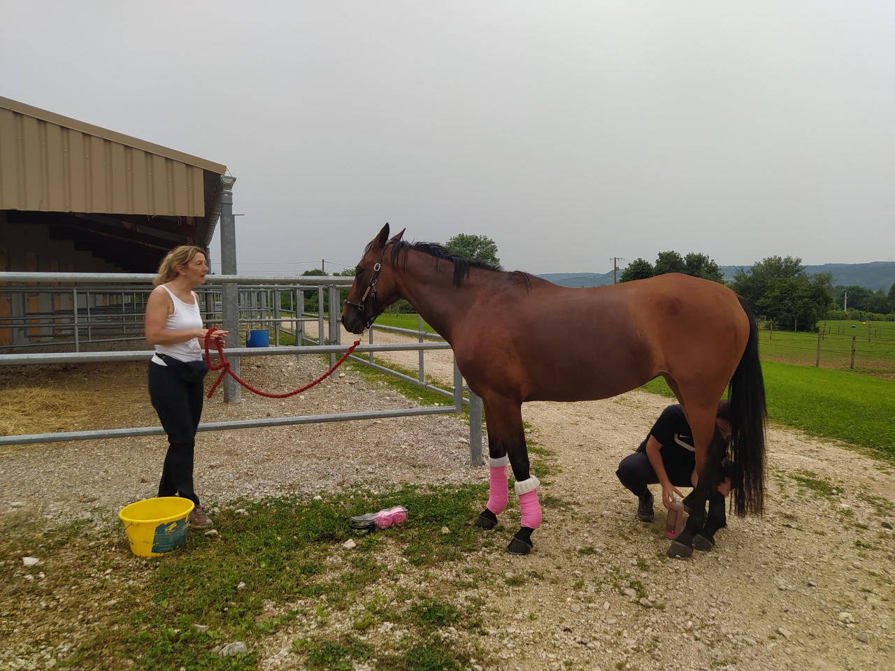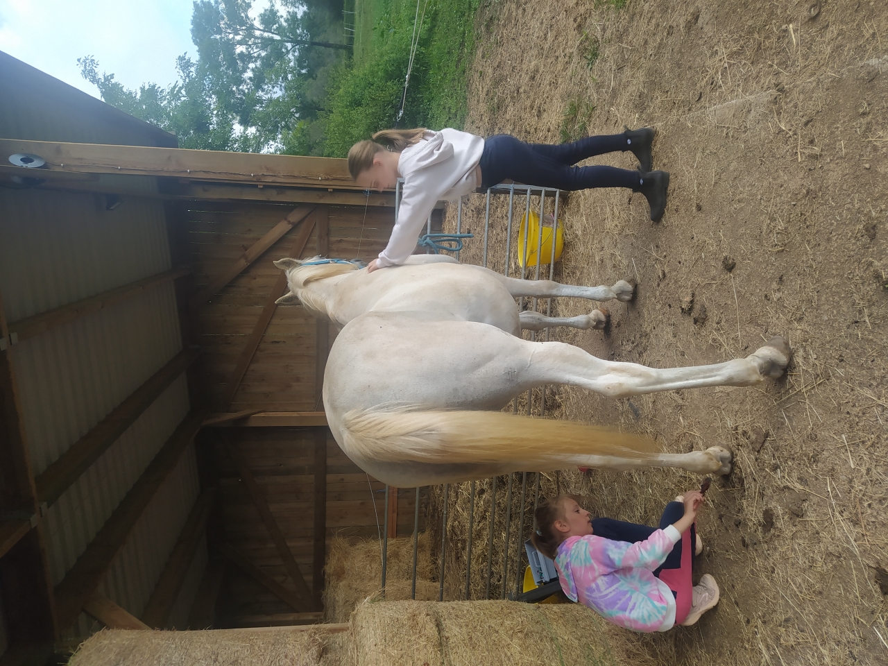 | Dire merci | alors suite à cette balade humide, séance de longe le mardi ![]() le mercredi, faisant centre de vacances , Quiara fait donc le poney modèlepansage, graissage des sabots, elle a occupé ma fille ainée et sa cousine ![]() Les filles n'auront pas le temps de monter car ma tite se réveillera de la sieste un peu trop tot et l'après midi le Mf vient remettre le fer manquant à Java On remet donc la séance de monte le lendemain, et pour mes filles et pour M qui partira avec Java en sortie Jeudi donc : après avoir remis en place les codes en longe, les filles se débrouillent seules ![]() ![]() et ma toute petite aura meme droit à son tour de poney et moi à une crise monumentale quand je l'ai descendue ![]() |