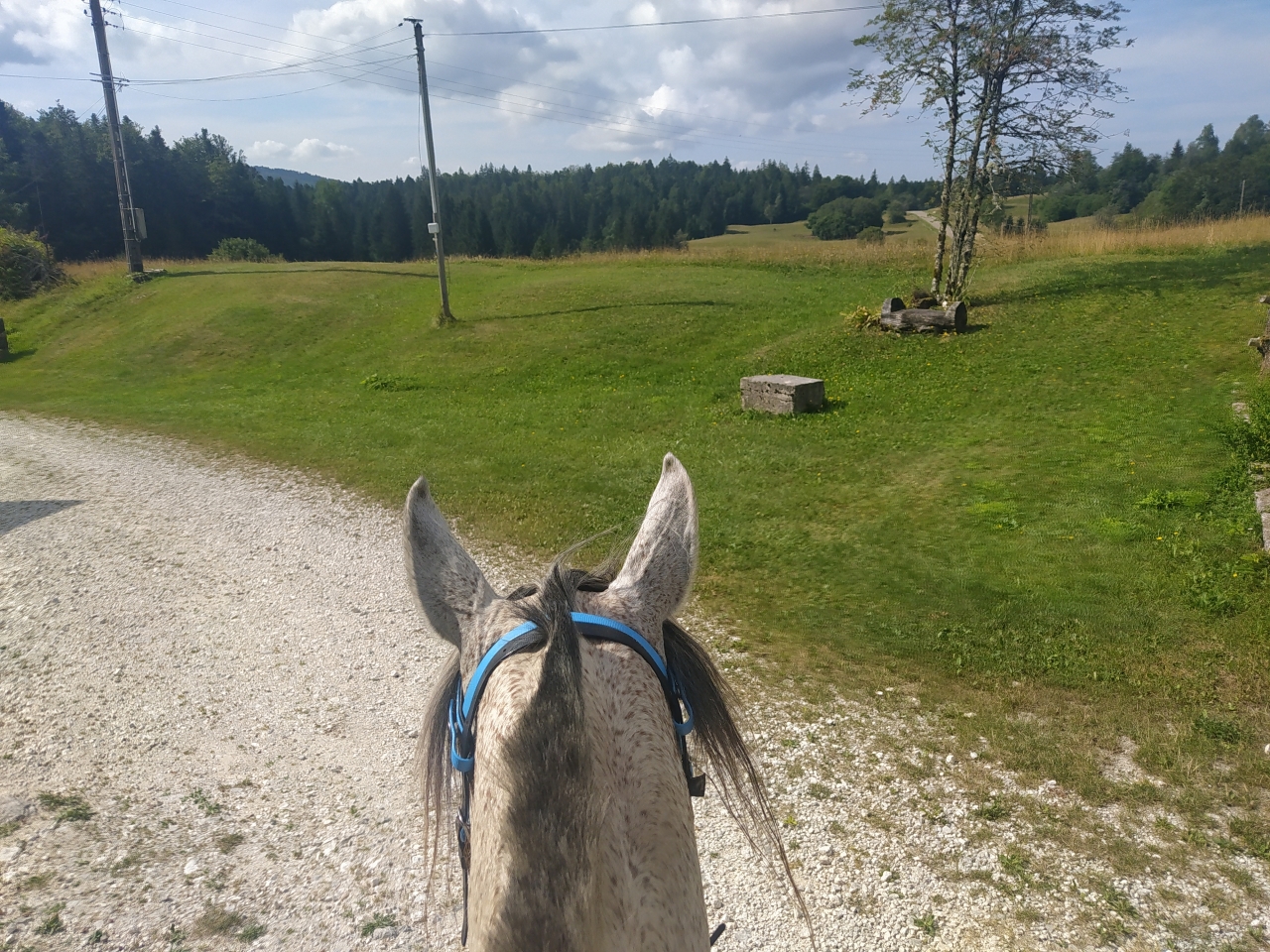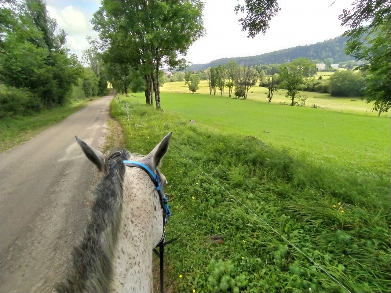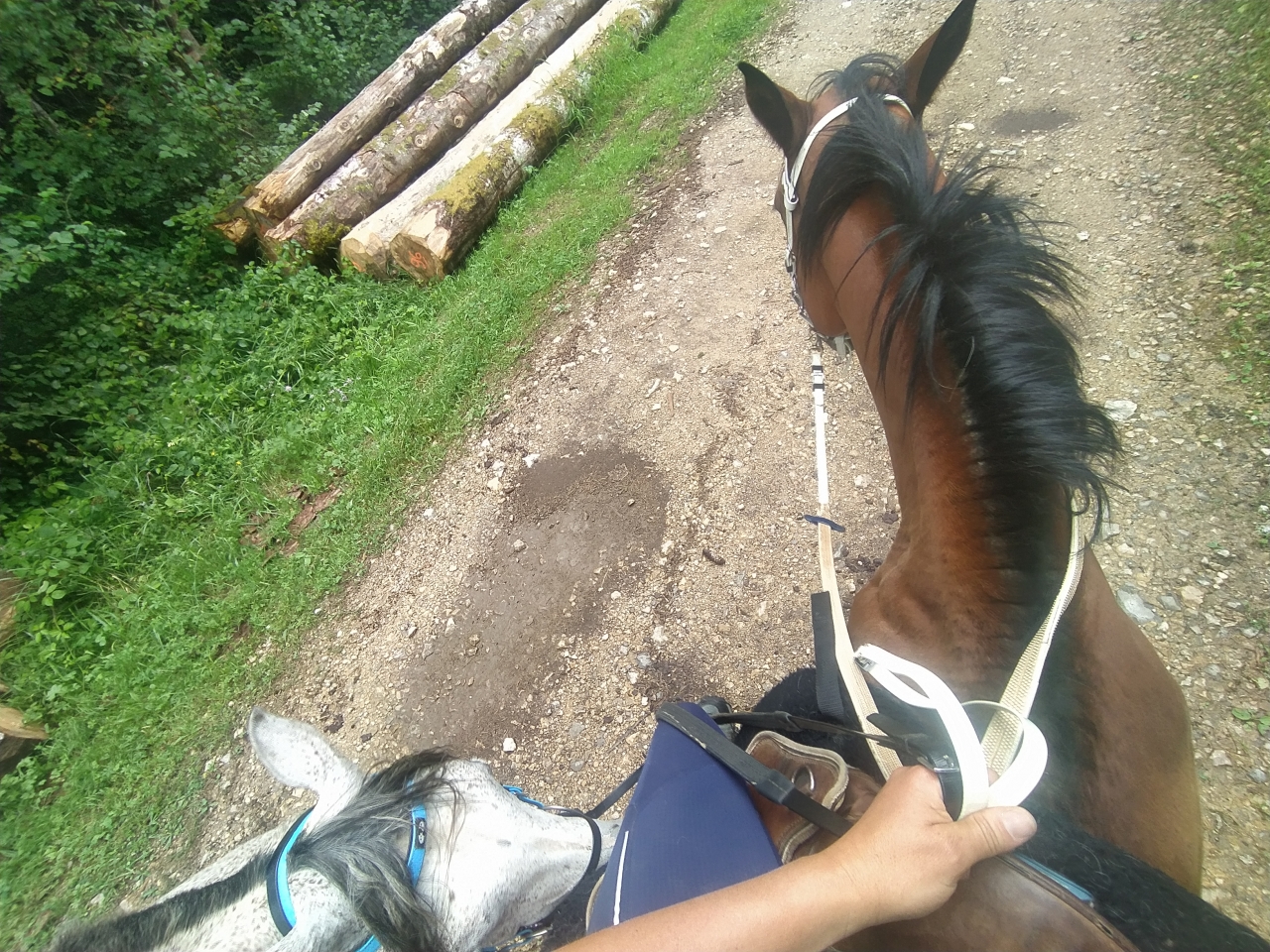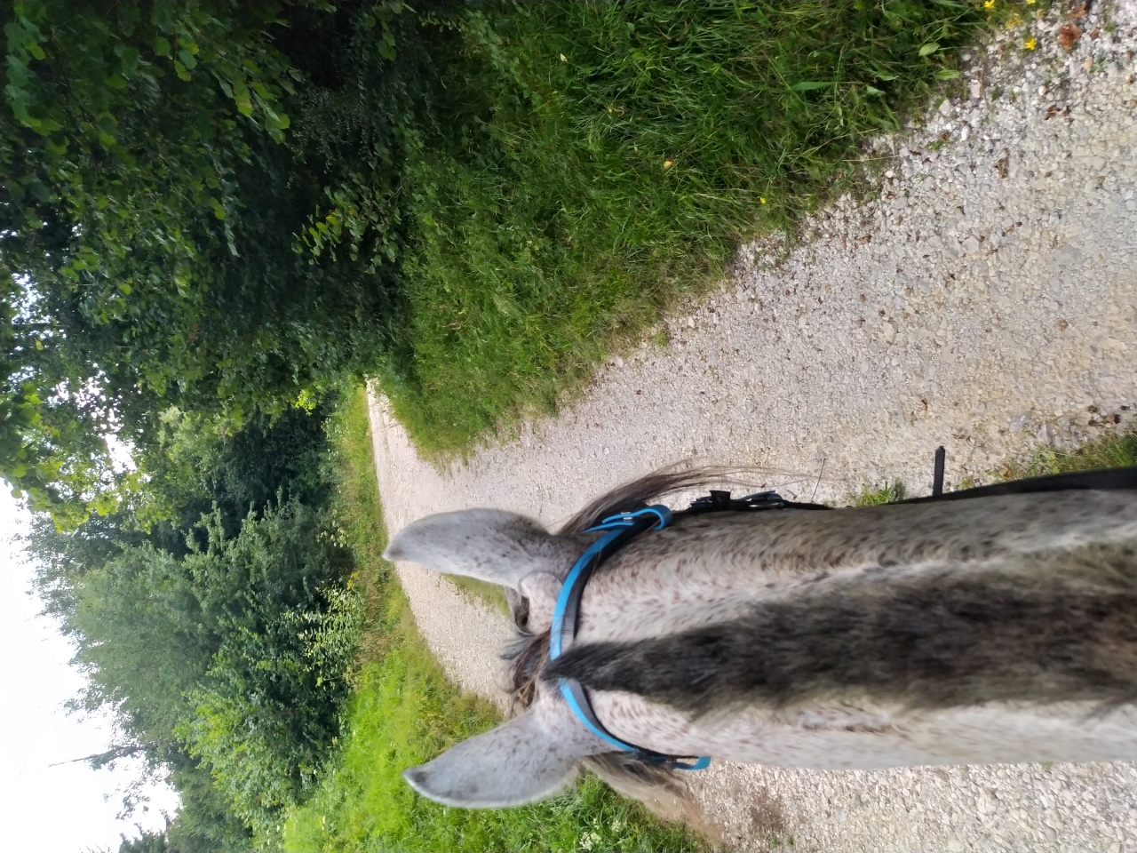 | Dire merci | hier petite sortie matinale au frais d'1h30 avec Naska ![]() ![]() ![]() et le soir petit travail de Java bon les barres au sol c'est toujours pas son truc, surelevées encore moins ![]() enfin là, on a surtout travaillé les changements de main dans le calme et la décontraction et la mission fut assez réussie ![]() et ce matin, la maman d'une copine de ma fille est venue monter avec moi cavalière de petit niveau je ne savais pas trop qui lui confier... finalement je prends Java et lui donne Naska Java a été top devant et Naska impeccable en traine savate ![]() j'ai juste eu droit à un demi tour bien précipité sur la route car un gros tracteur de la dde est sorti d'un virage comme un cinglé sinon ras ![]() 1h30 de pas ![]() ![]() (seule photo de Naska du jour pendant la pause pipi de sa cavalière ) |