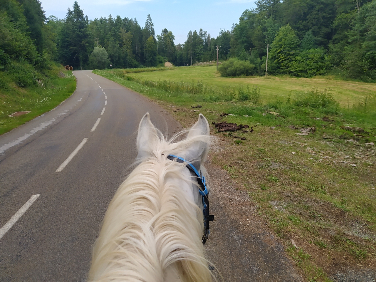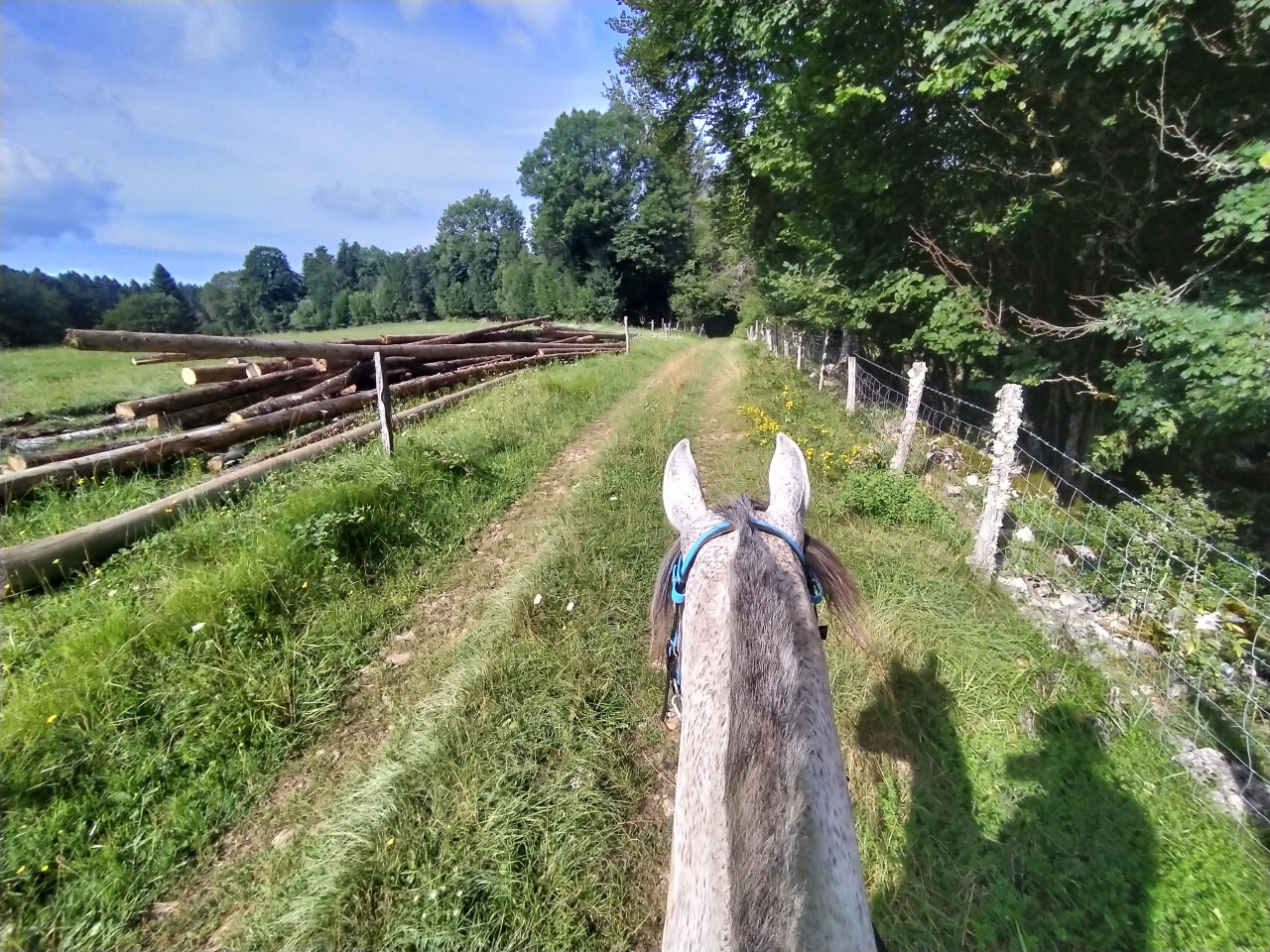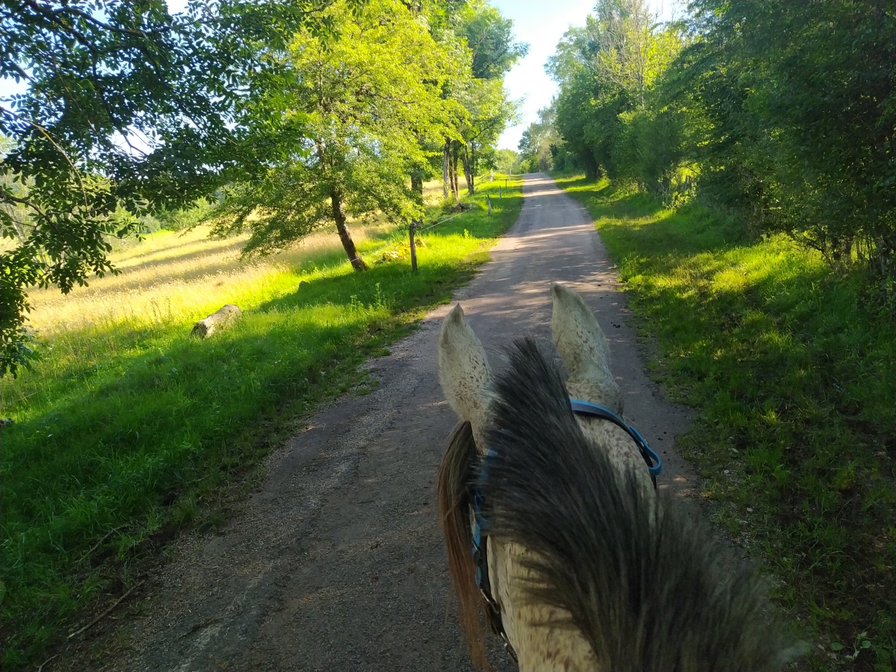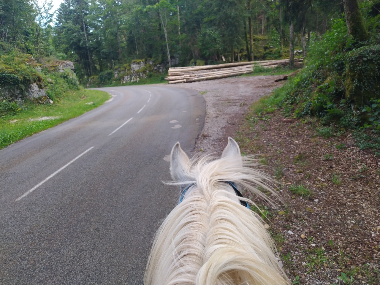 | Dire merci | hier petite sortie matinale au frais d'1h30 avec Naska ![]() ![]() ![]() et le soir petit travail de Java bon les barres au sol c'est toujours pas son truc, surelevées encore moins ![]() enfin là, on a surtout travaillé les changements de main dans le calme et la décontraction et la mission fut assez réussie ![]() et ce matin, la maman d'une copine de ma fille est venue monter avec moi cavalière de petit niveau je ne savais pas trop qui lui confier... finalement je prends Java et lui donne Naska Java a été top devant et Naska impeccable en traine savate ![]() j'ai juste eu droit à un demi tour bien précipité sur la route car un gros tracteur de la dde est sorti d'un virage comme un cinglé sinon ras ![]() 1h30 de pas ![]() ![]() (seule photo de Naska du jour pendant la pause pipi de sa cavalière ) |