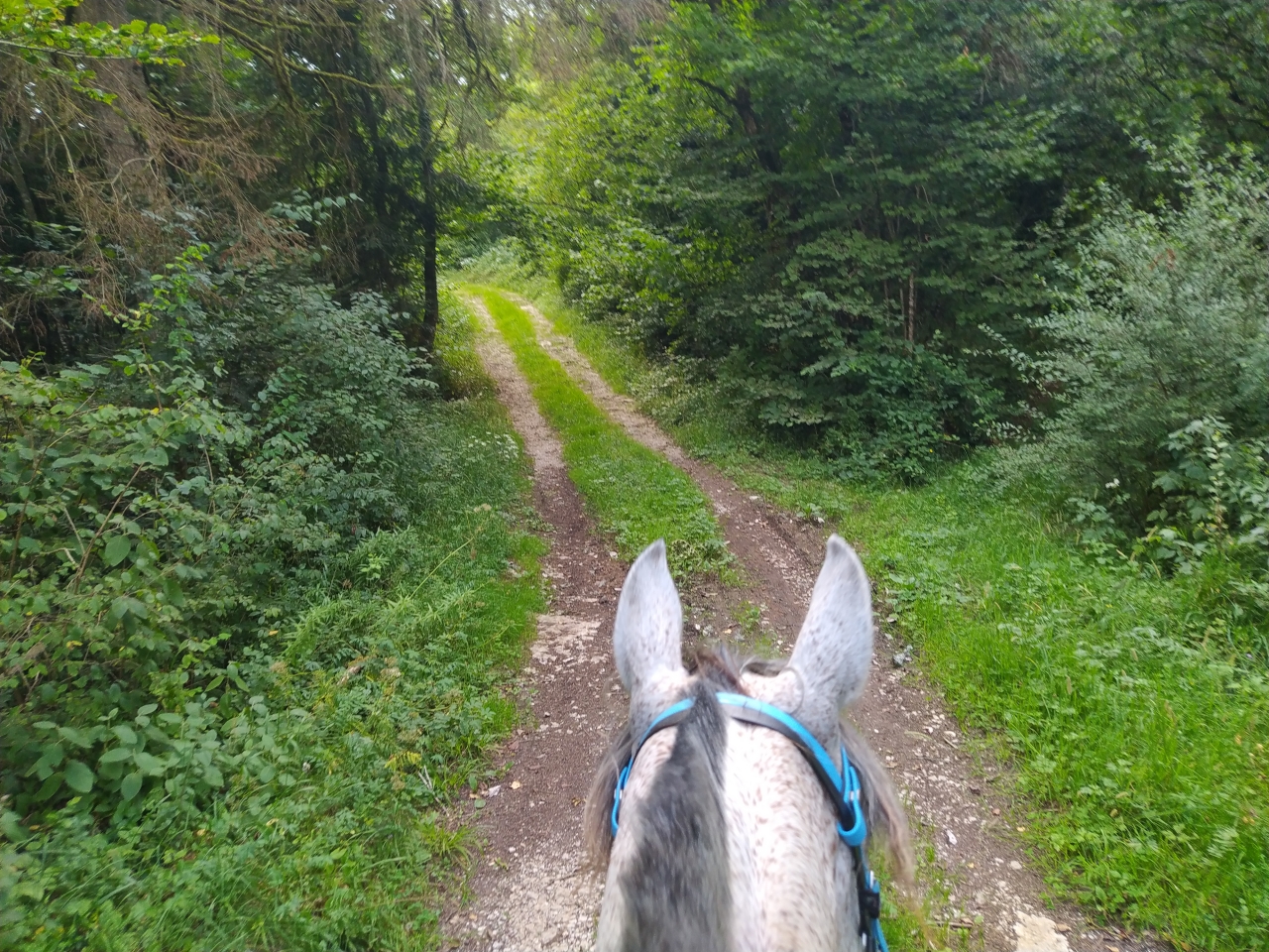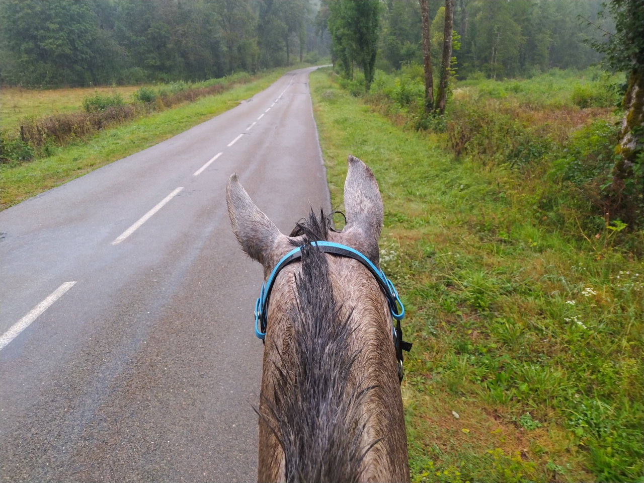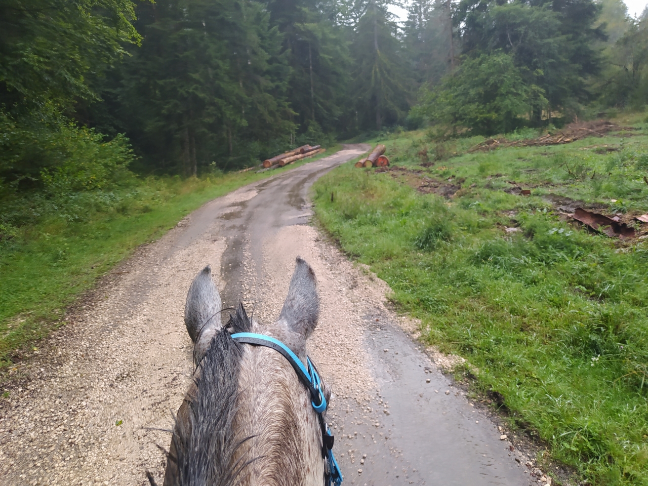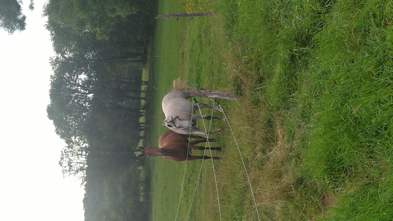 | Dire merci | retour jeudi de nos vacances en famille pour découvrir que Java a déferré d'un antérieur ![]() du coup c'est Naska et Quiara qui sont sorties mercredi avec M et sa maman tout s'est bien passé, Quiara n'a pas fait trop sa chiasse elle a juste blessée au passage de sangle mais vu le ventre qu'elle se paye... Dimanche matin c'était mon seul créneau pour monter et il faisait un temps... finalement j'y suis allée quand même c'était bien jusqu'à ce qu'on se fasse attaquer par des Kangols les chiens se sont mis à nous courser j'ai réussi à arrêter la jument (je me voyais déjà pas en haut de l'affiche mais bien dans le décor...) assez rapidement et elle s'est figée. Un des chiens venait au contact sur les postérieurs, j'ai regretté qu'elle tape pas ![]() évidemment le proprio s'est excusé mais bon ca fait pas tout ... quand on a des chiens cons sans rappel ben on les attache... non ? bref... on a continué la sortie mais évidemment elle avait la queue entre les fesses à sursauter pour rien, ca nous a un peu gaché la sortie déjà bien assez humide ![]() |